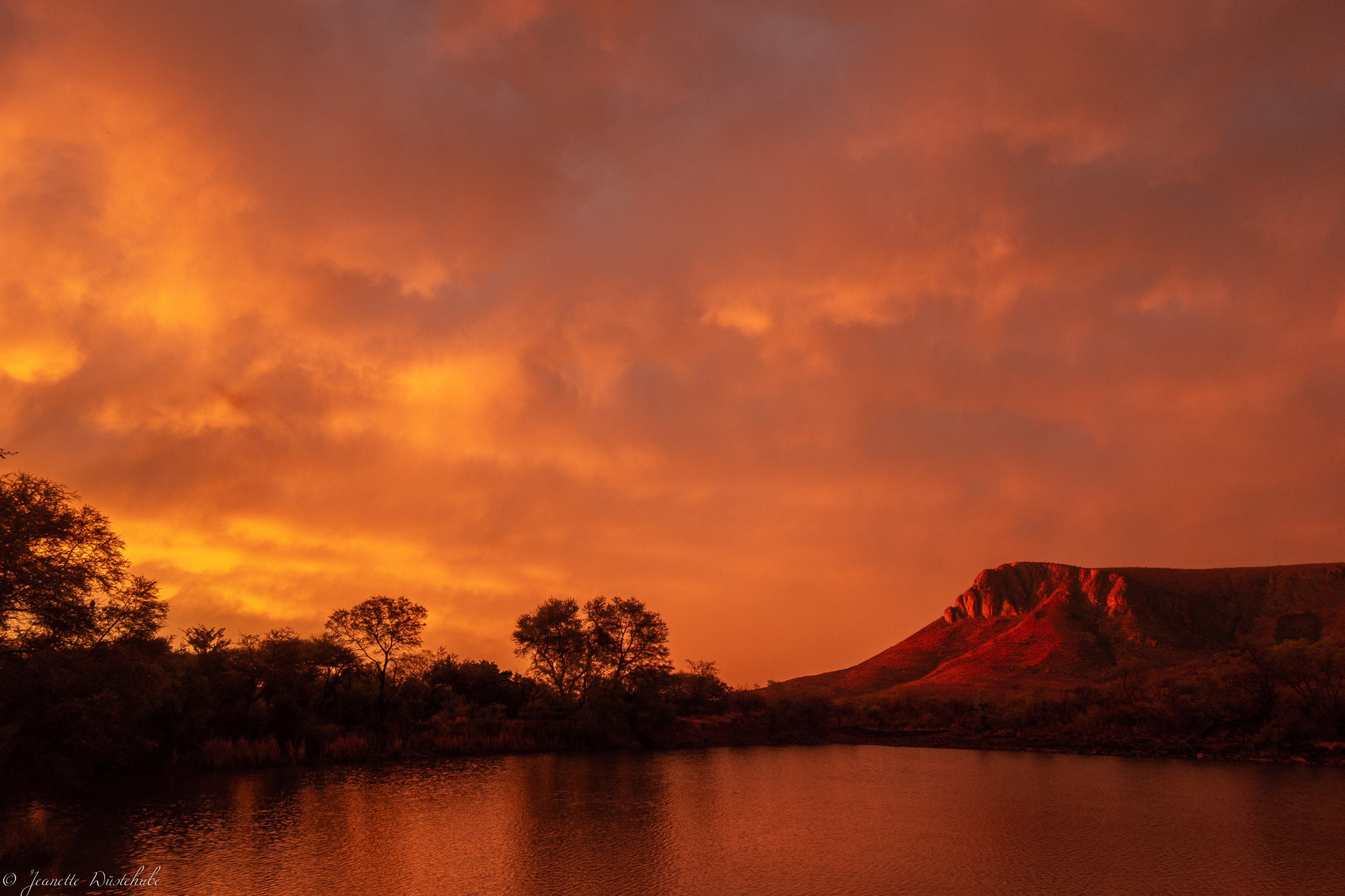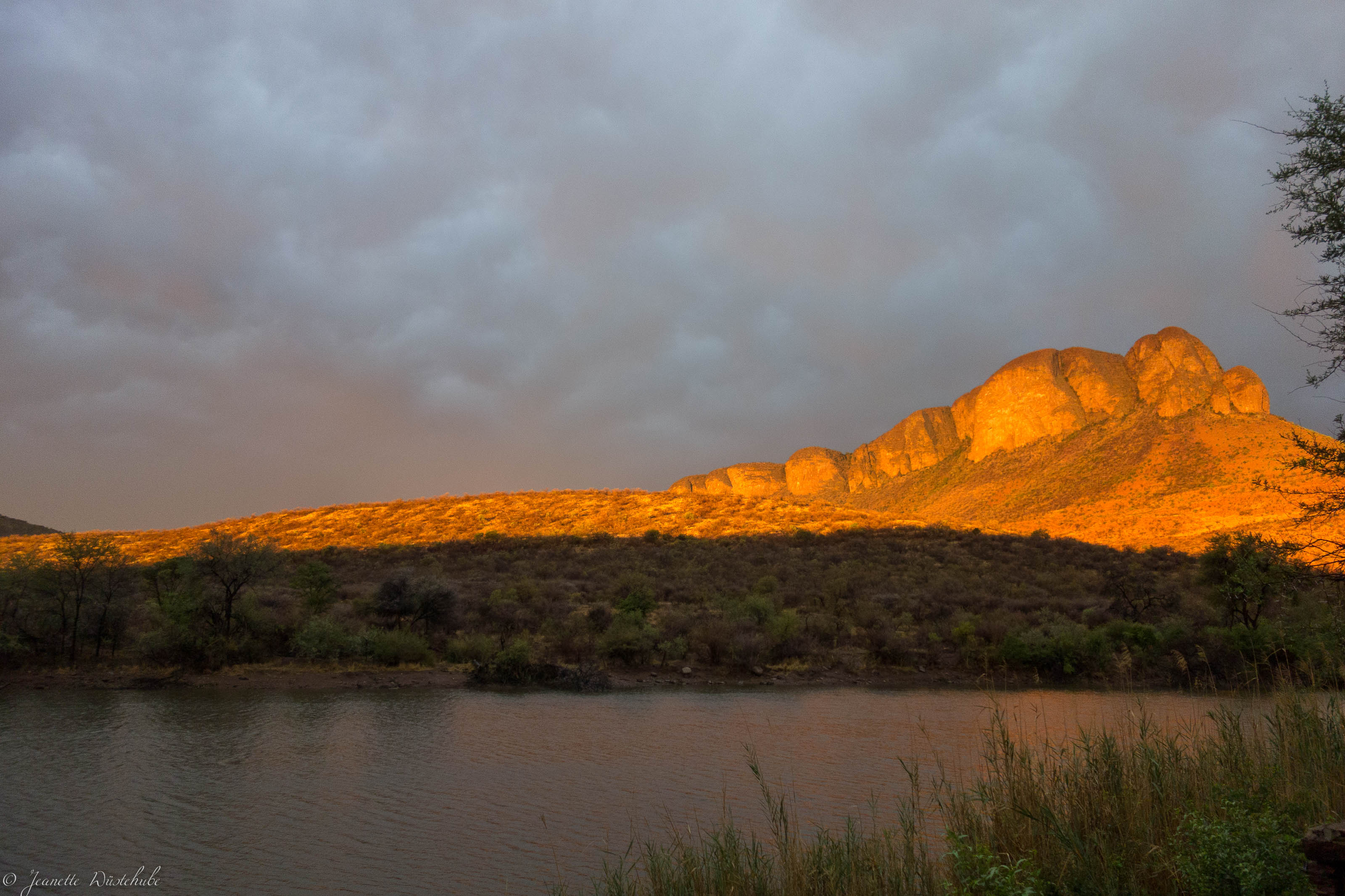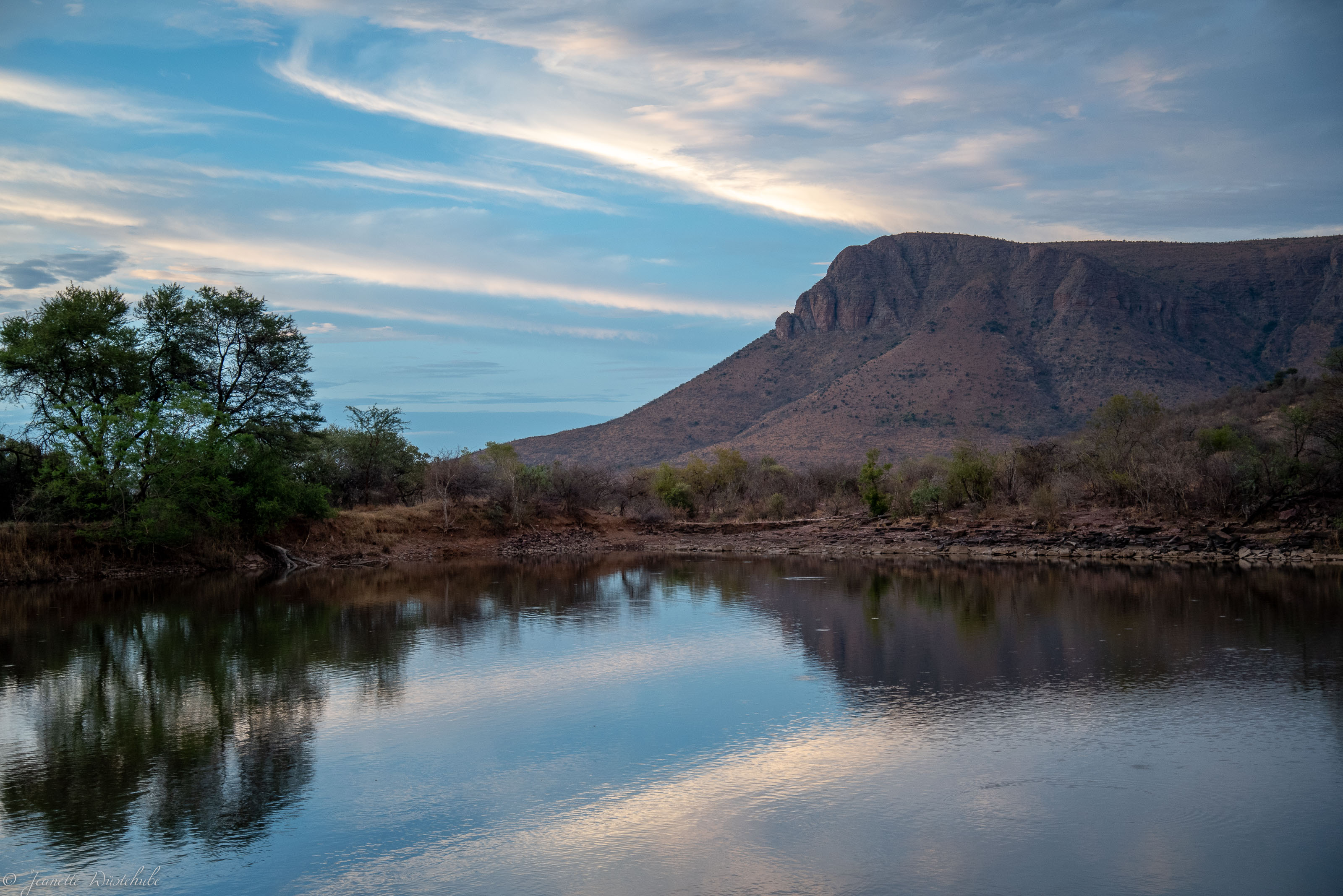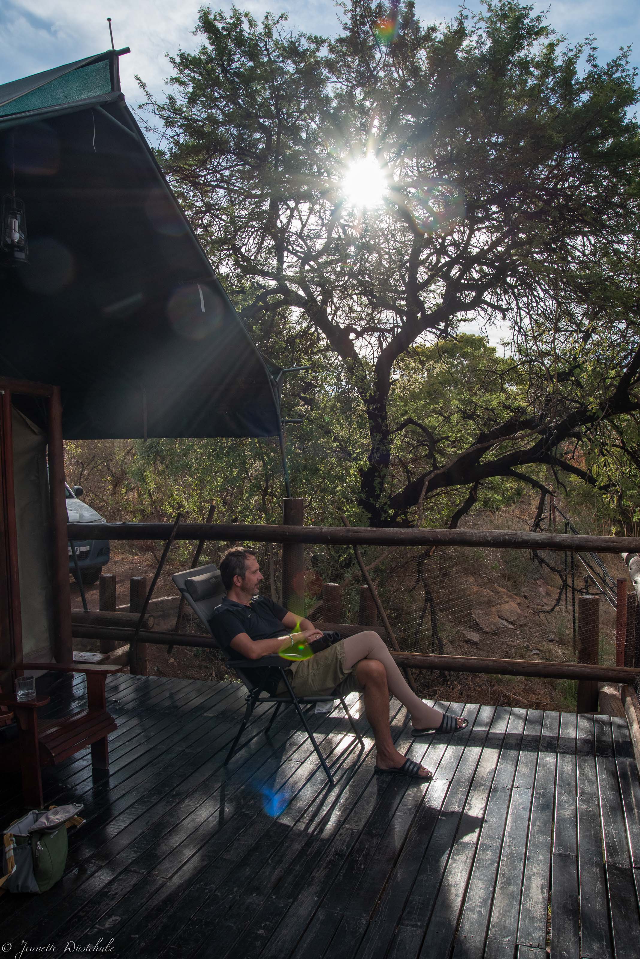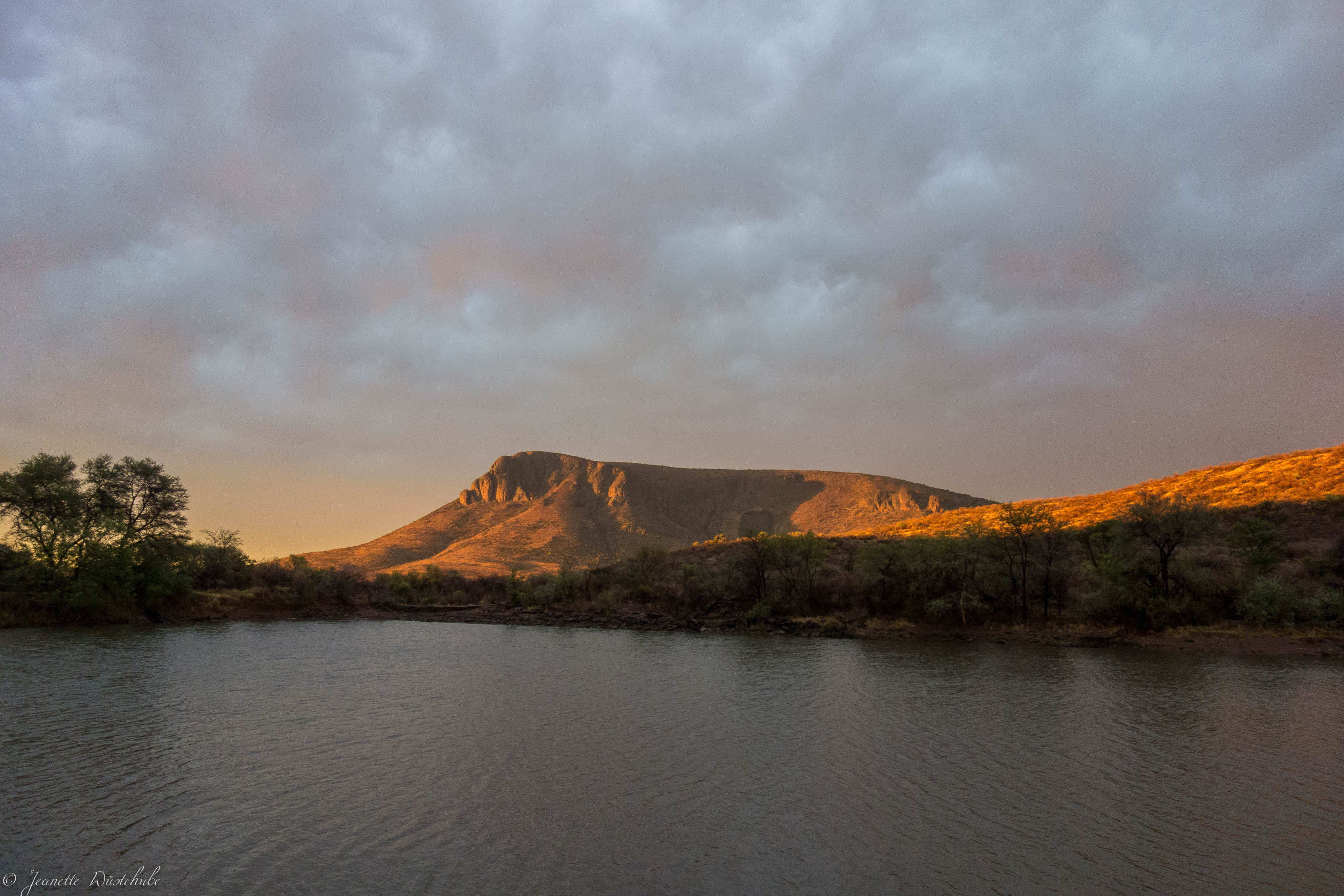 Gestern sind wir im Zvakanaka Camp angekommen, das etwas nördlich von Louis Trichard in Limpopo liegt und an diesem Platz könnten wir es noch eine ganze Weile aushalten. Aber der Reihe nach. Unser dreitägiger Besuch im Marakele Nationalpark und die Entscheidung für die drei Tage ein festes Zelt zu buchen, stellte sich als goldrichtig heraus. Wenn es hier regnet, dann richtig und das tat es während unseres Aufenthaltes mehrmals täglich. Teilweise hagelte es auch. In der letzten Nacht hatten wir dann auch noch einen ziemlichen Sturm. Wären wir da mit unserem Mobile Home Umbani auf dem Campingplatz gewesen, hätten wir keinen Schutz gehabt und dann wäre es sowohl draußen als auch im Zelt sehr ungemütlich und nass geworden. Das Tlopi Tented Camp liegt an einem kleinen Stausee. Es gibt etwa 10 feste Zelte. Jedes verfügt über ein Zelt mit zwei Einzelbetten, Dusche und WC und ein extra Häuschen mit Küchenzeile. Auf der kleinen zum See ausgerichteten Terrasse standen zwei Stühle und ein Grill. Man hatte Blick auf die umliegenden Berge. Wirklich sehr schön. Über dem Zelt war noch eine wasserdichte Plane gespannt, so dass es, selbst als es wie aus Eimern schüttete, nicht hereinregnete. Und auf den Betten lagen wir wie auf Wolken, auch wenn diese sicher nicht die besten Matratzen hatten, aber sowohl Toms als auch mein Rücken liebten diese Betten. Im See gab es riesige Welse, die immer wieder aus dem Wasser sprangen, wahrscheinlich um sich Mücken von der Wasseroberfläche zu holen. Einmal schwamm auch ein Waran zu uns ans Ufer und ab uns zu trank und graste ein Buschböckchen vor unserem Zelt. Wenn es nach den heftigen Gewitterschauern nachts aufklarte, hatte man vom Bett aus Blick auf den unglaublich schönen Sternenhimmel.