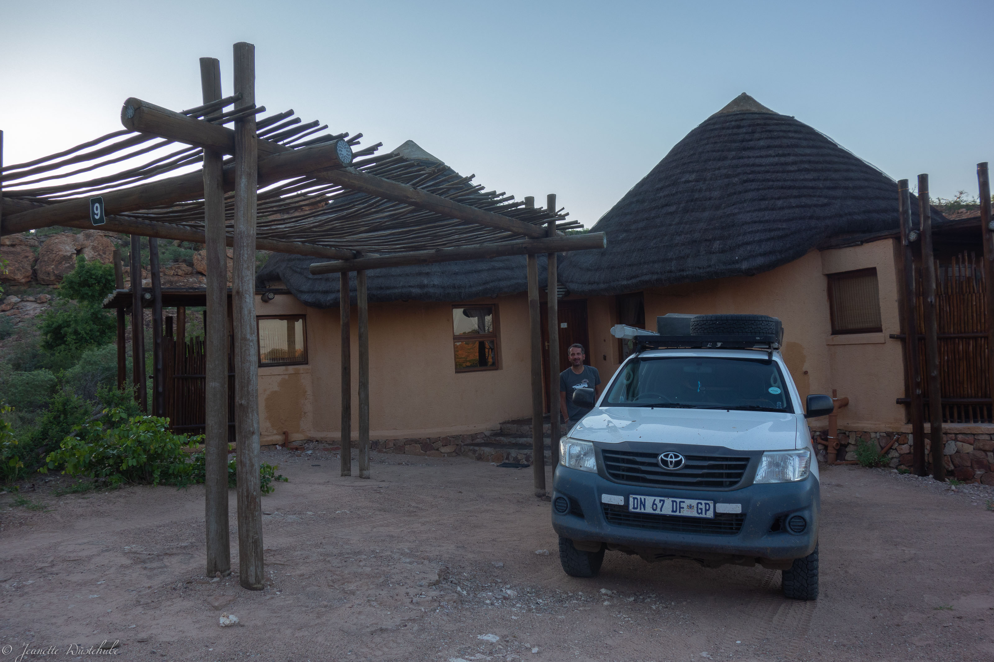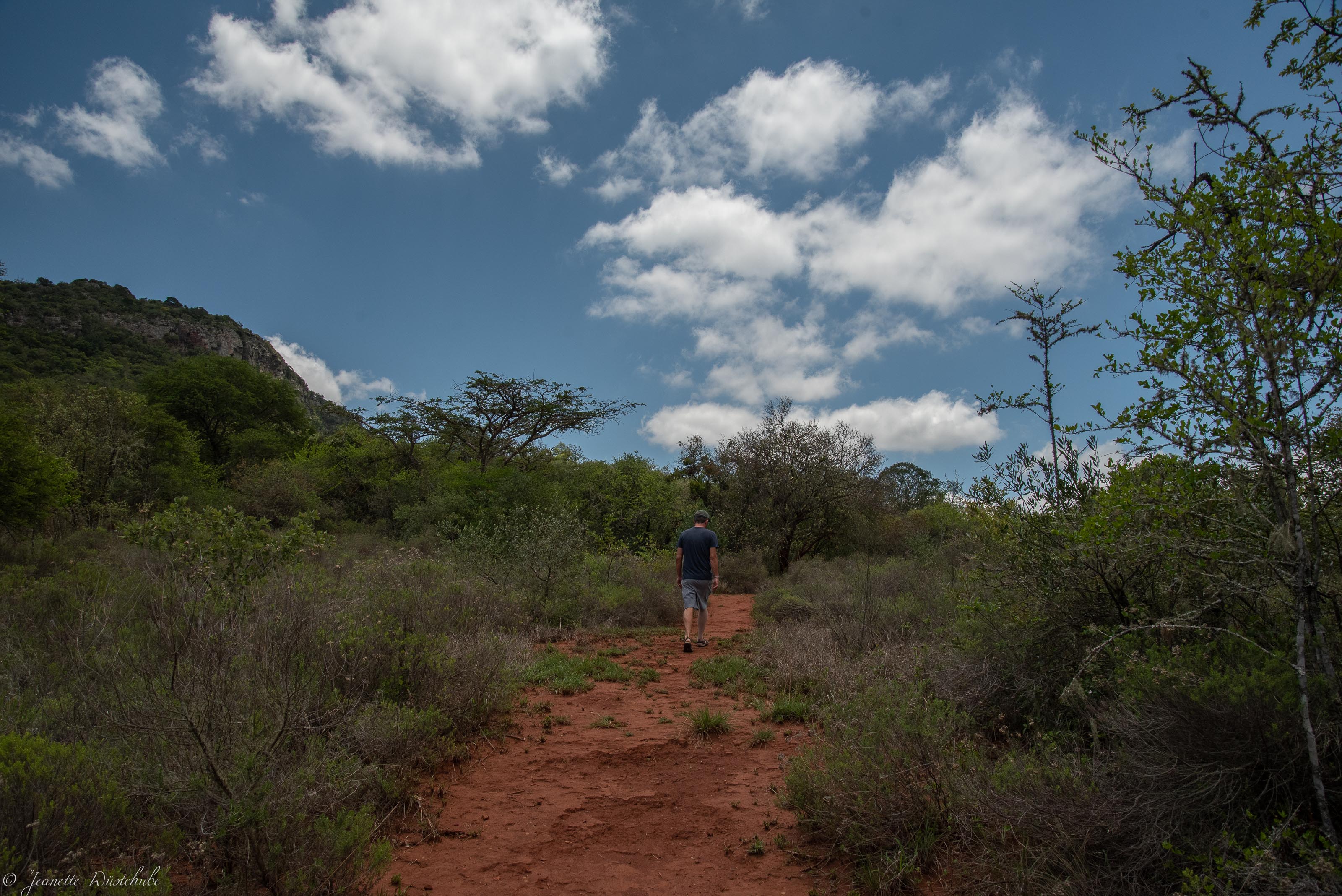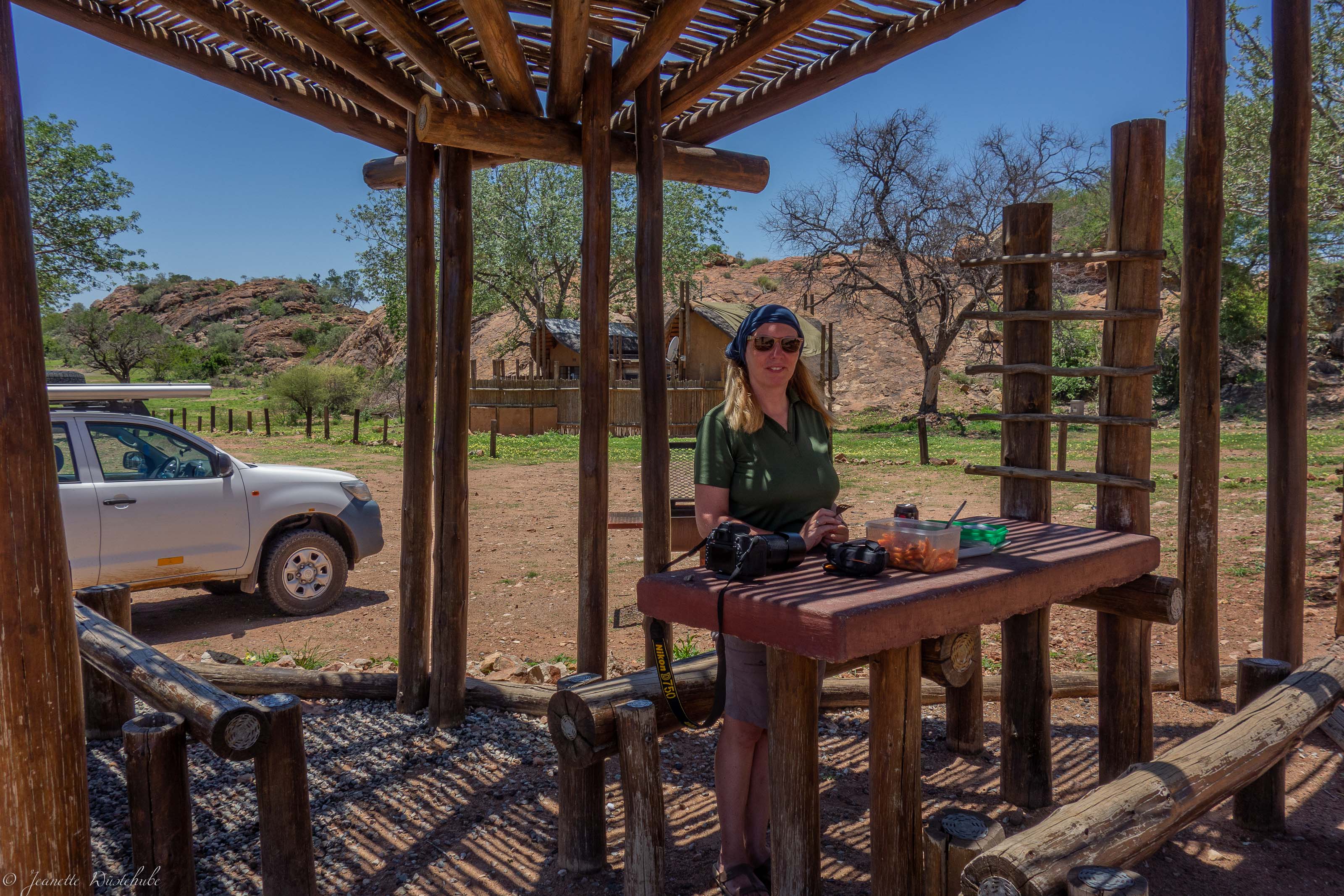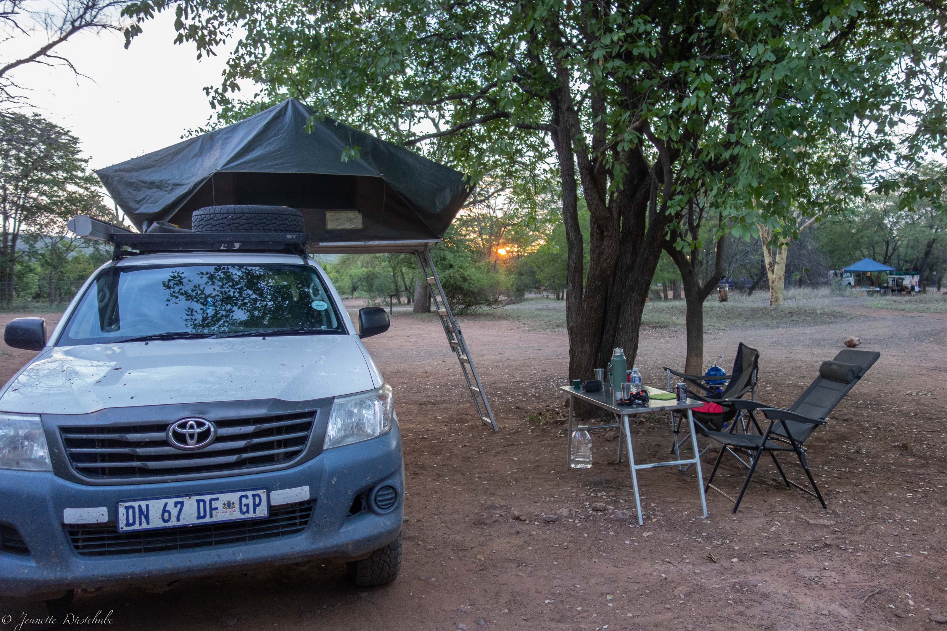 Gail kam auch bei unserer Ankunft vorbei, um uns zu begrüßen. Sie erklärte, dass es eine Infomappe gab, in der wir auch etwas zu den Wanderwegen finden konnten. Außerdem wurde der kleine Pool gerade noch frisch gefüllt. Zu dem in der Ferne zu hörenden Knall meinte sie, dass sei ihr verrückter Nachbar, der auf die Paviane schießen würde, obwohl es verboten ist. Sie fand es offensichtlich so schrecklich wie ich und wir hörten bei unserem Aufenthalt noch mehrmals Schüsse… Dann war Gail schon wieder weg und wir hatten das schöne Fleckchen Erde für uns. Wie eingangs geschrieben, könnte man es hier gut noch viel länger aushalten und wer wie wir auf dem Weg nach Mapungubwe eine Übernachtung benötigt, sollte sich hier einquartieren. Es gibt auch eine feste Unterkunft für die, die nicht campen möchten.