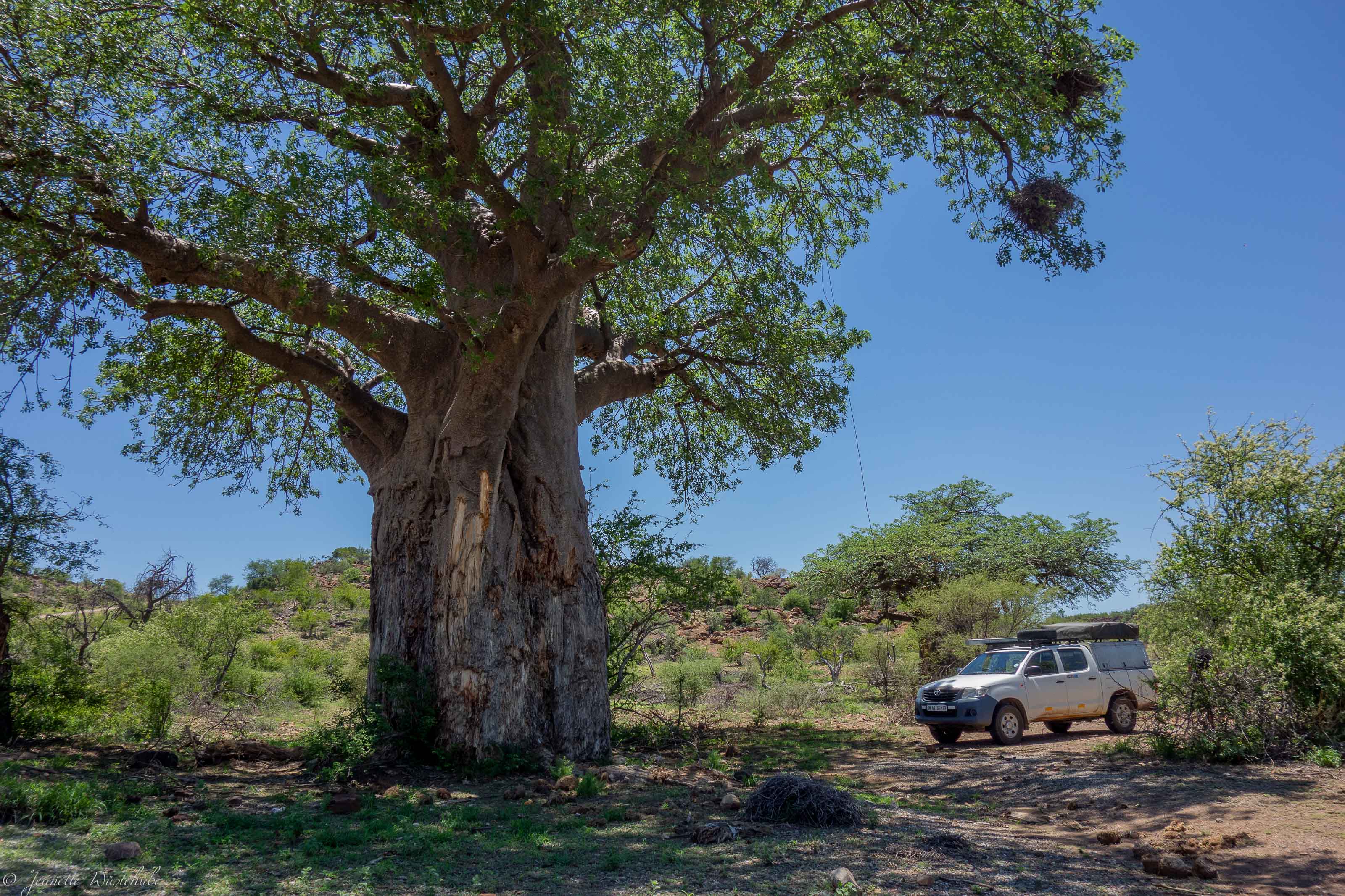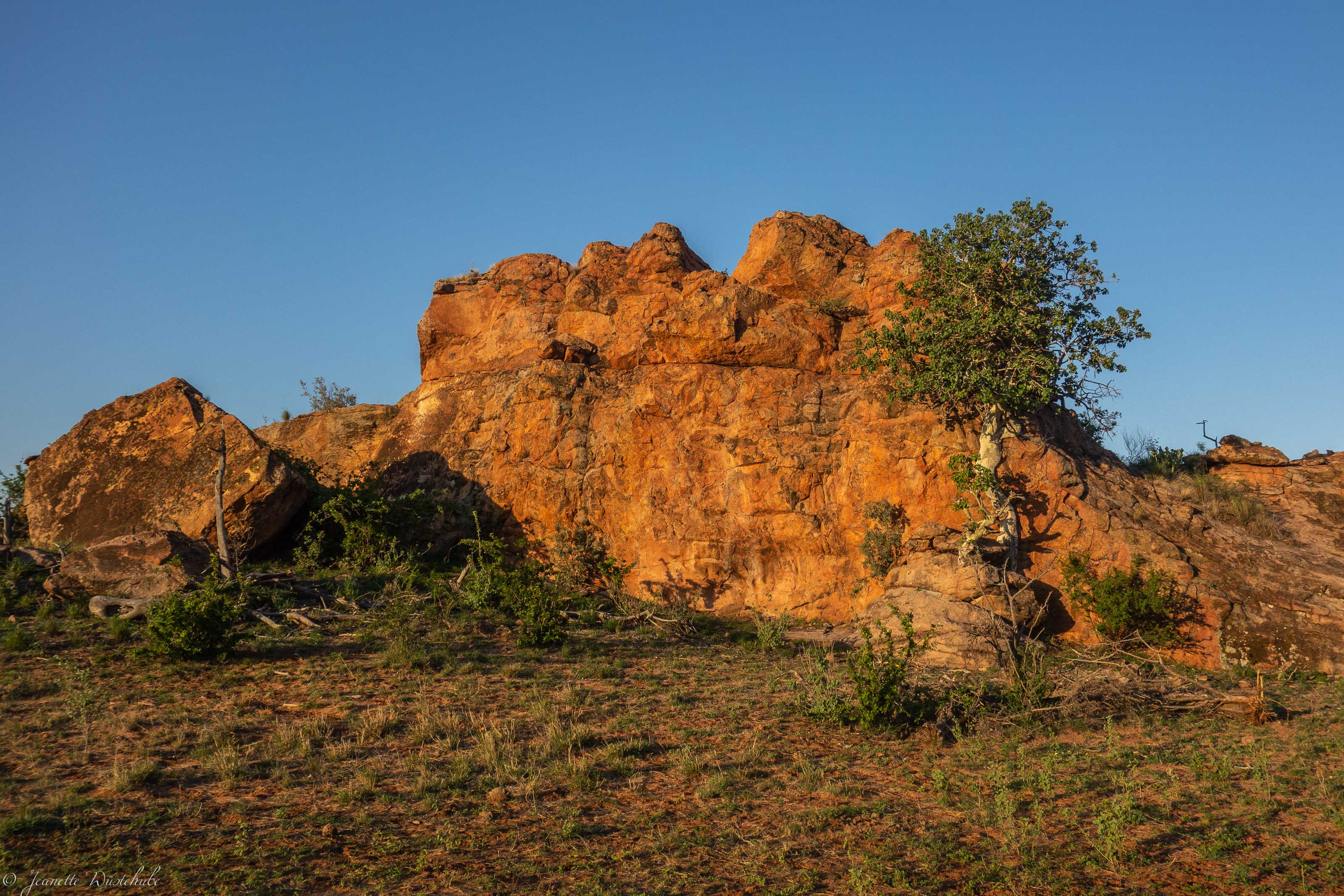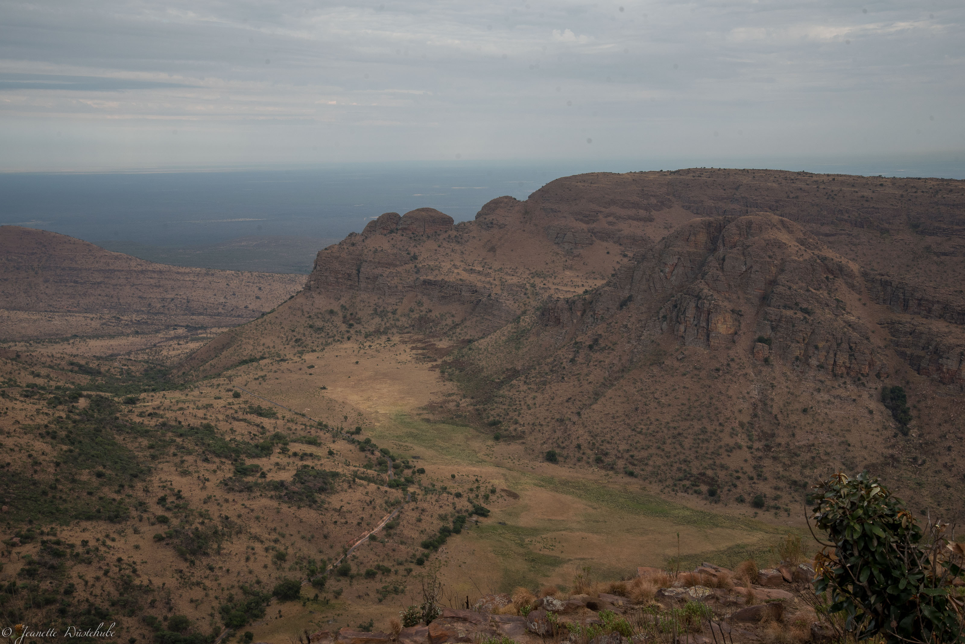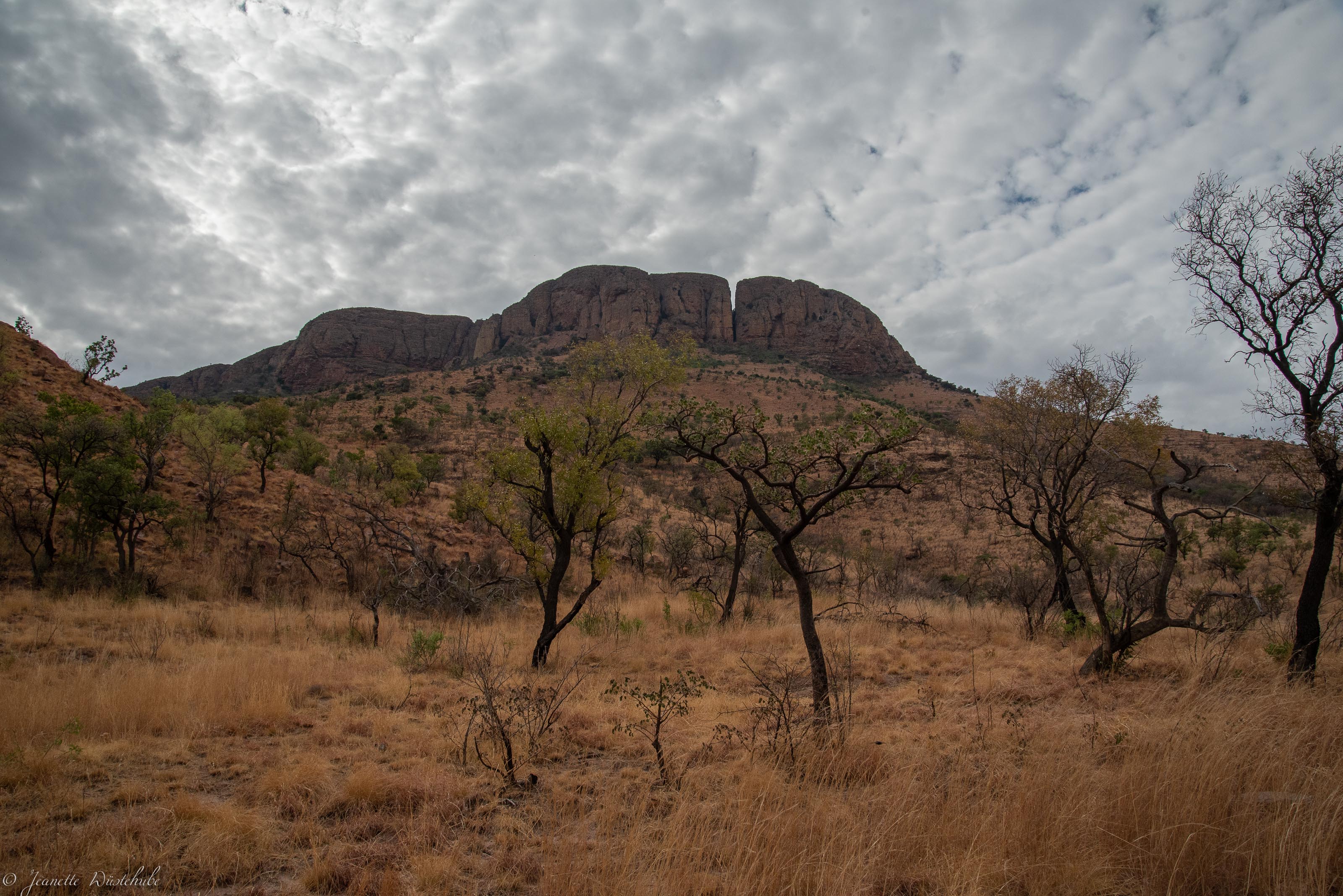 Gail kam auch bei unserer Ankunft vorbei, um uns zu begrüßen. Sie erklärte, dass es eine Infomappe gab, in der wir auch etwas zu den Wanderwegen finden konnten. Außerdem wurde der kleine Pool gerade noch frisch gefüllt. Zu dem in der Ferne zu hörenden Knall meinte sie, dass sei ihr verrückter Nachbar, der auf die Paviane schießen würde, obwohl es verboten ist. Sie fand es offensichtlich so schrecklich wie ich und wir hörten bei unserem Aufenthalt noch mehrmals Schüsse… Dann war Gail schon wieder weg und wir hatten das schöne Fleckchen Erde für uns. Wie eingangs geschrieben, könnte man es hier gut noch viel länger aushalten und wer wie wir auf dem Weg nach Mapungubwe eine Übernachtung benötigt, sollte sich hier einquartieren. Es gibt auch eine feste Unterkunft für die, die nicht campen möchten.