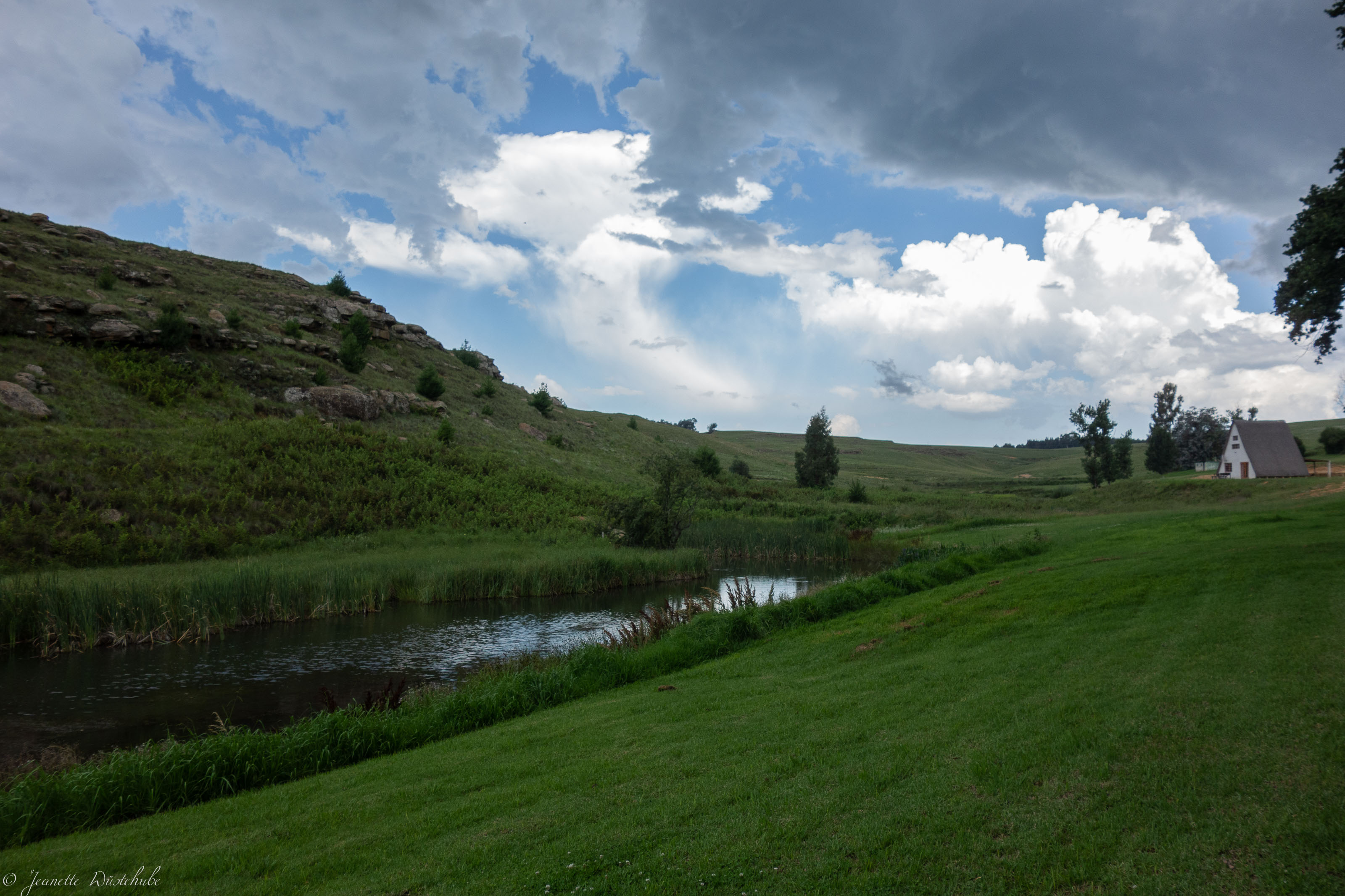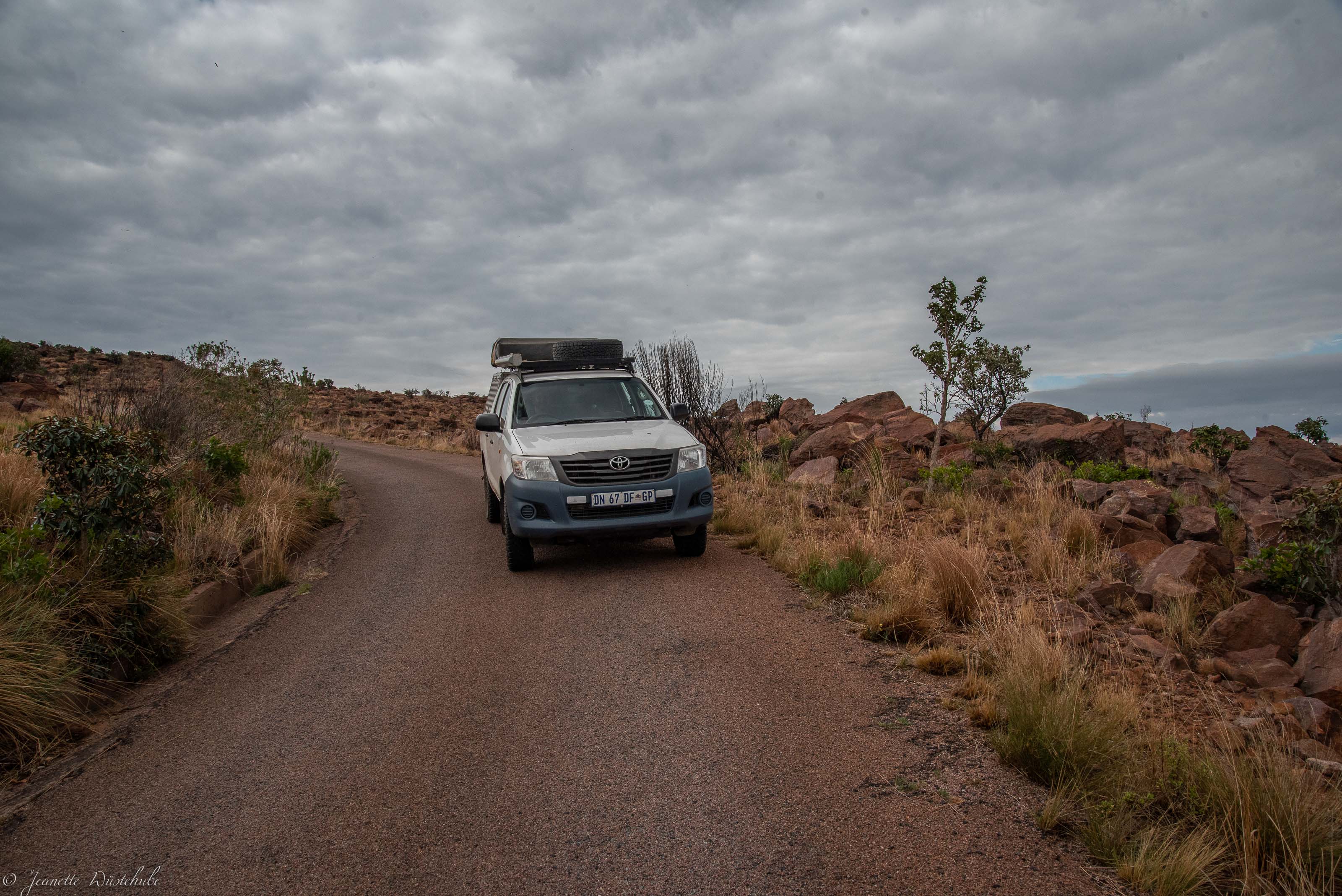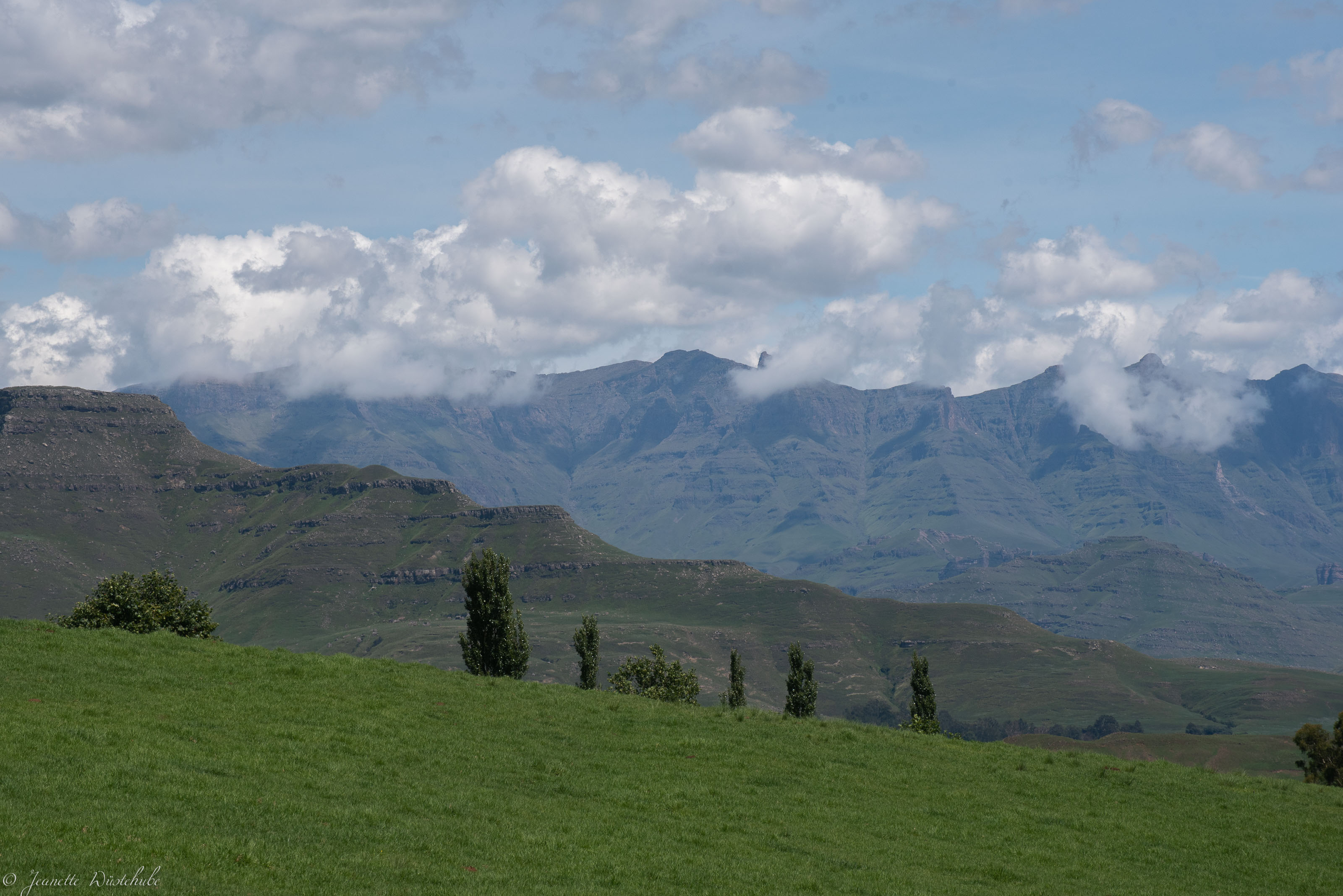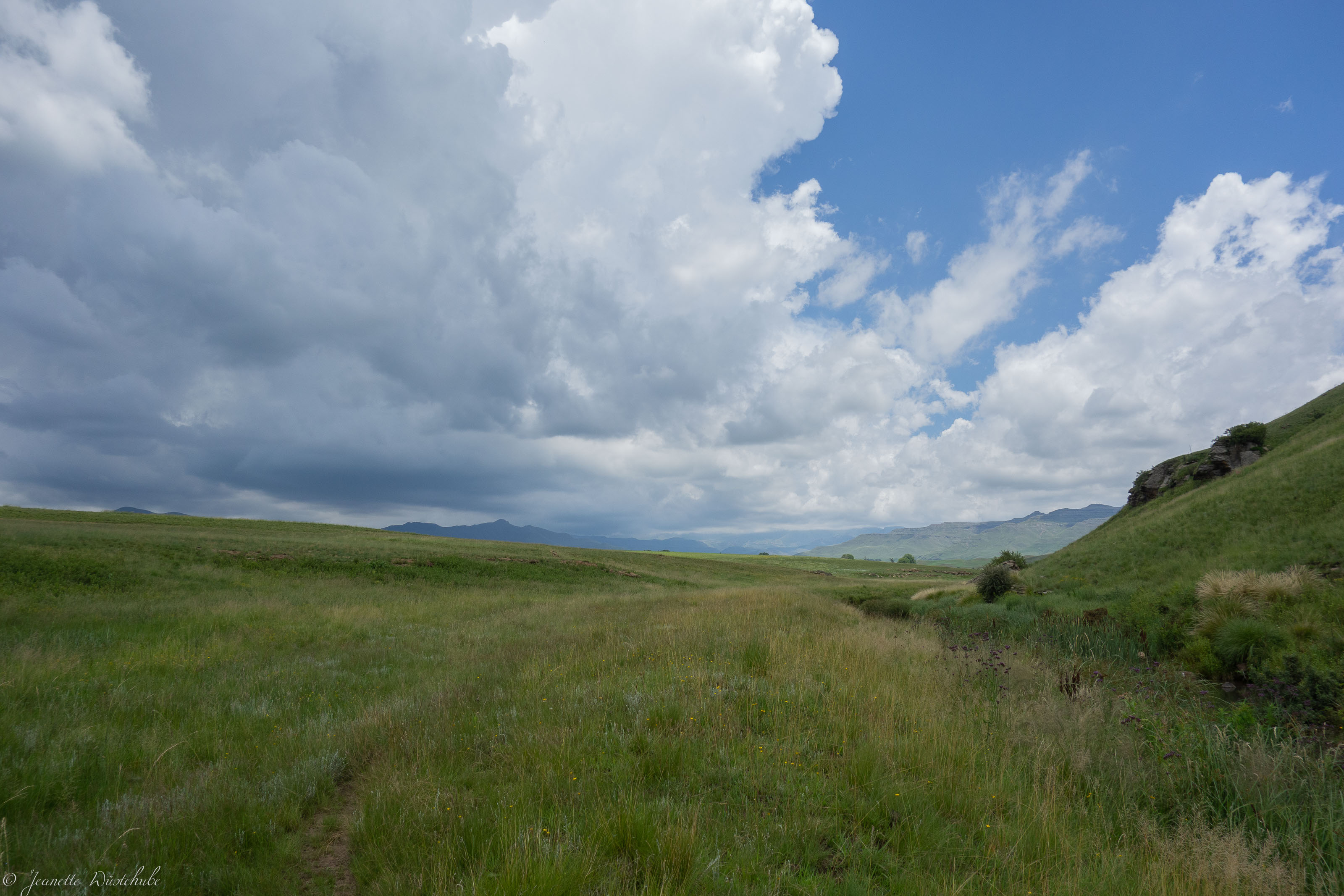 Unser zweiter Stopp in den Drakensbergen lag im nördlichen Teil des Gebirges, in der Nähe von Bergville und damit rund 300 km von Underberg entfernt. Wir hatten im Hlalanati Ressort einen Campingplatz reserviert, entschlossen uns aber in eine feste Unterkunft umzubuchen, auch wenn das hieß, dass wir dann während unseres Trips nicht mehr campen würden 😦 Eigentlich hatte ich das letzte Mal im Dachzelt schlafen, bewusst genießen wollen. Aber aufgrund der Wettervorhersagen für die Region und der Erfahrung aus Underberg (Hagel, Gewitter) trafen wir diese Vernunftentscheidung.