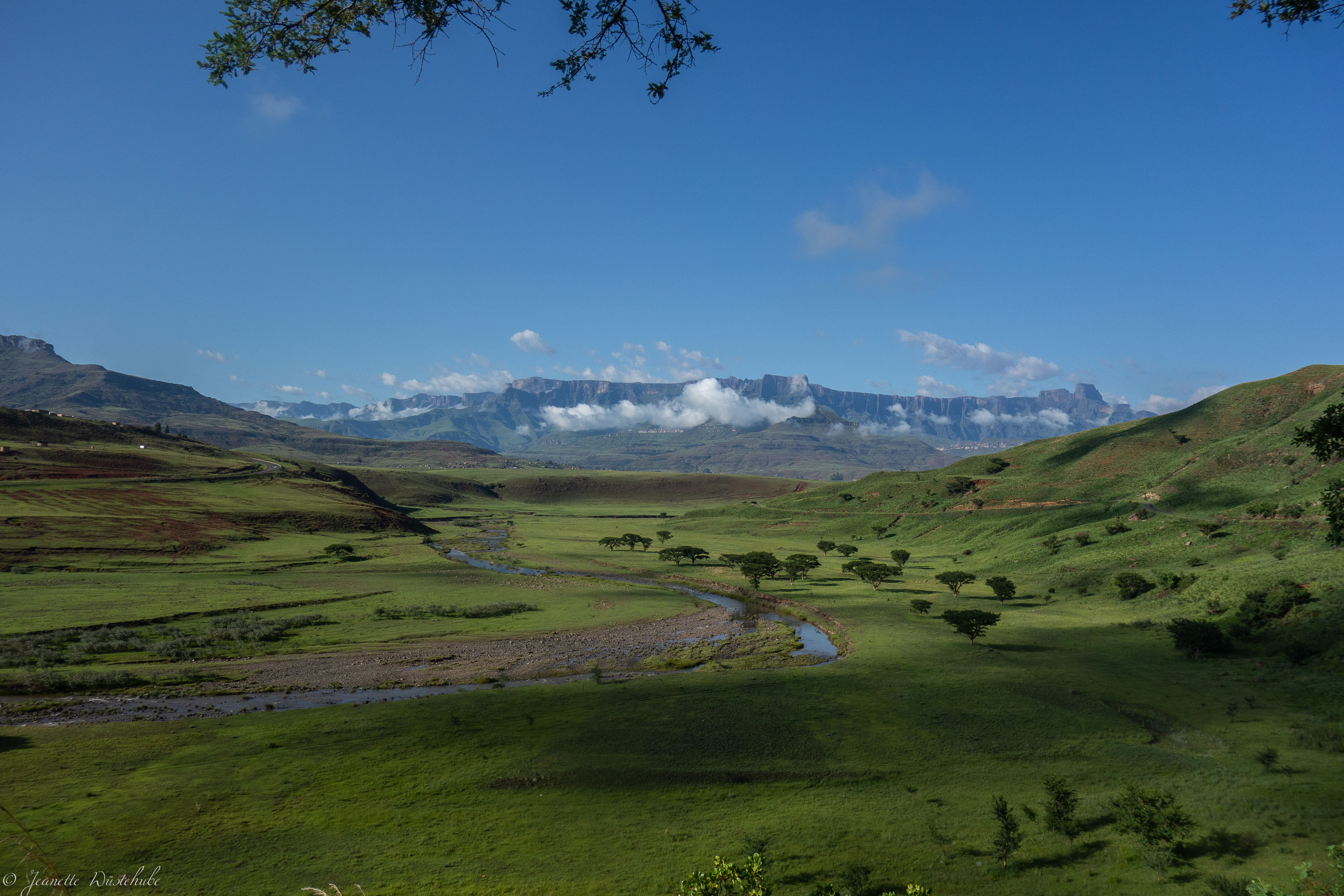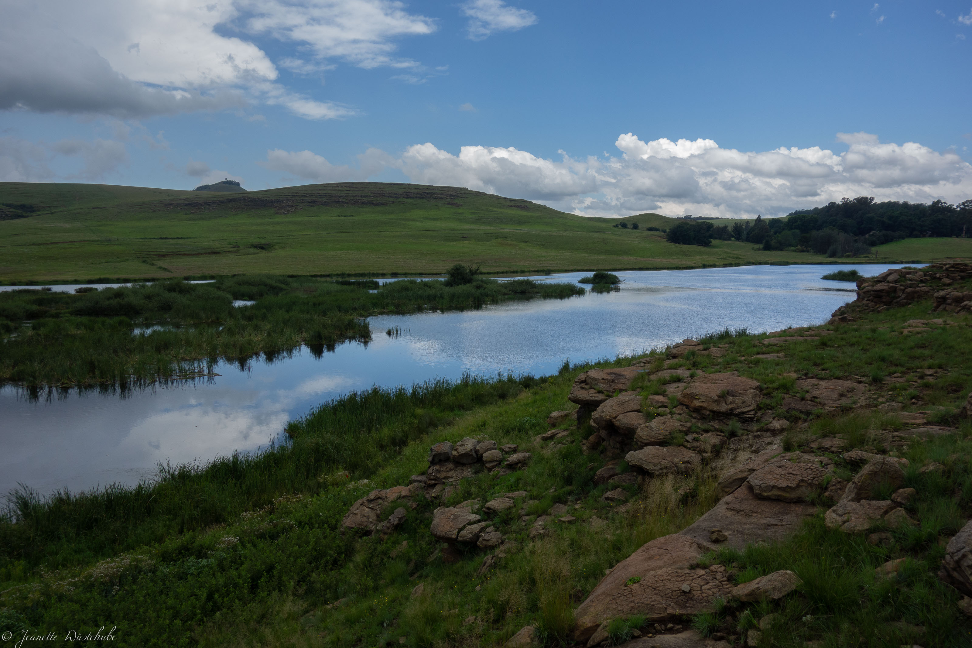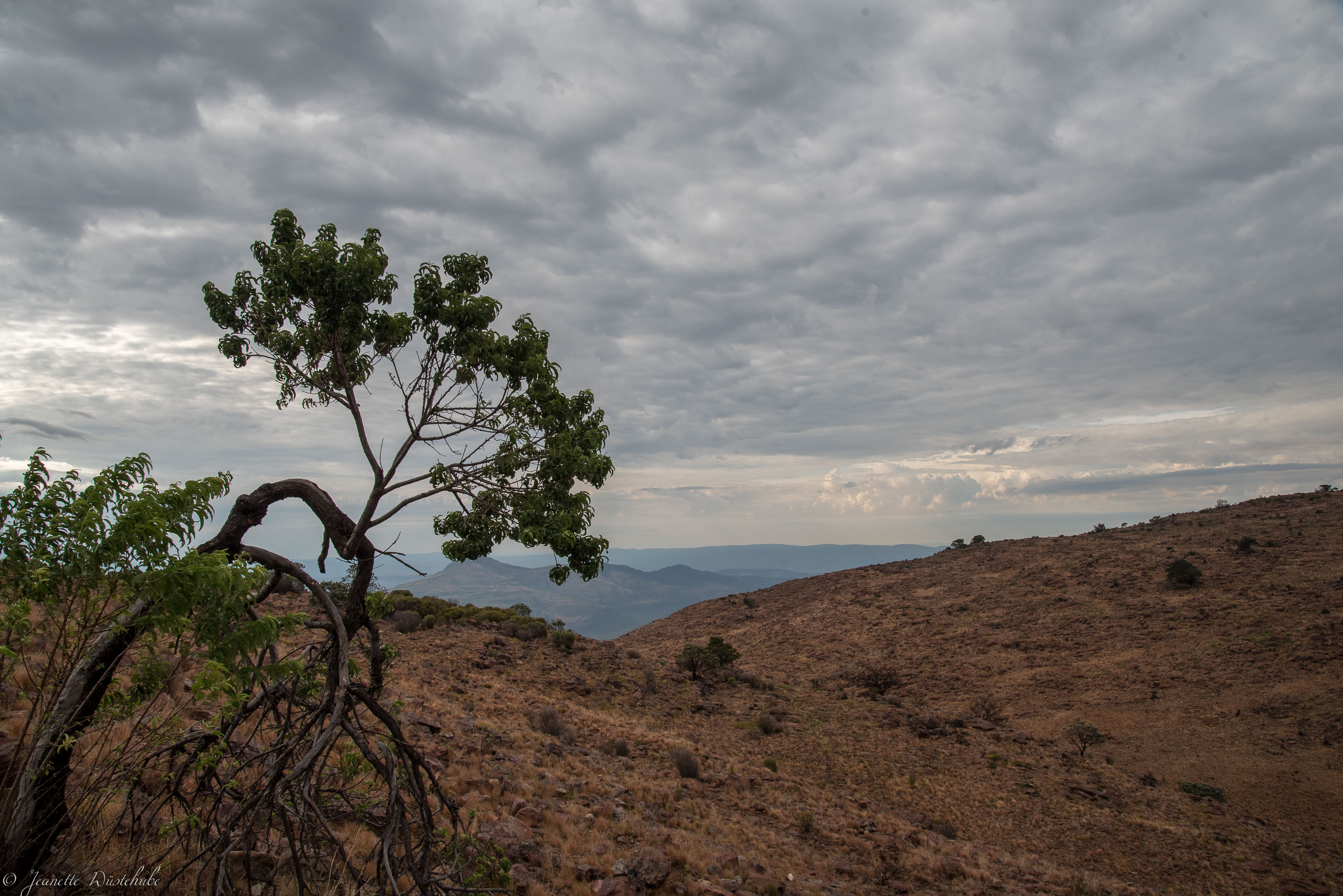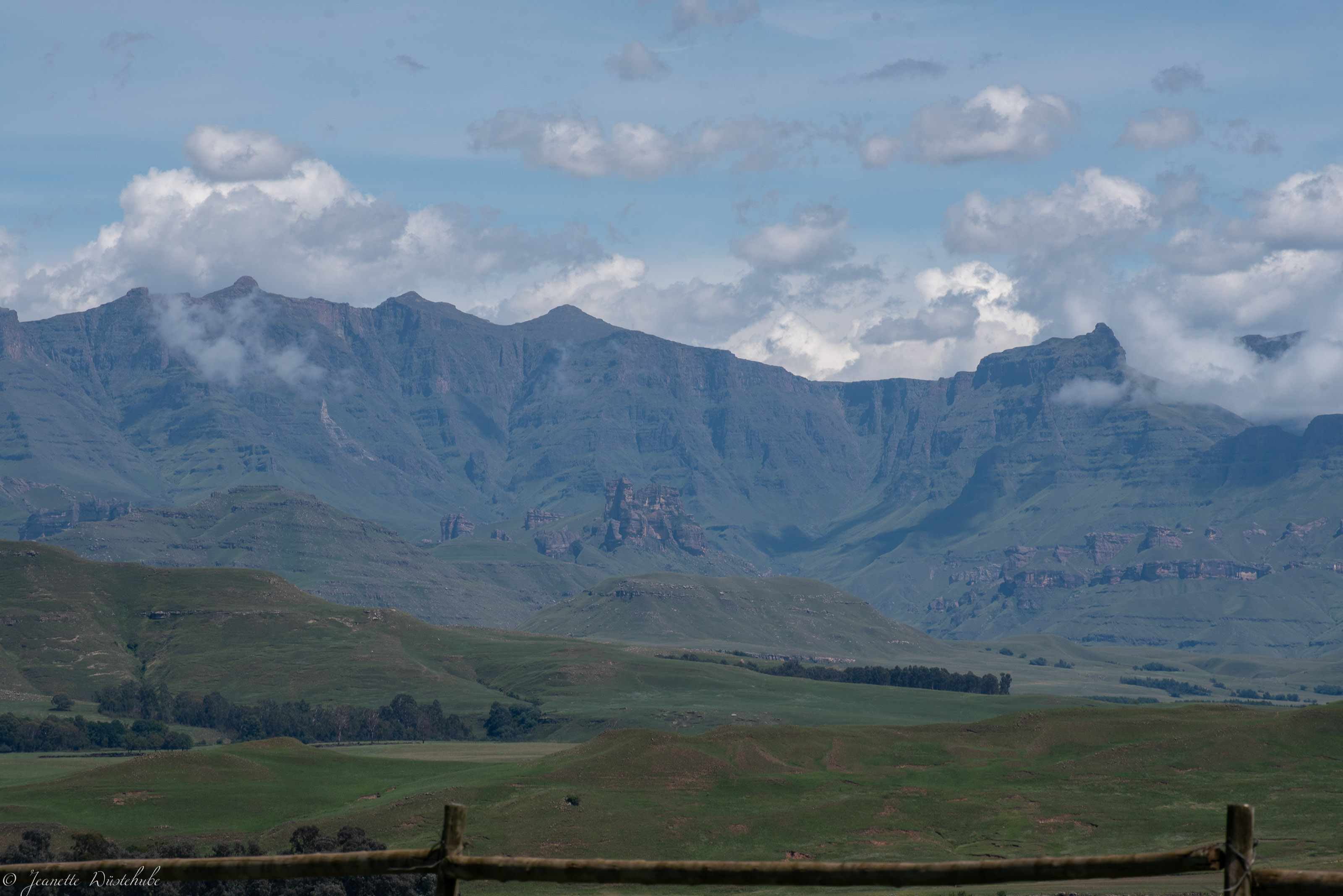 Unser zweiter Stopp in den Drakensbergen lag im nördlichen Teil des Gebirges, in der Nähe von Bergville und damit rund 300 km von Underberg entfernt. Wir hatten im Hlalanati Ressort einen Campingplatz reserviert, entschlossen uns aber in eine feste Unterkunft umzubuchen, auch wenn das hieß, dass wir dann während unseres Trips nicht mehr campen würden 😦 Eigentlich hatte ich das letzte Mal im Dachzelt schlafen, bewusst genießen wollen. Aber aufgrund der Wettervorhersagen für die Region und der Erfahrung aus Underberg (Hagel, Gewitter) trafen wir diese Vernunftentscheidung.