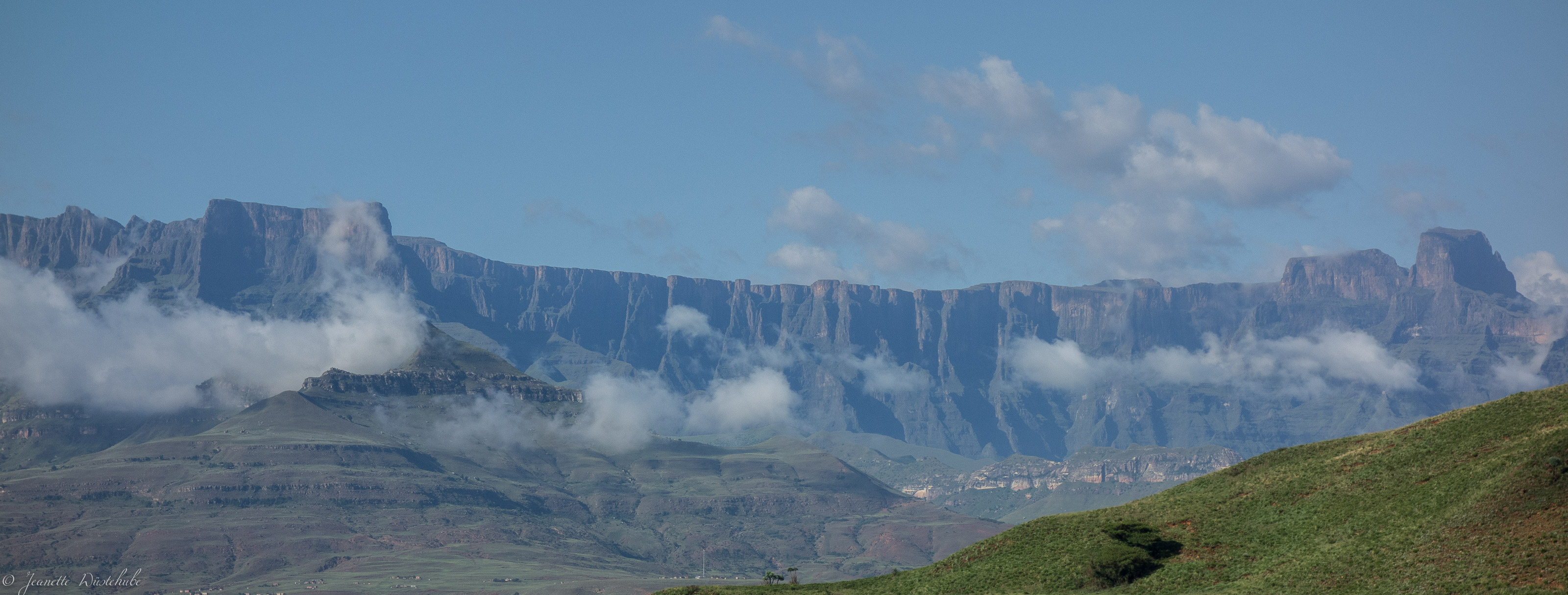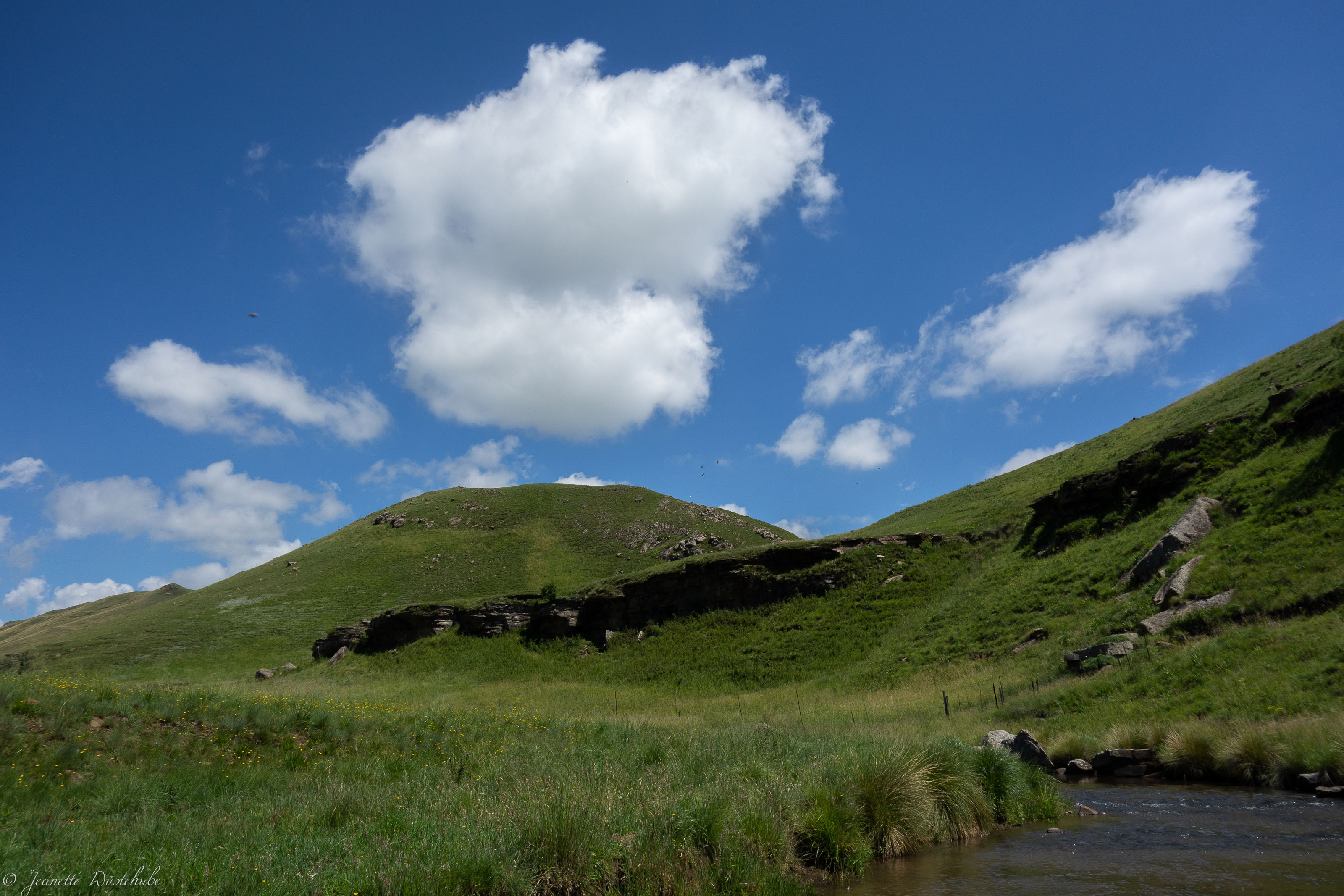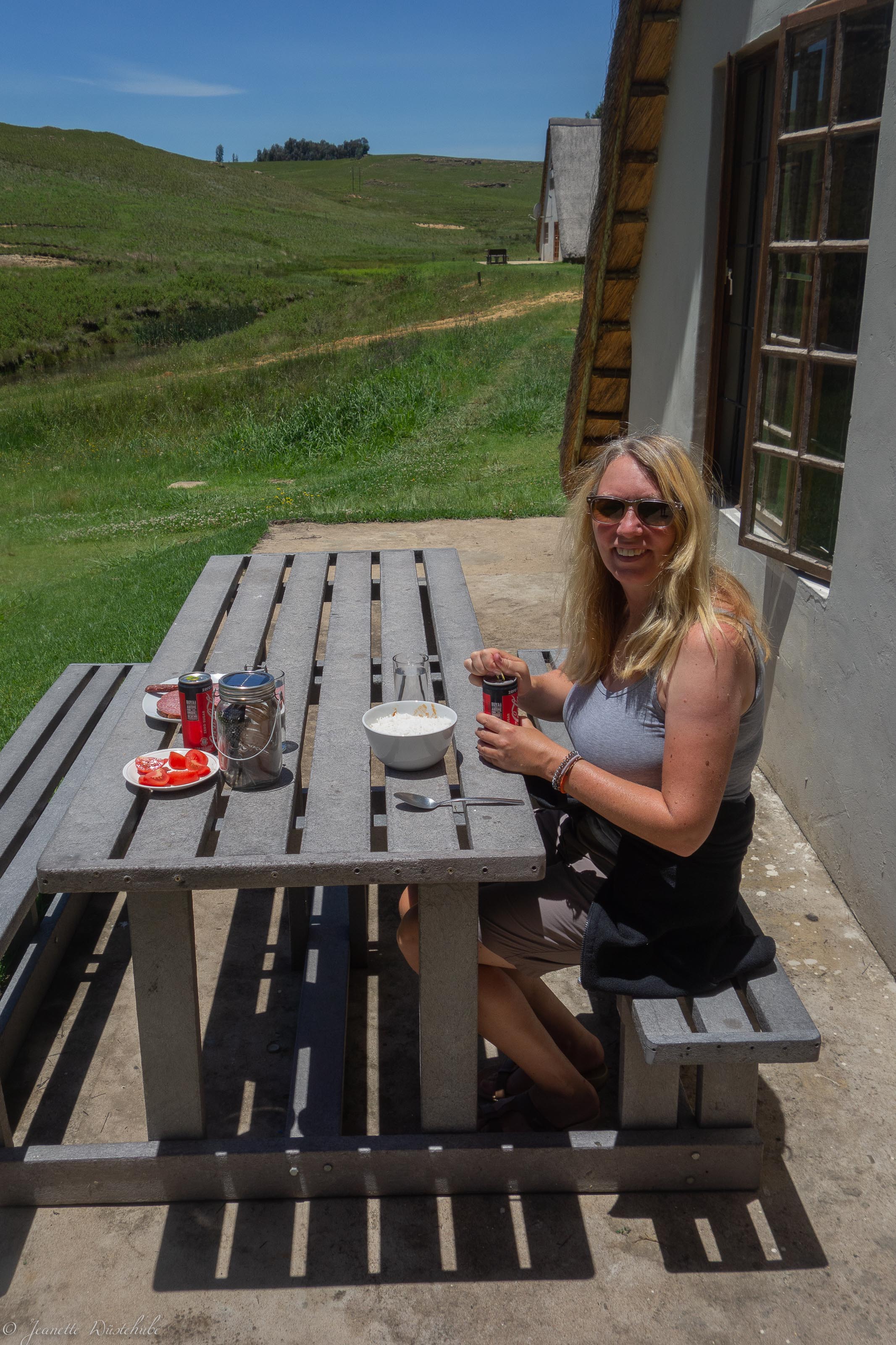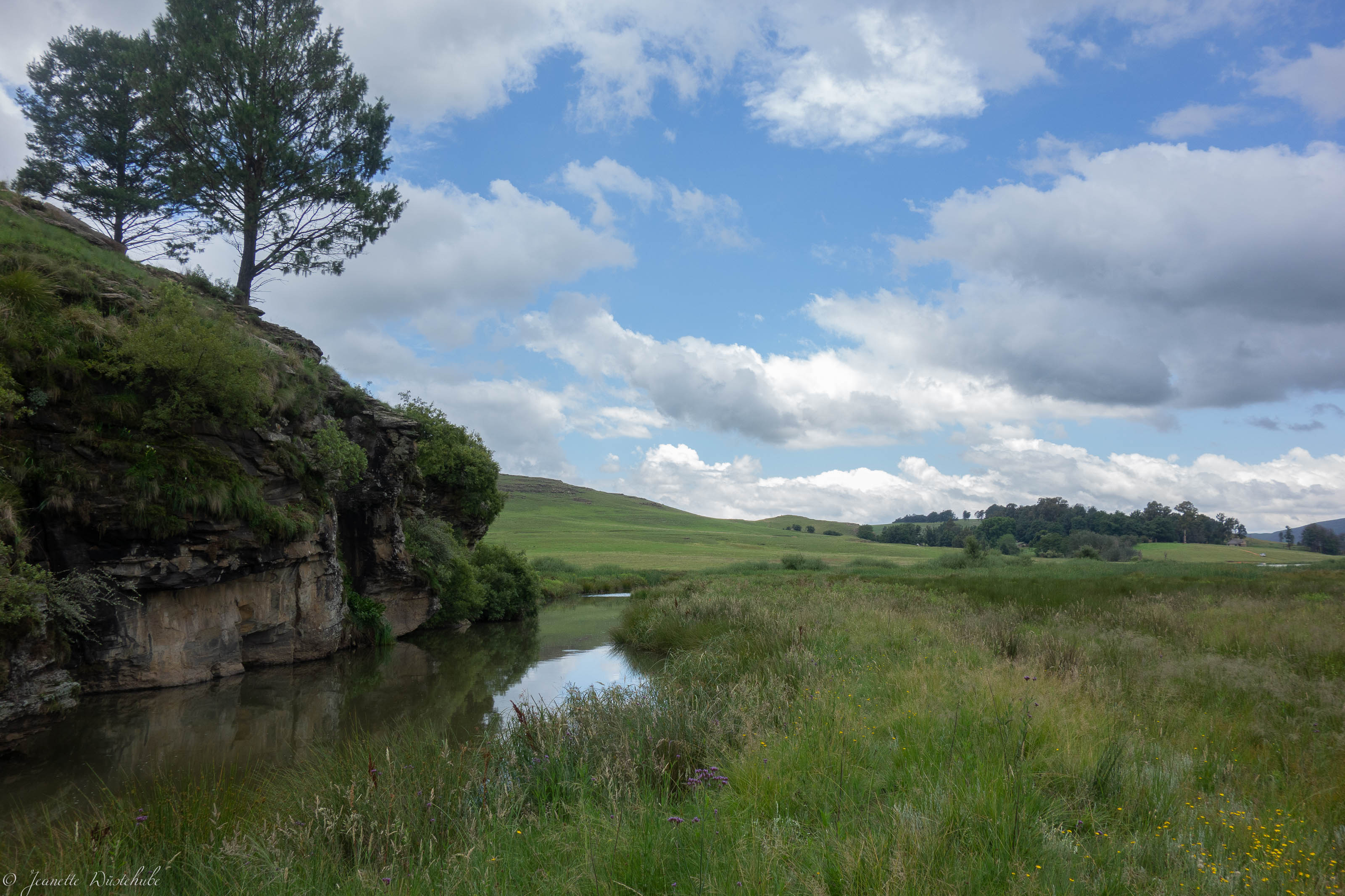 Unser zweiter Stopp in den Drakensbergen lag im nördlichen Teil des Gebirges, in der Nähe von Bergville und damit rund 300 km von Underberg entfernt. Wir hatten im Hlalanati Ressort einen Campingplatz reserviert, entschlossen uns aber in eine feste Unterkunft umzubuchen, auch wenn das hieß, dass wir dann während unseres Trips nicht mehr campen würden 😦 Eigentlich hatte ich das letzte Mal im Dachzelt schlafen, bewusst genießen wollen. Aber aufgrund der Wettervorhersagen für die Region und der Erfahrung aus Underberg (Hagel, Gewitter) trafen wir diese Vernunftentscheidung.
