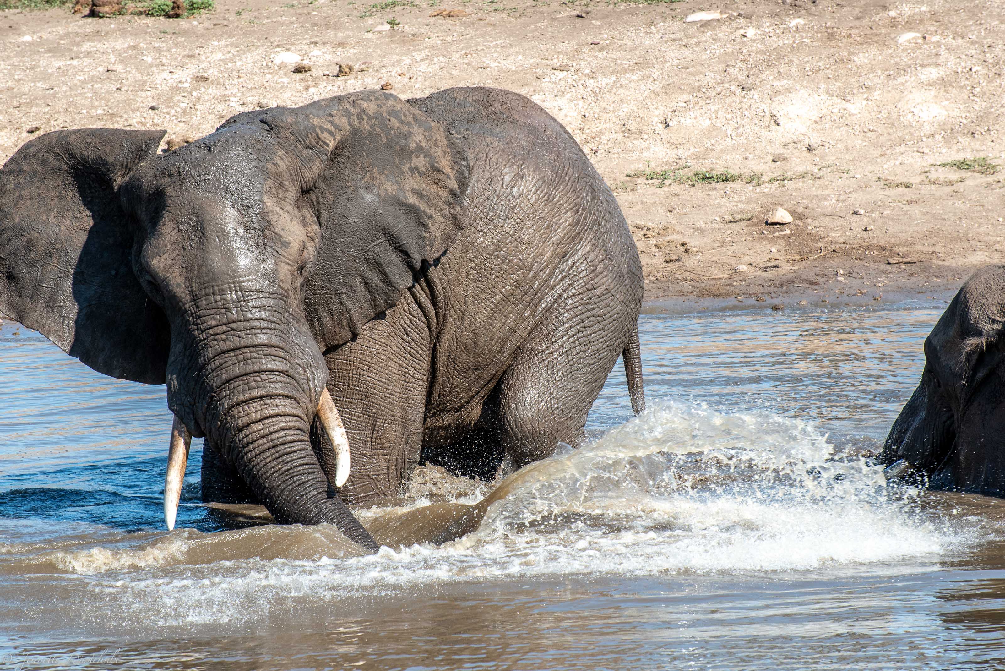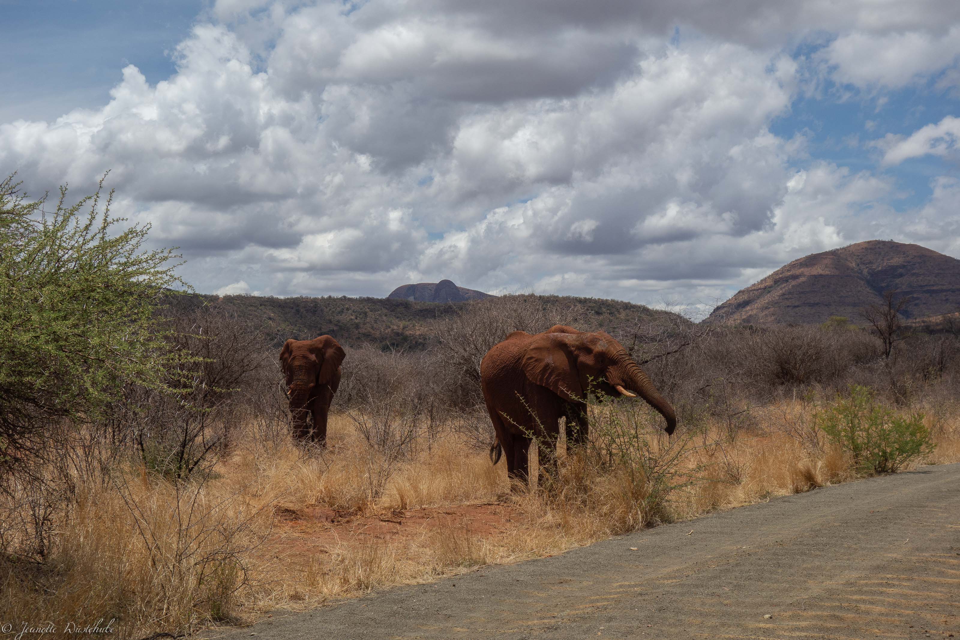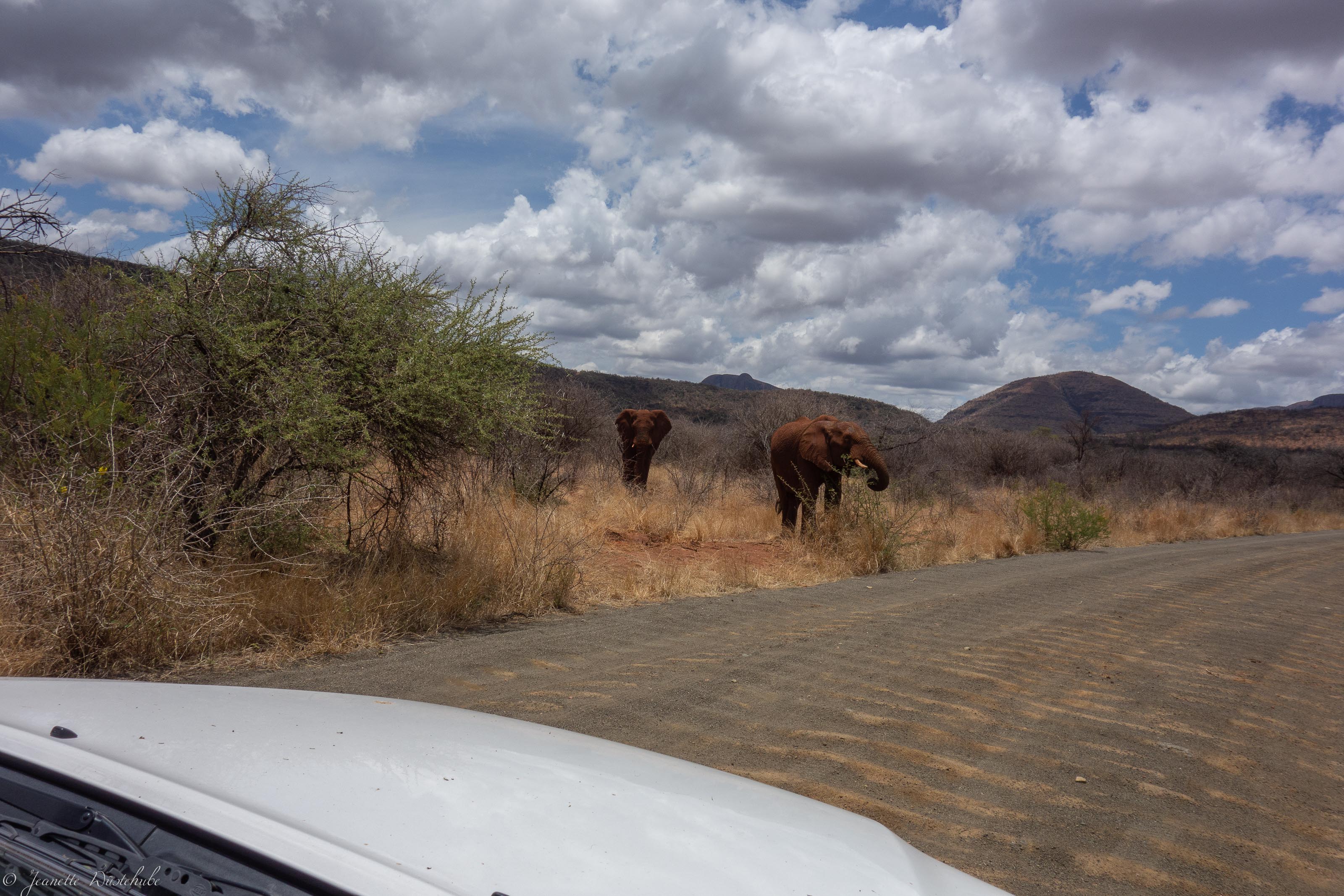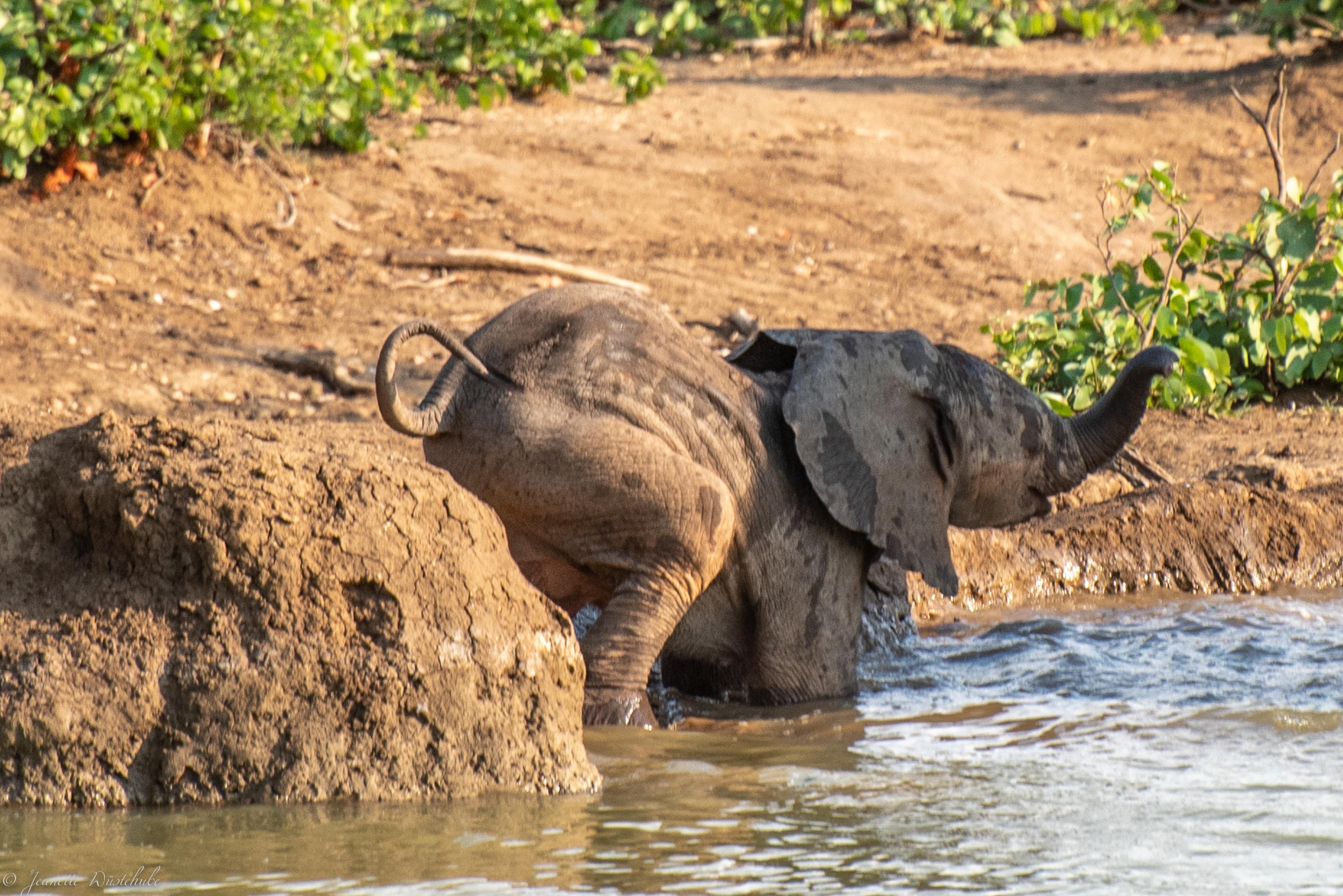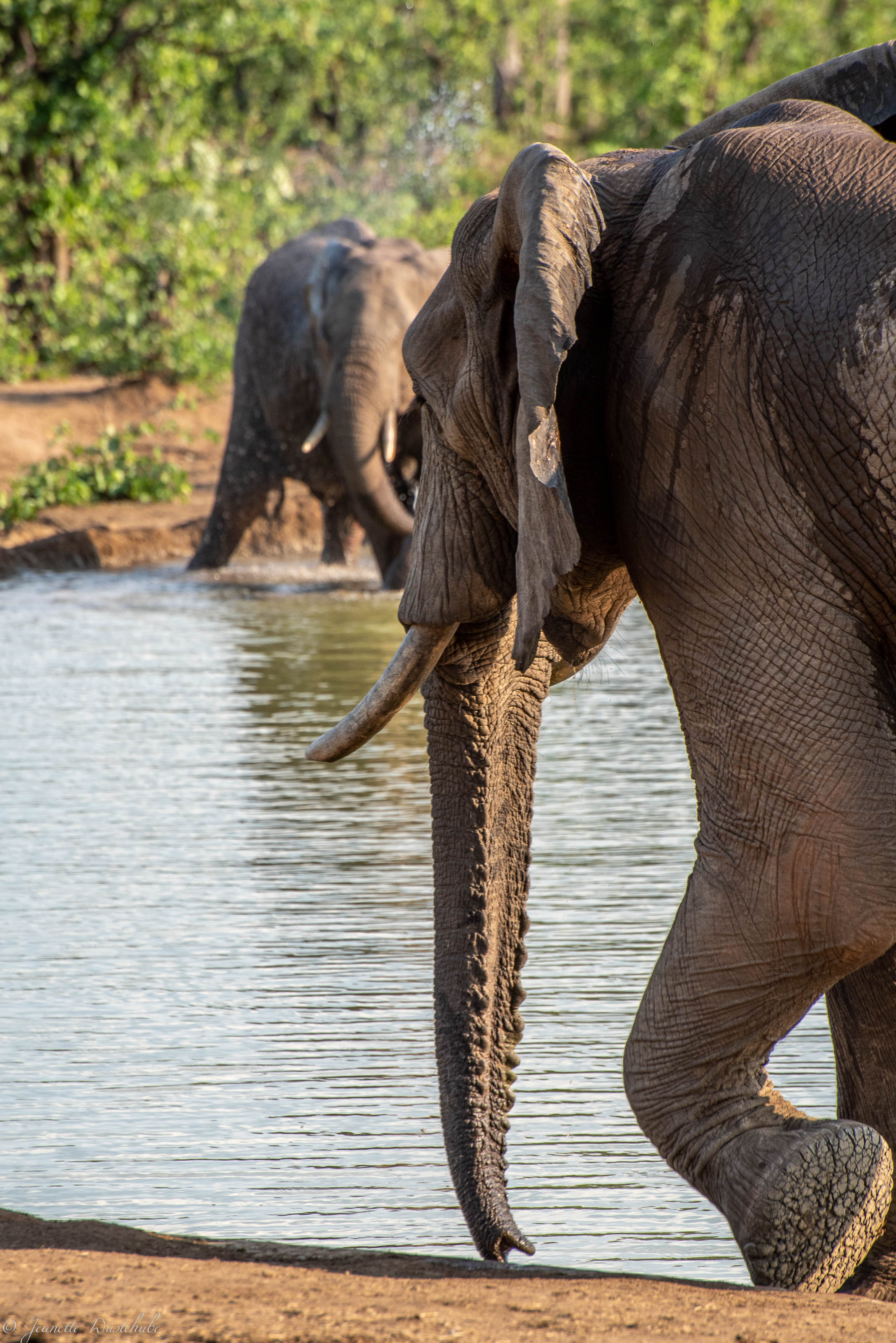 Erst an Tag 2 fanden wir auf dem Rückweg ins Camp zwei Elefanten, die aus einer Pfütze am Wegesrand tranken. Wir hatten schon gedacht, es gäbe nur Antilopen im Park und die festen Ausscheidungen, die von Nashörnern oder Elefanten stammen mussten, waren von den Rangern platziert worden um die Besucher Glauben zu machen, es gäbe auch Dickhäuter im Park 🙂