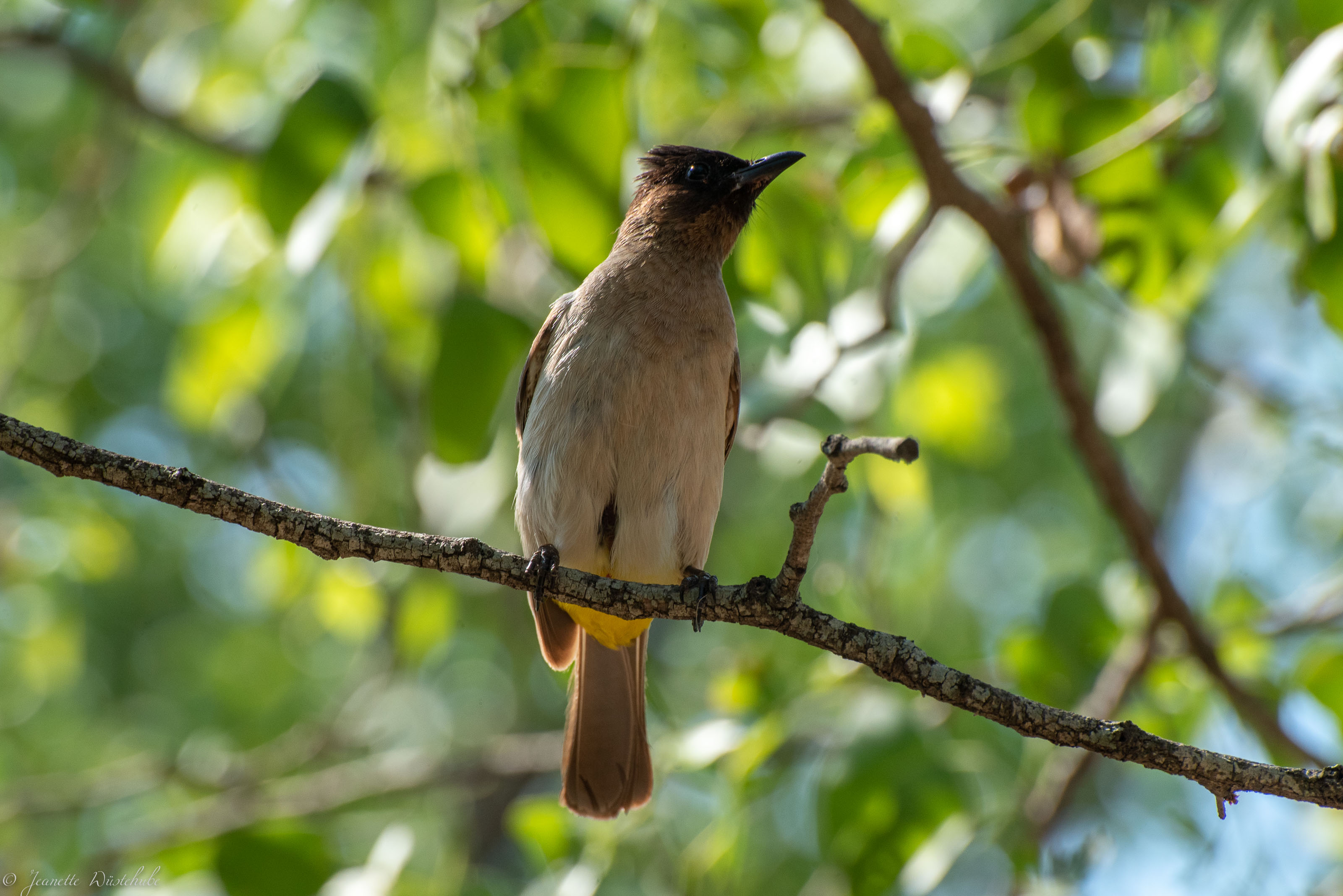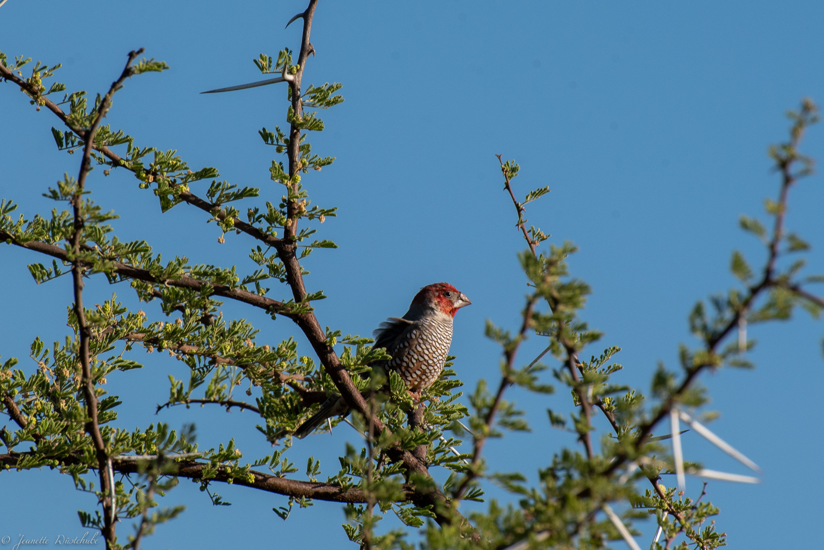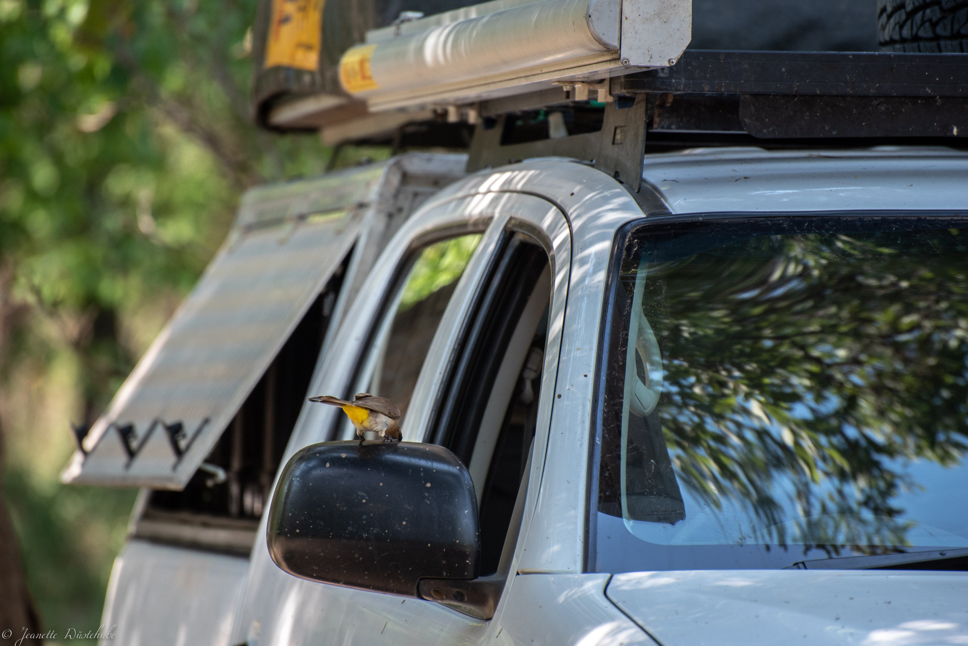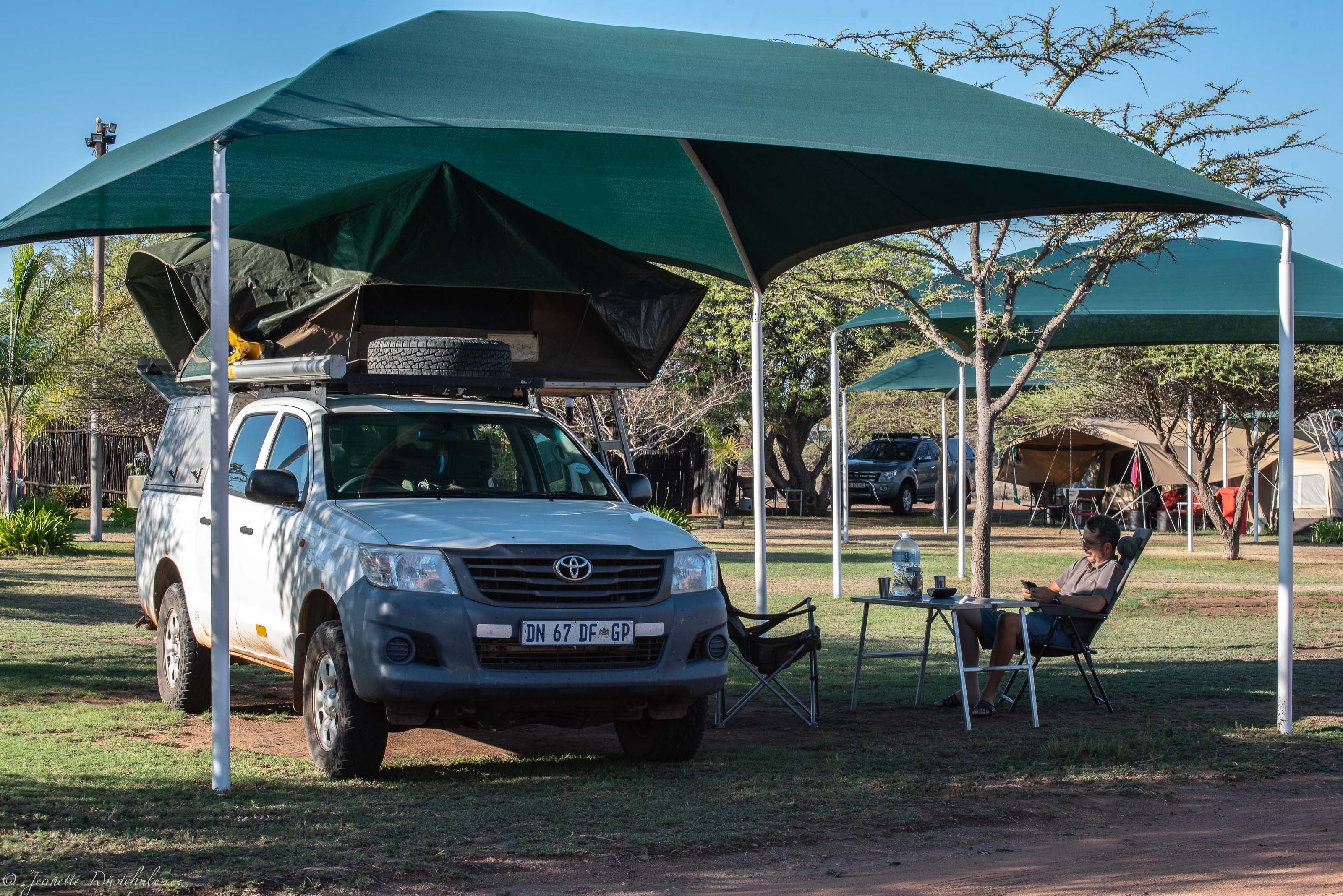 Die Campsite hatte große, schattige Plätze mit Strom und Wasser. In der namensgebenden, aber nicht gerade ansprechenden Boma hätte man grillen können. Da wir aber schon zu Mittag gegessen hatten, mussten wir nicht mehr kochen. Die Ablutions waren sauber und es gab auch einen schönen Garten mit vielen hübschen Vögeln.