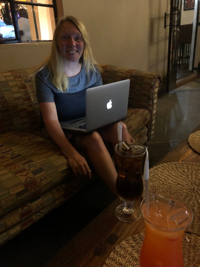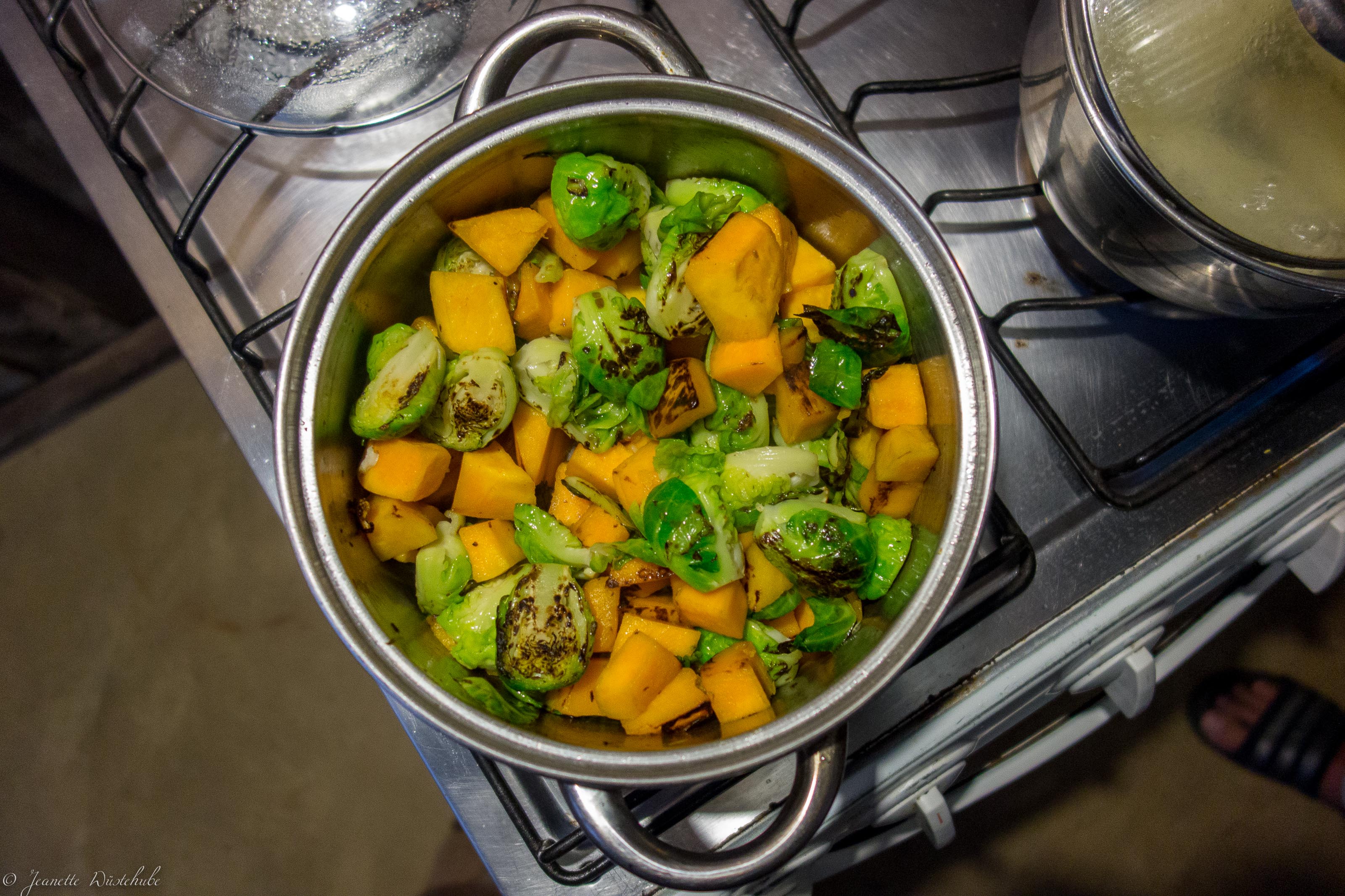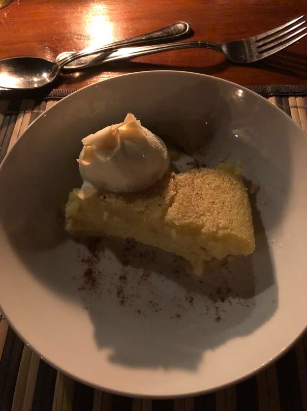 Sonst machten nicht mehr viel, checkten für den Flug ein, luden unser Zugticket herunter für die Fahrt vom Frankfurter Flughafen nach Stuttgart und hingen vor allem unseren Gedanken nach, was uns wohl außer 30 Grad Temperaturunterschied in Stuttgart erwarten würde…. Wie würde die Wohnung aussehen (meine Mutter hatte ja netterweise die Wohnungsübergabe übernommen und schon gesagt, dass alles ok sei, trotzdem beschäftigte mich das)? Würde unser Auto anspringen? Was würden wir als erstes essen? Was würde uns am meisten fehlen? Wie schnell würde uns der Alltag wieder im Griff haben?… Wir nutzten ein letztes Mal den Pool unserer Unterkunft und aßen auch dort zum letzten Mal afrikanisch zu Abend: Butternut Squash, Erbsen und Kartoffelbrei mit Beef-Quiche gab es zum Hauptgang und Apple Crumble zum Dessert. Dazu schauten wir Premier League in der Bar. Ich hätte heulen können…