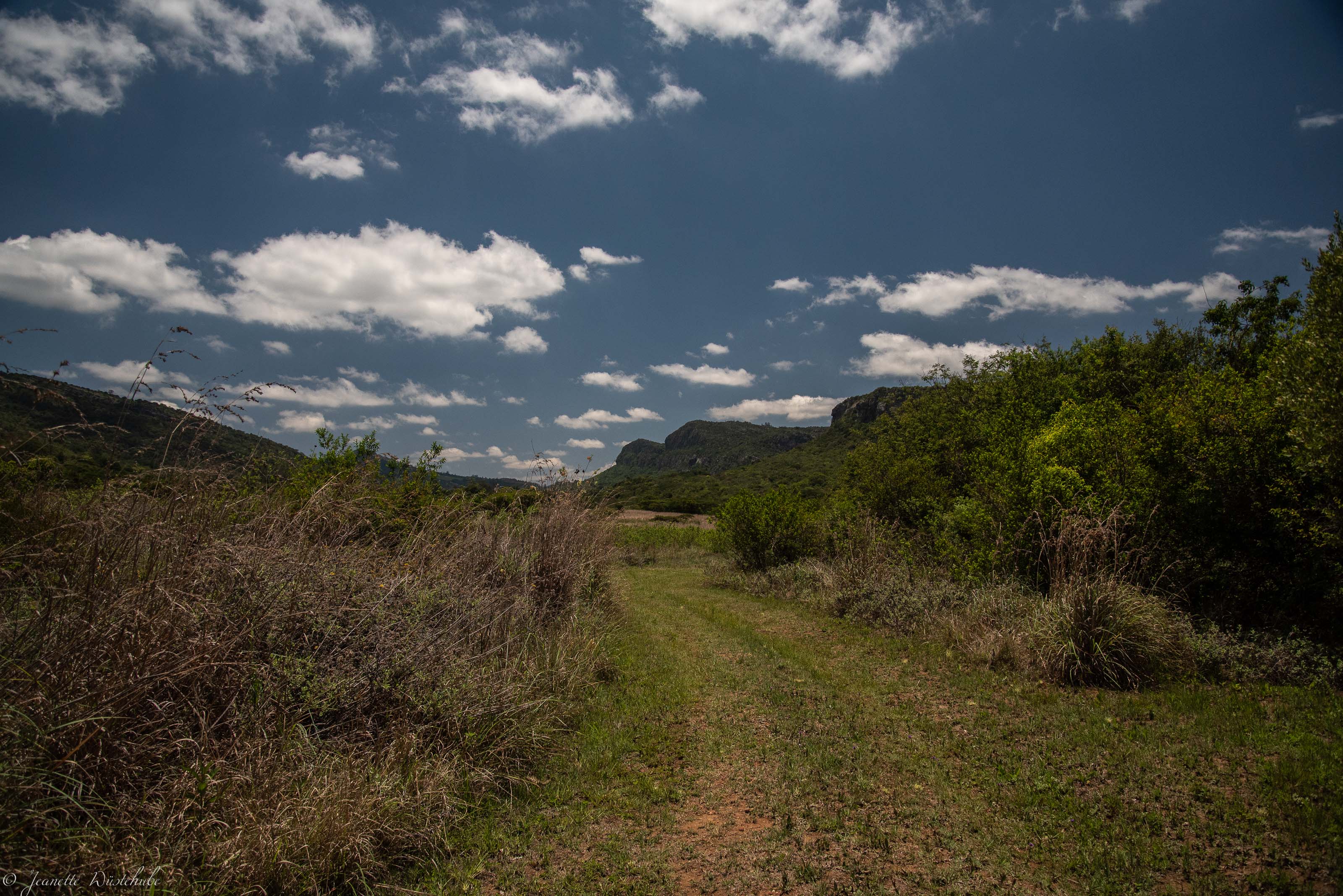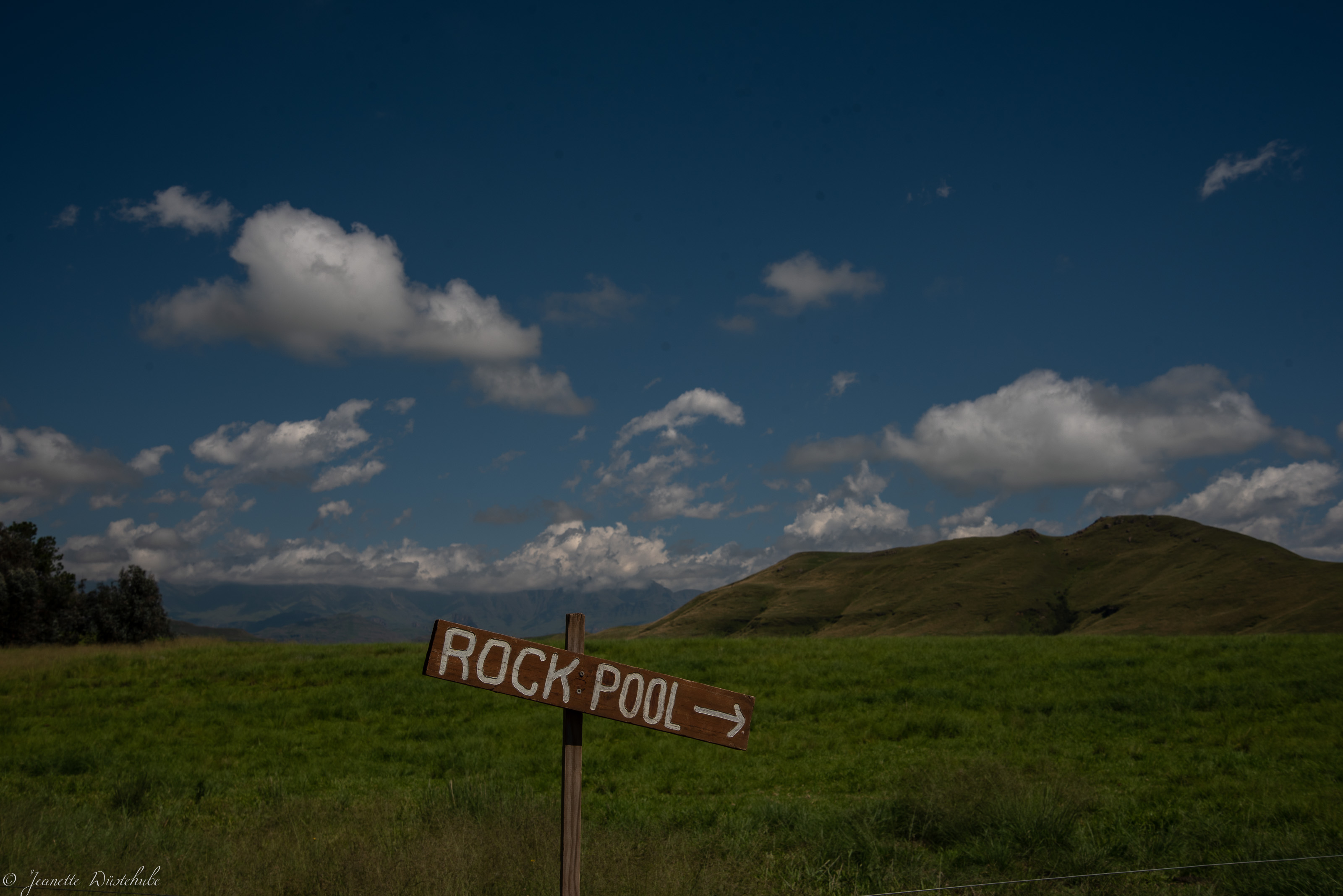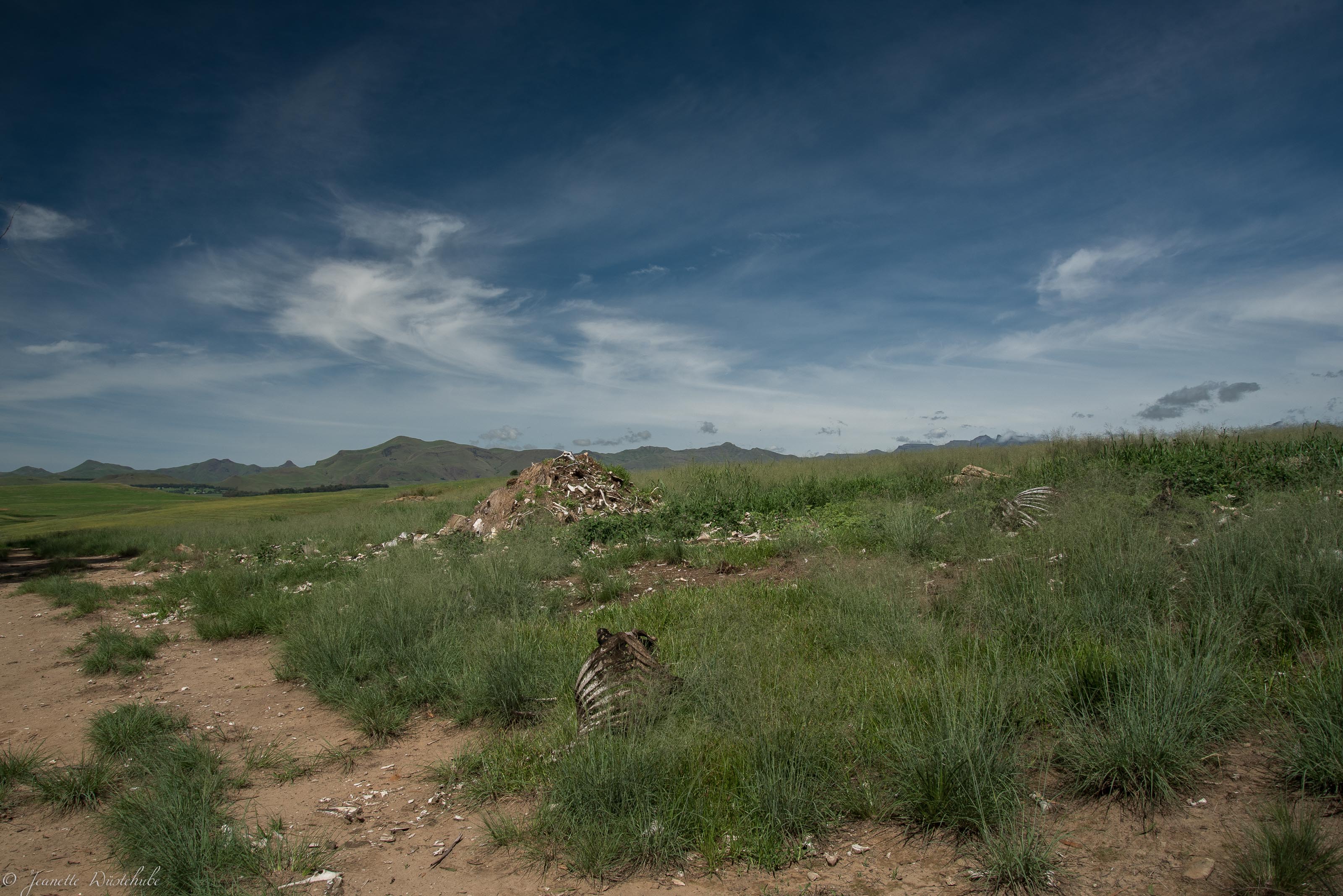 An unserem letzten Tag in Underberg war es wieder richtig schön. Wir wollten zum Geier Restaurant laufen, das sich laut Karte in der Nähe des Rock Pools befinden sollte. Wieder war kein Mensch unterwegs, aber auch kein Geier am Restaurant. Nur ein riesiger Knochenhaufen zeugte davon, dass die Tiere hier regelmäßig gefüttert wurden. In der Farm gab es eine Infobroschüre, die, wie schon in Zimbabwe, auf die rückläufigen Zahlen dieser Aasfresser hinwies.Wir liefen noch bis zu den Pferdestallungen und der Kuhweide, bevor wir umkehrten.