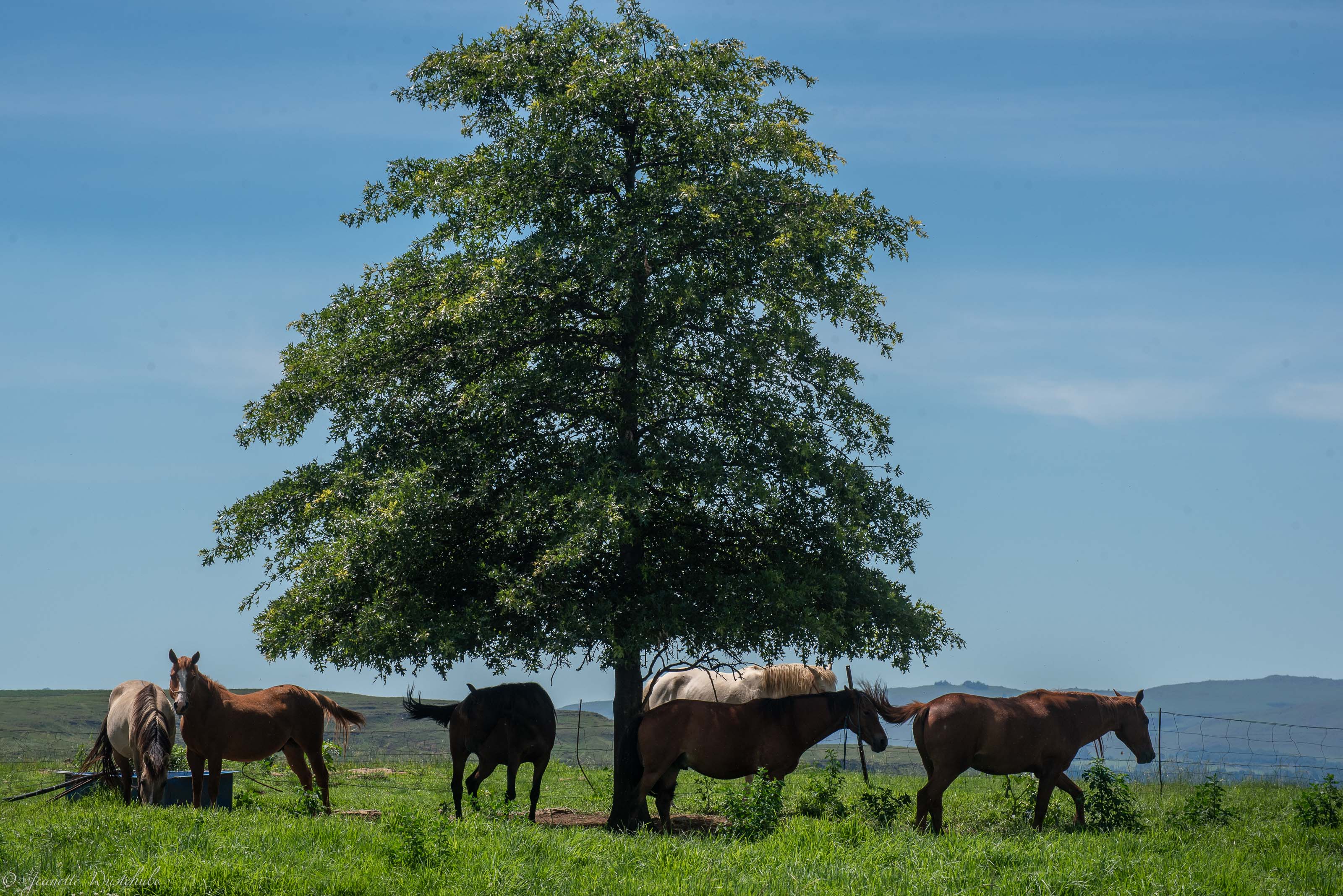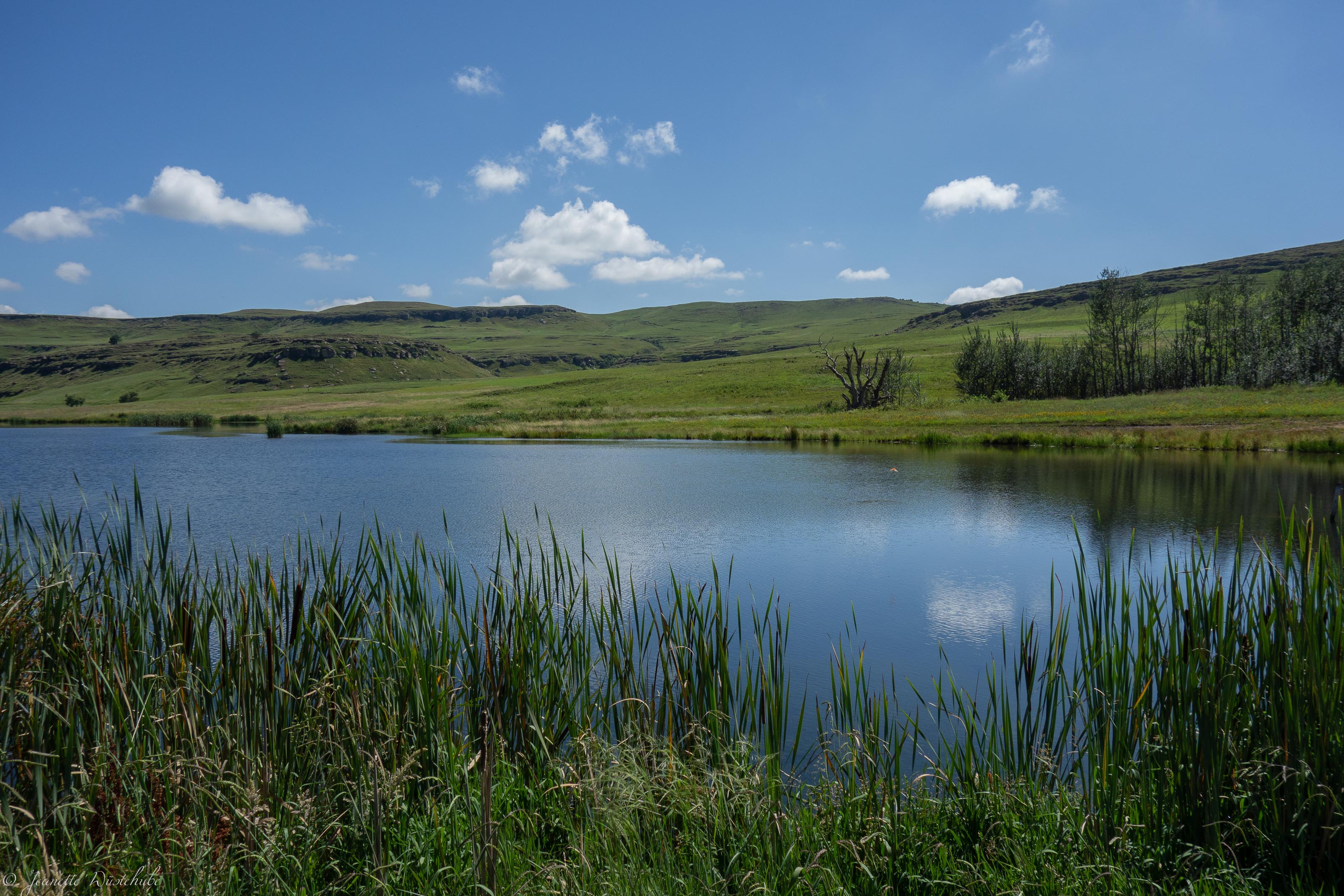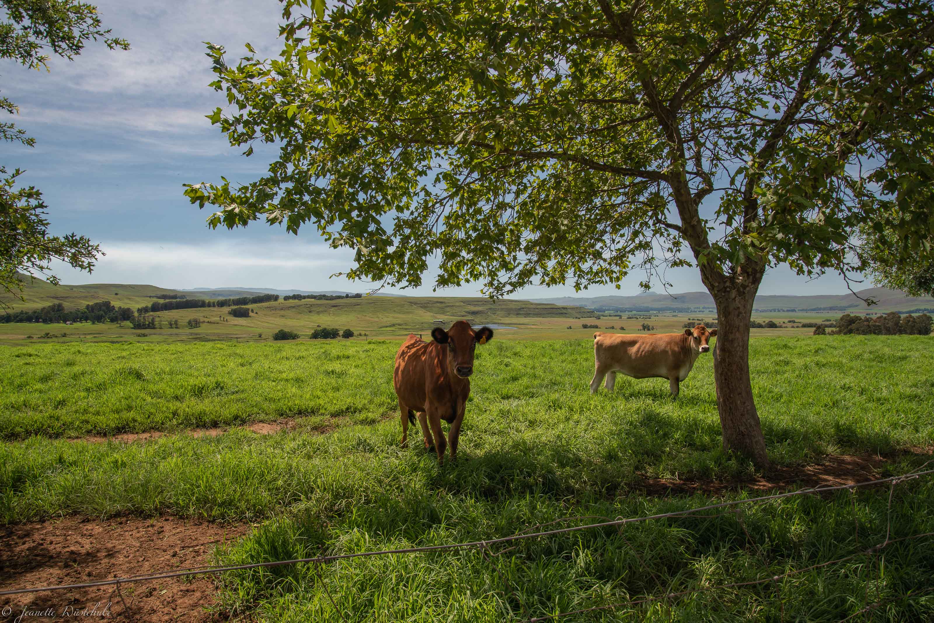 An unserem letzten Tag in Underberg war es wieder richtig schön. Wir wollten zum Geier Restaurant laufen, das sich laut Karte in der Nähe des Rock Pools befinden sollte. Wieder war kein Mensch unterwegs, aber auch kein Geier am Restaurant. Nur ein riesiger Knochenhaufen zeugte davon, dass die Tiere hier regelmäßig gefüttert wurden. In der Farm gab es eine Infobroschüre, die, wie schon in Zimbabwe, auf die rückläufigen Zahlen dieser Aasfresser hinwies.Wir liefen noch bis zu den Pferdestallungen und der Kuhweide, bevor wir umkehrten.
