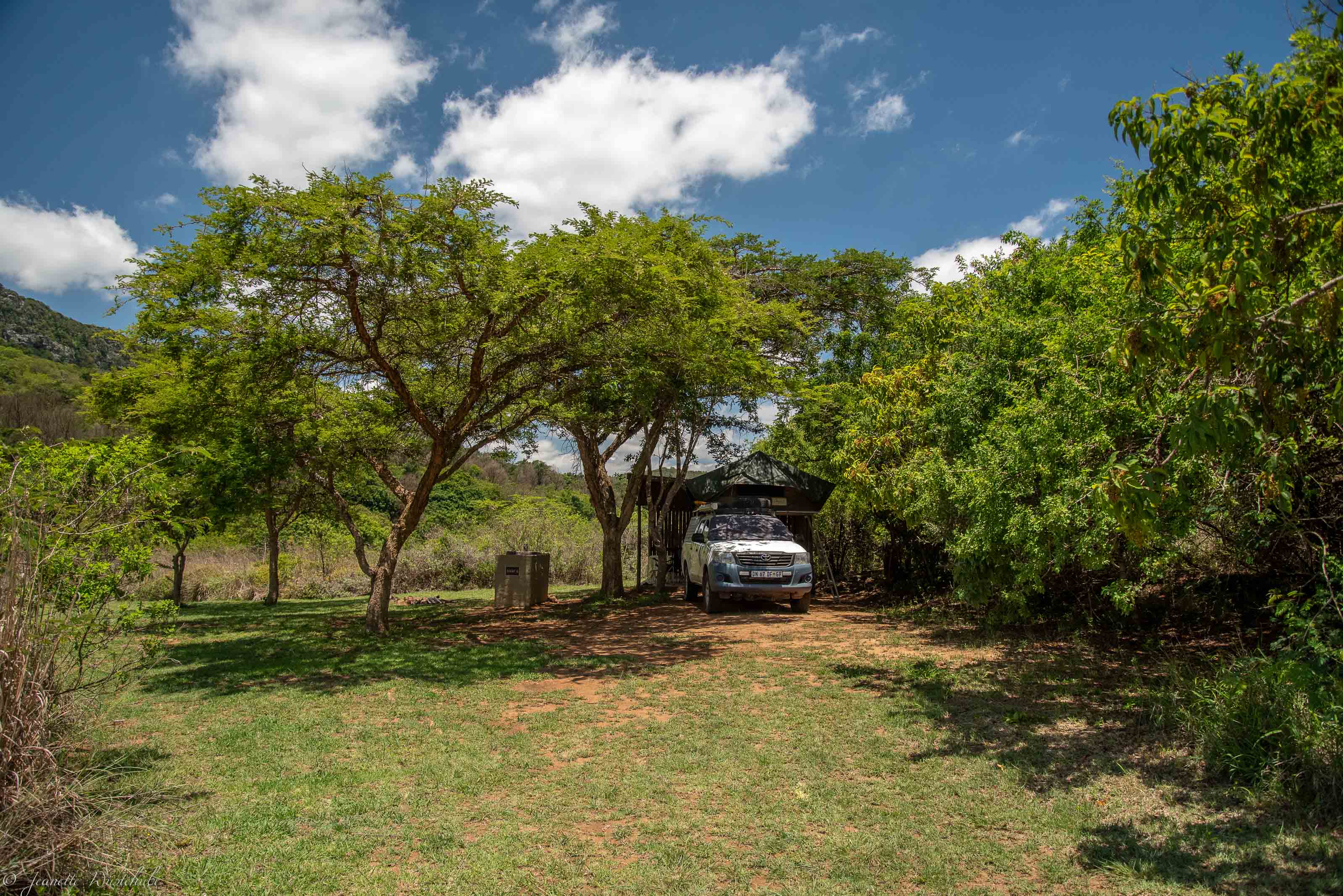 In Hluhluwe wollten wir zwei Nächte im Bonamanzi Reserve campen. Die Unterkunft hatte ich eigentlich für den Anfang unserer Tour vorgesehen, aber aufgrund der Visa-Geschichte hatten wir hier umdisponieren müssen und die Leute von Bonamanzi waren so nett einer kostenfreien Umbuchung auf einen anderen Termin zuzustimmen und hatten unseren Platz mit privater Toilette und Dusche noch für die beiden Tage, die wir angefragt hatten, frei.