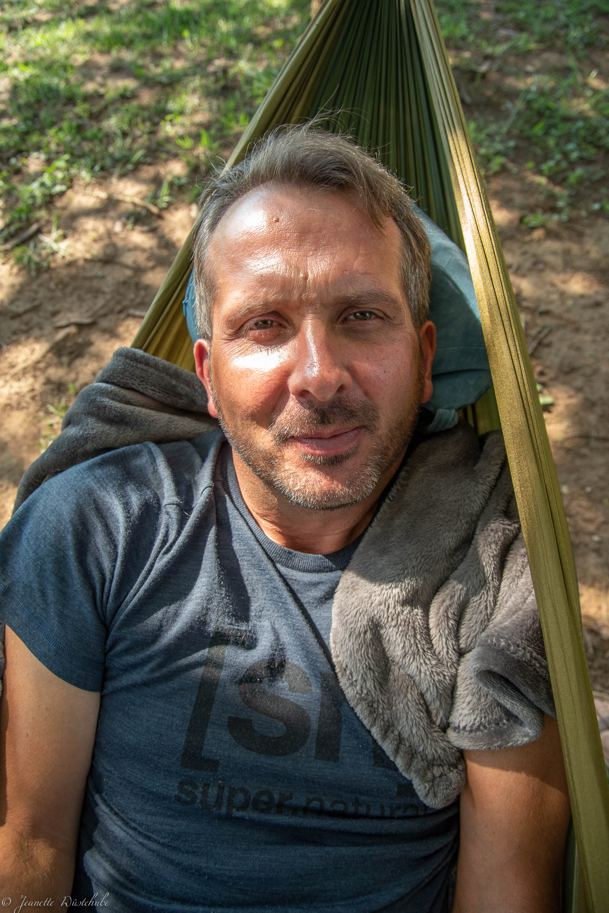 Hier sind wir also jetzt und – wie eingangs geschrieben – könnten wir es hier noch viel länger aushalten. Heute liefen wir einen der beiden Wanderwege am Fuß des Hügels, an dem sich der Campingplatz befindet. Das war nicht besonders anstrengend, weil es kaum bergauf und überwiegend durch den dichten Wald ging. Nachdem ich in der Infomappe die Seite mit den in dieser Region vorkommenden gefährlichen und sehr gefährlichen Schlangen gesehen hatte, fühlte es sich ein bisschen komisch an durch den Wald zu laufen und ich war froh, dass uns unterwegs keine Kriechtiere begegneten. Dann hatte ich Zeit für den Blog und Tom für ein Schläfchen in der Hängematte. Könnte das Leben doch so weitergehen 🙂