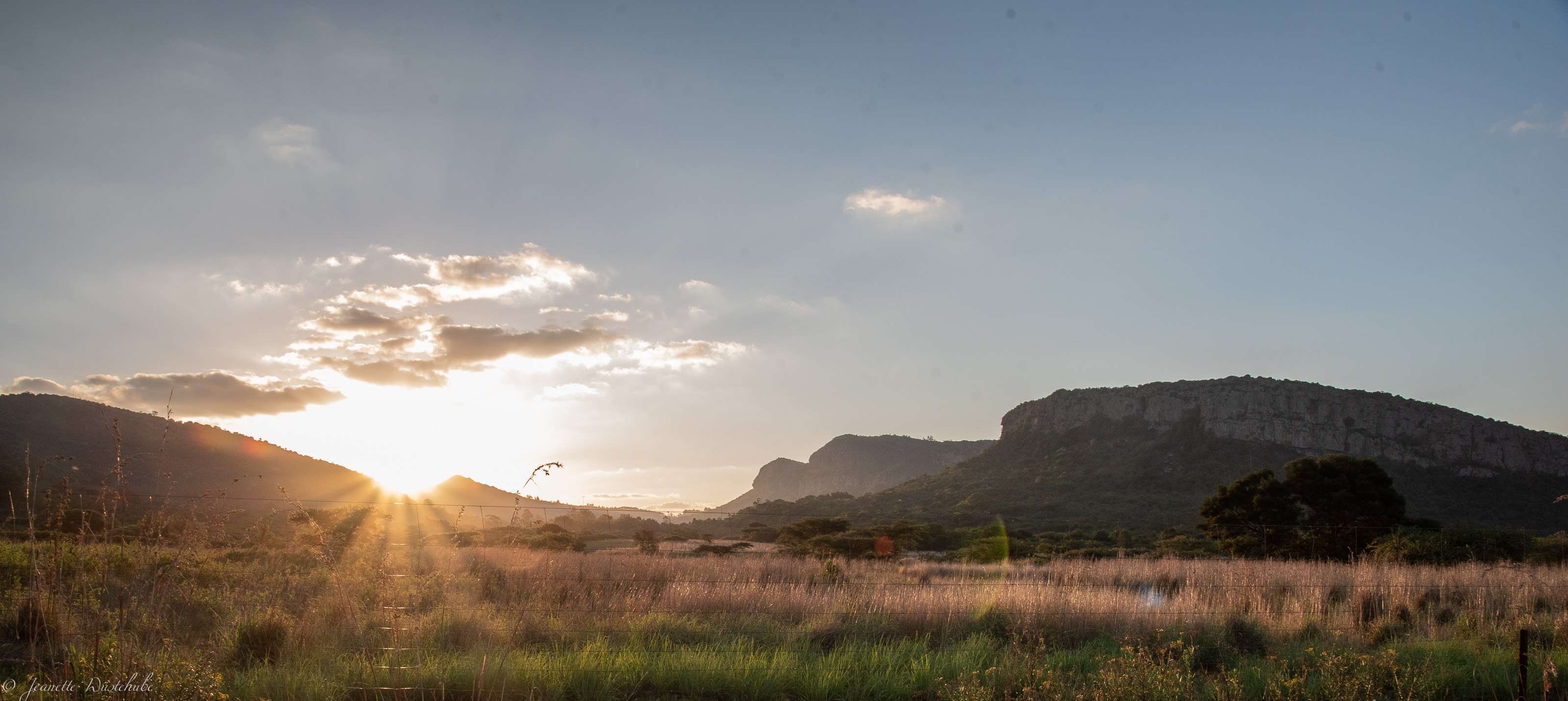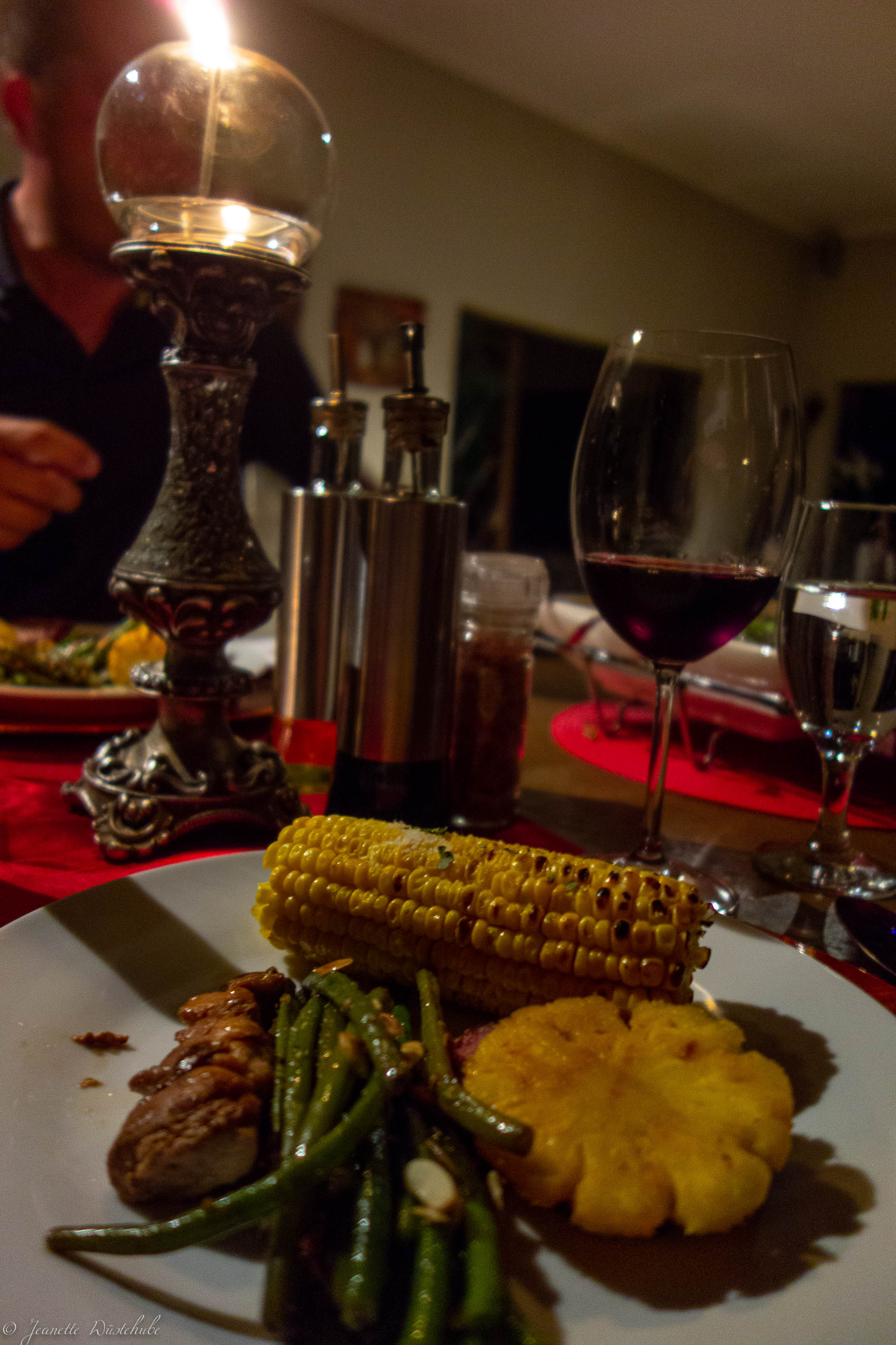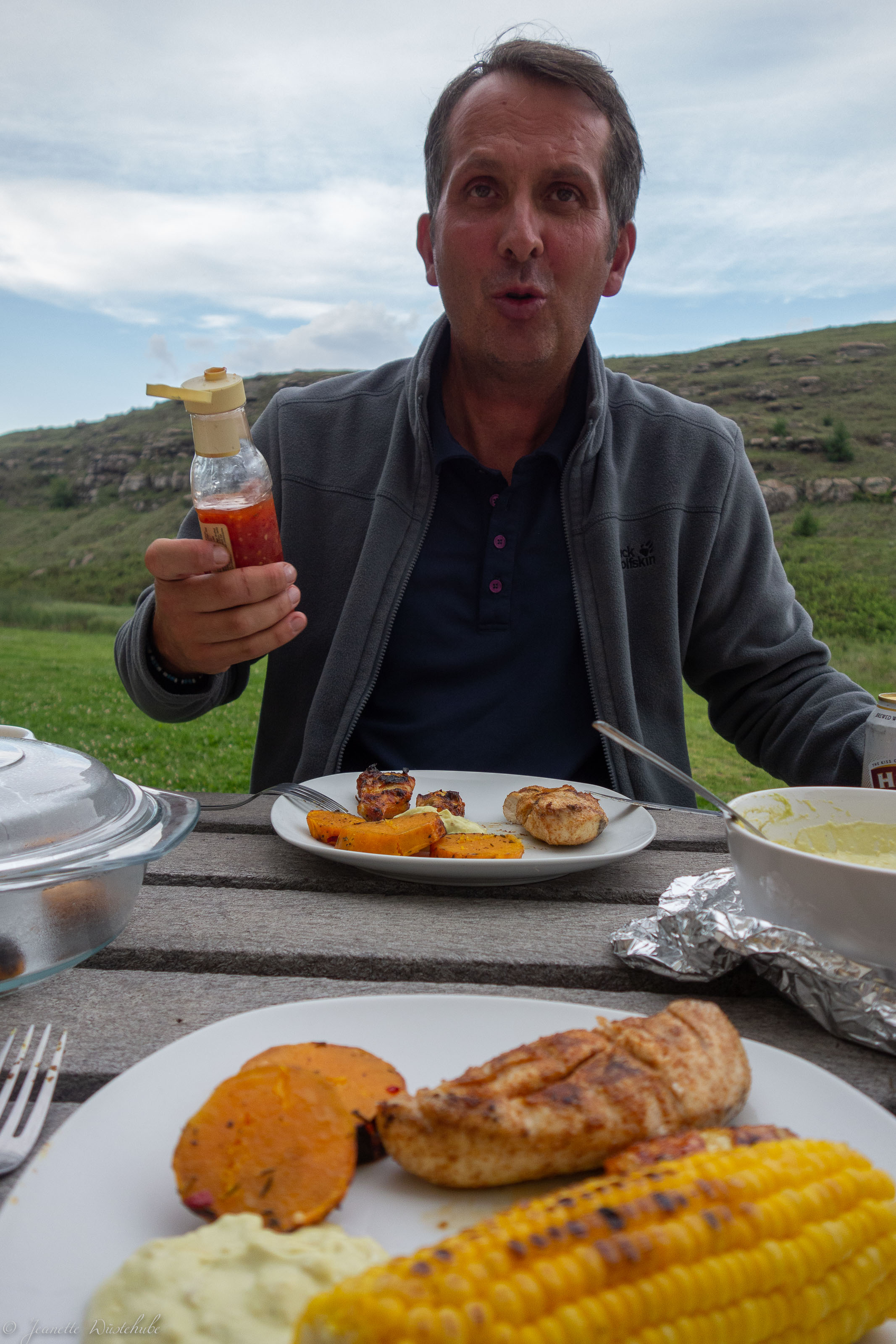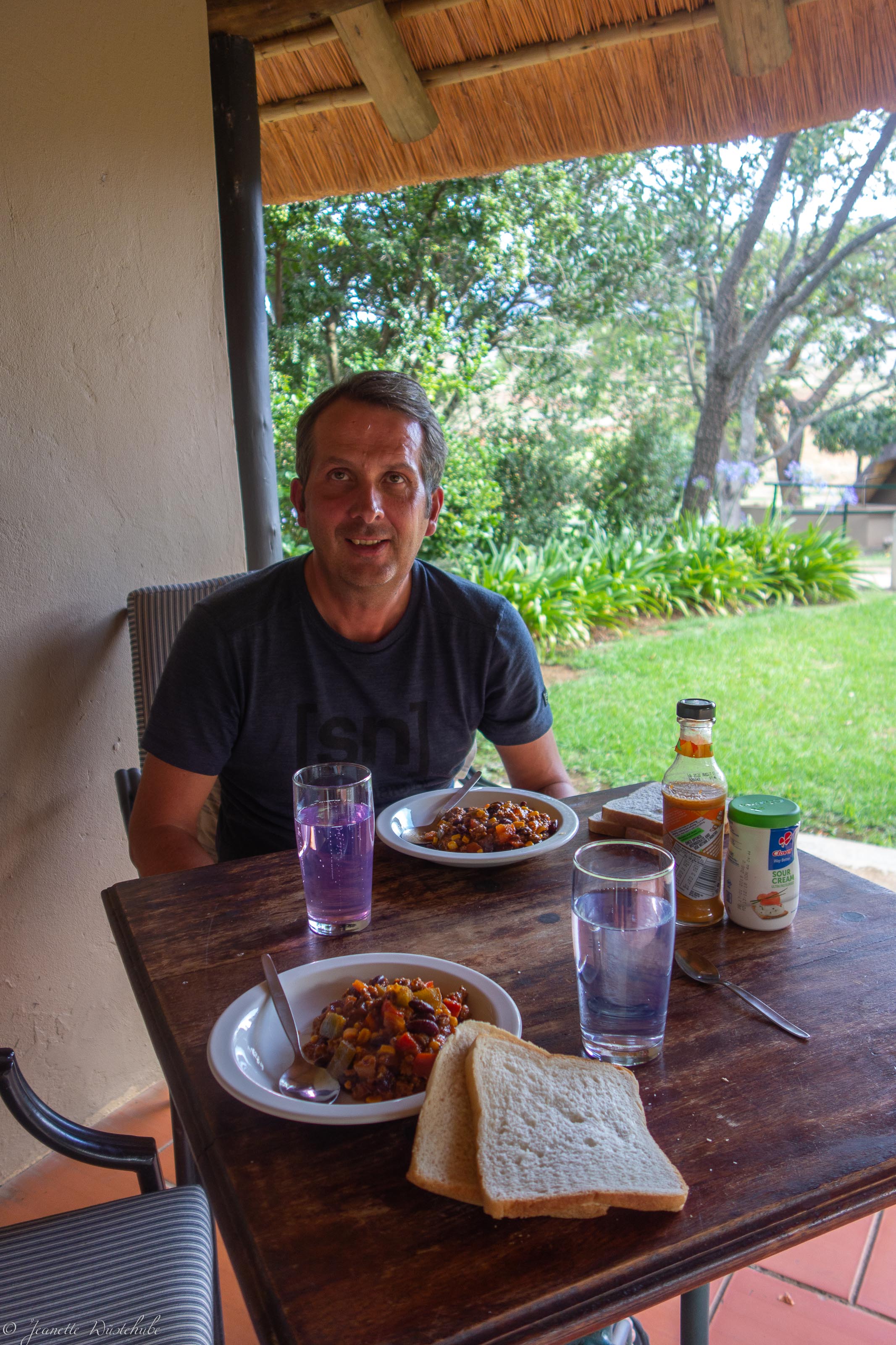 Auch am nächsten Tag ging es Tom nicht wirklich besser, trotz Salbe und Schmerztabletten. Er lief gebückt wie ein Opa. Auf einen letzten Wanderausflug in die Berge mussten wir also verzichten. Noch ein Grund wiederzukommen 🙂 Wir verbrachten einen ruhigen Tag im Ressort und machten ein letztes Braai mit Boerewors, Mais und Salat. Wenn wir heimkommen ist erst mal länger nicht an Grillen zu denken… wobei Wintergrillen auch nett sein kann, denke ich…