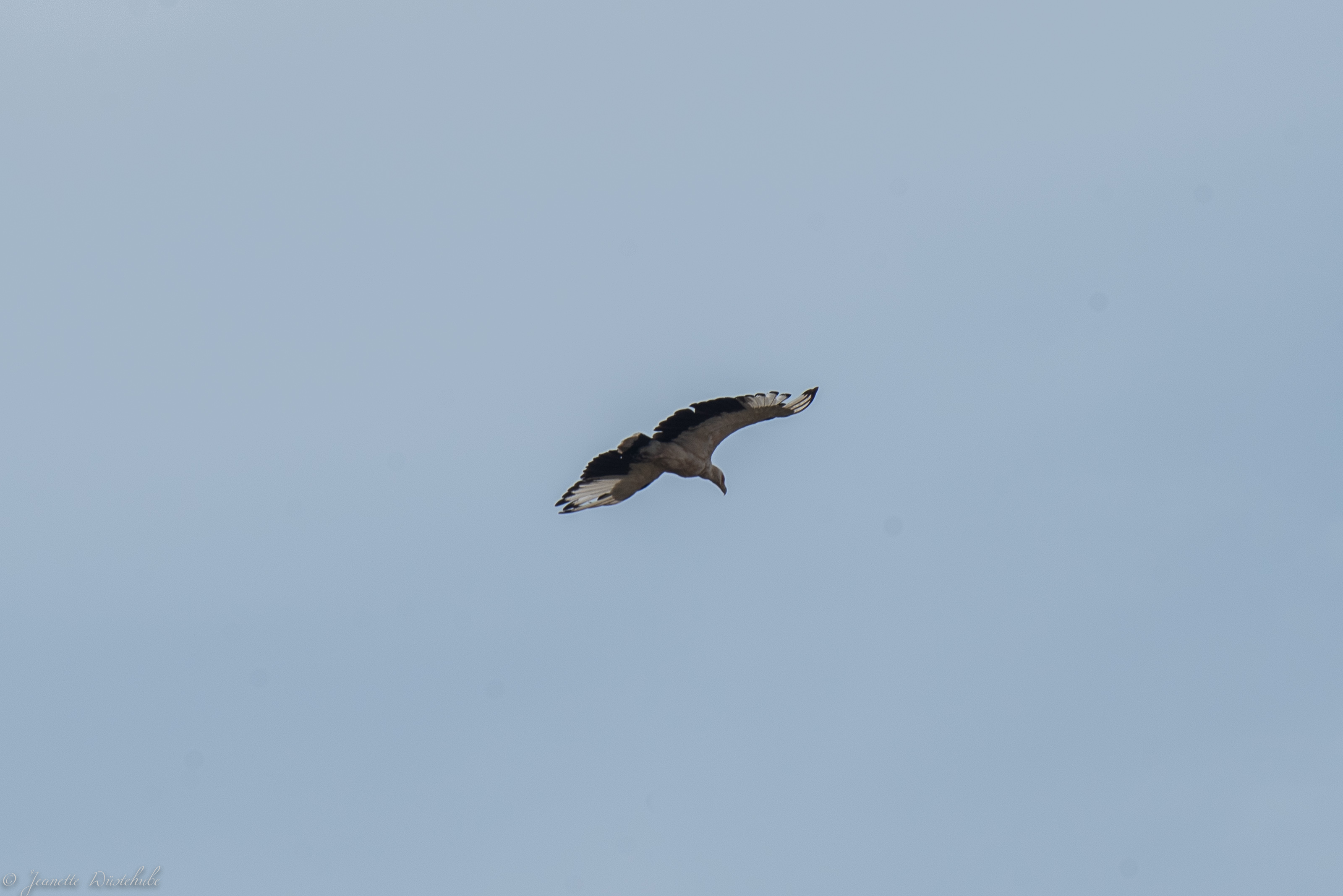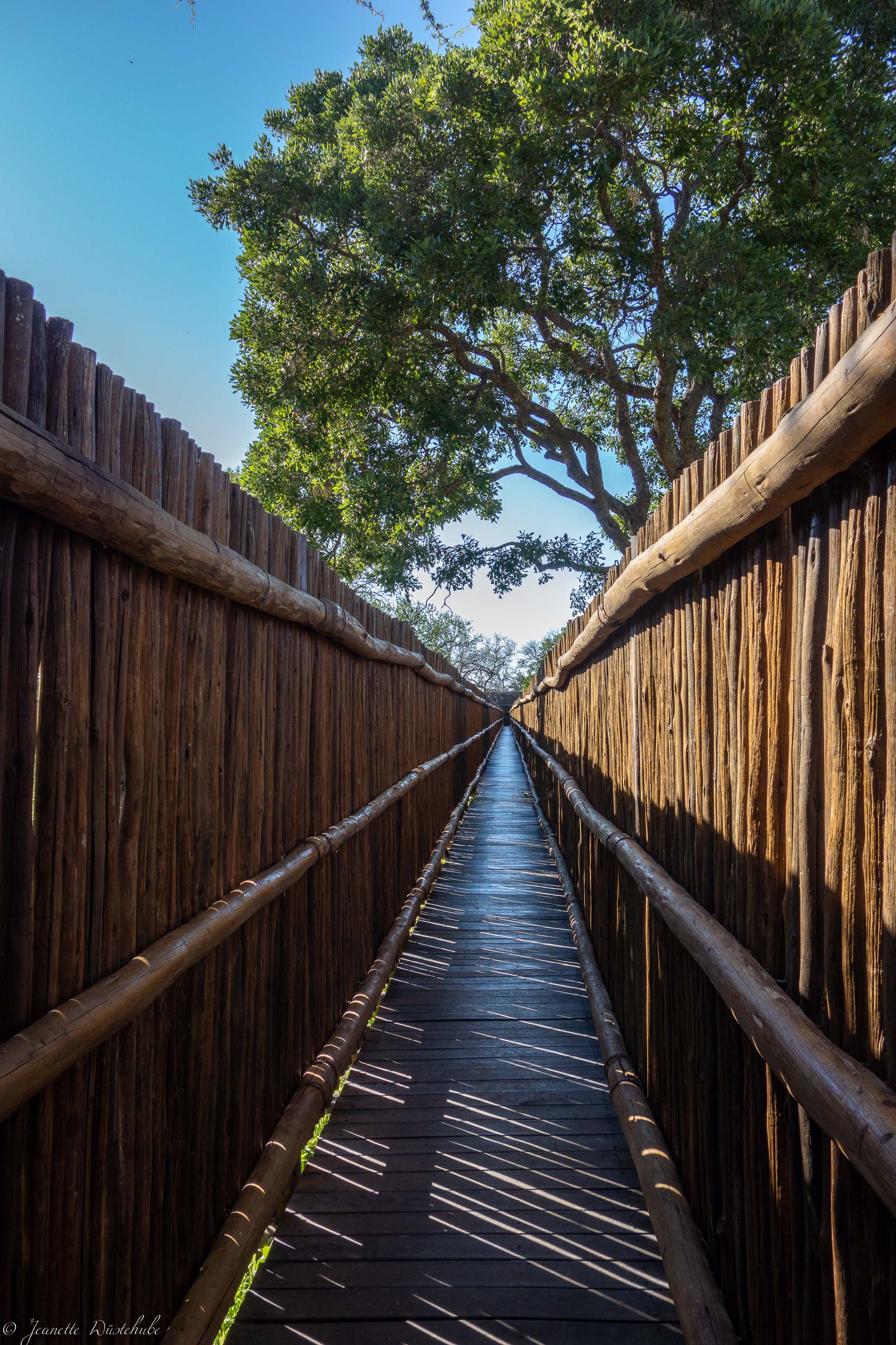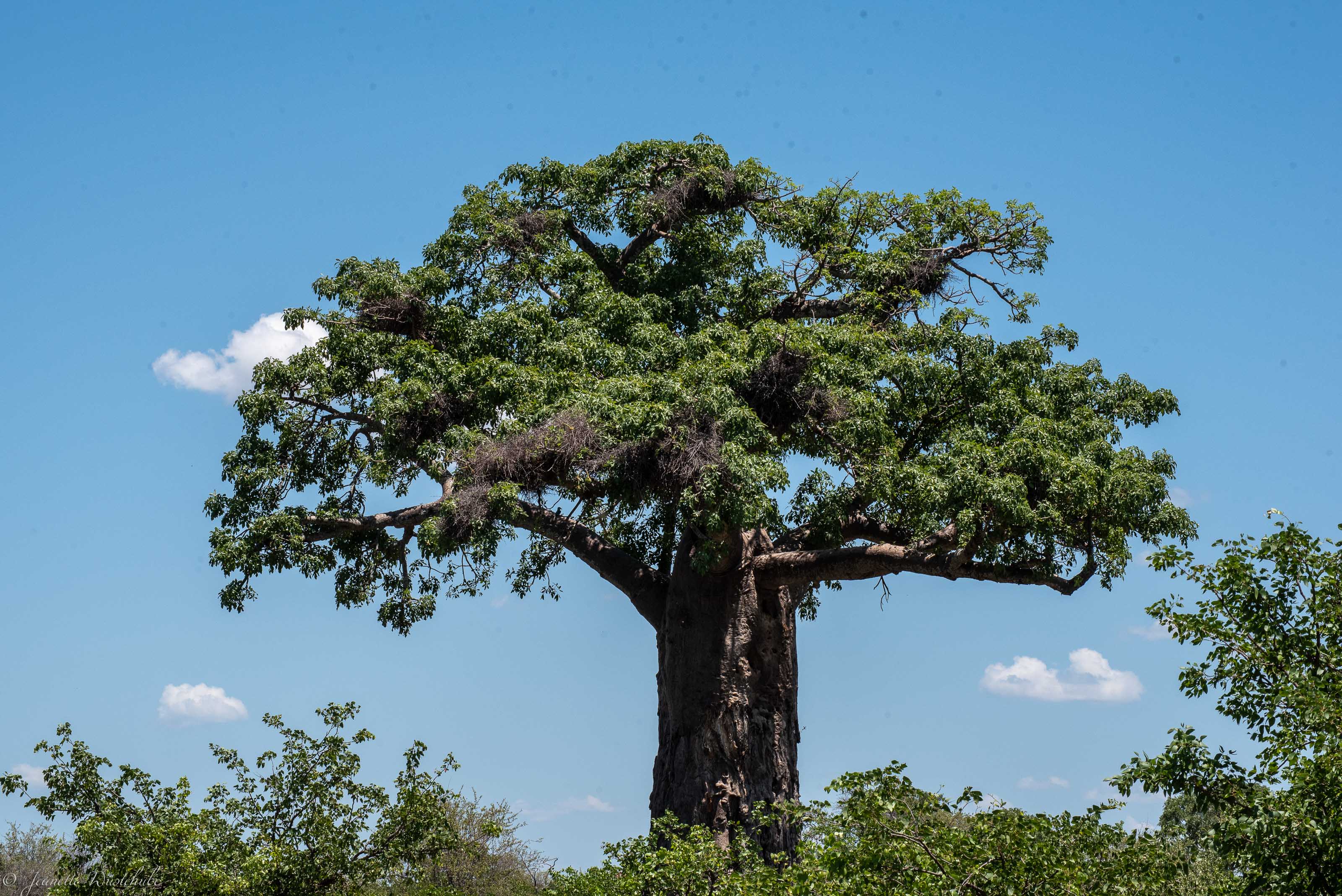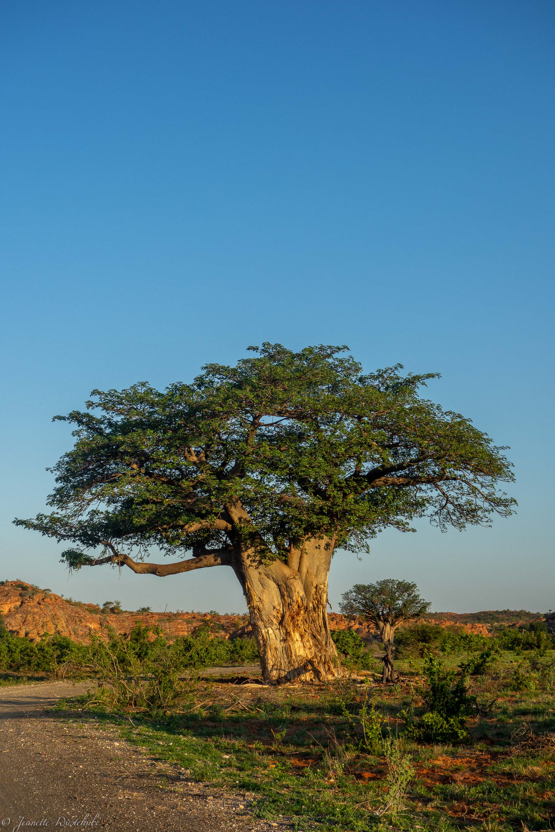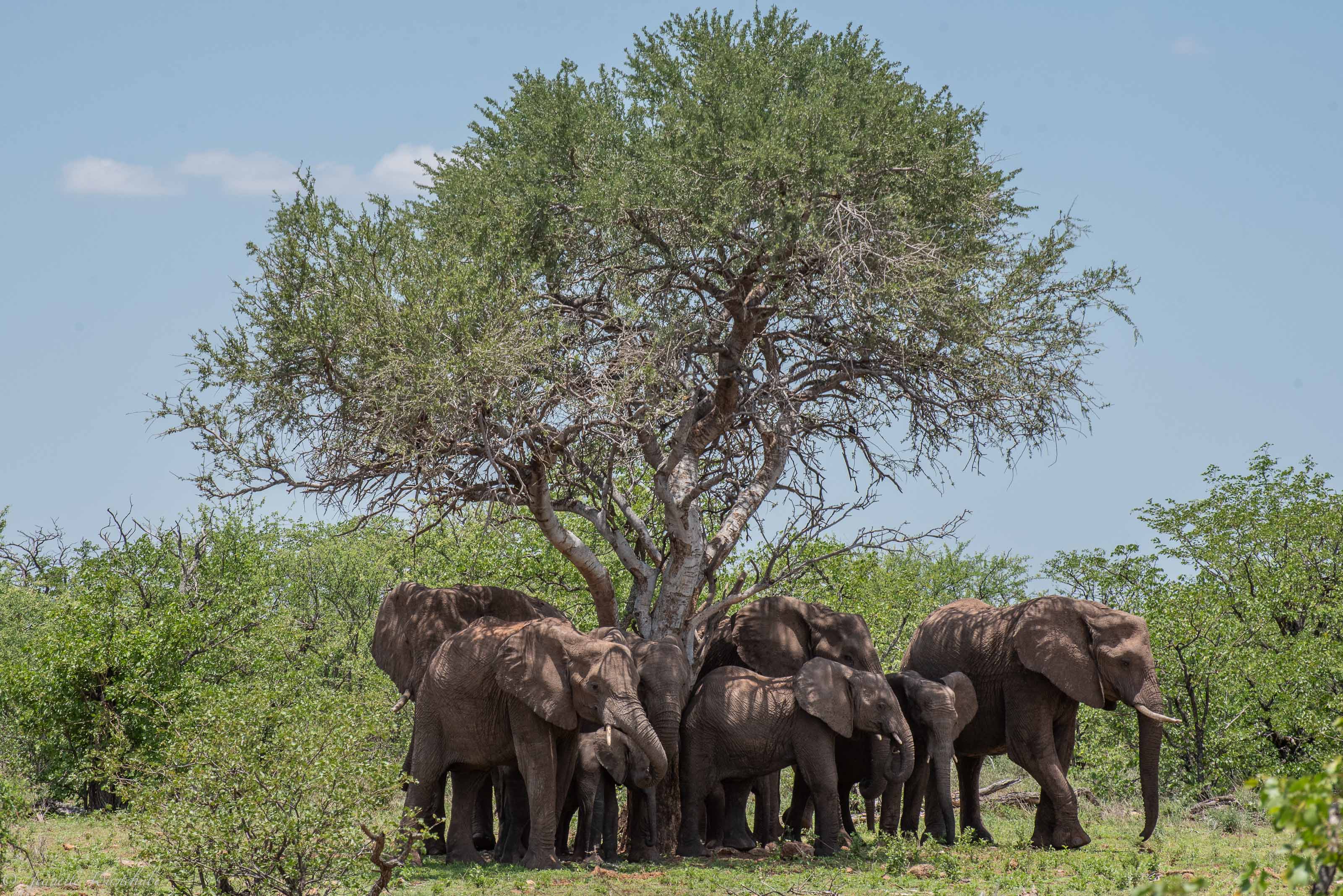 Die Nächte sind in der Regel ja schon kurz, weil viele Südafrikaner mit der Sonne aufstehen und man kurz nach Sonnenaufgang auch die Camps verlassen und auf Gamedrive gehen kann. Außerdem wird es, ist die Sonne erst mal da, schnell warm im Zelt und so steht man von alleine spätestens um 7 Uhr auf. In Mazhou war es erst ab 6 Uhr erlaubt loszufahren, Sonnenaufgang war etwa 30 Minuten früher. Unsere direkten Zelt-Nachbarn waren ruhige Frühaufsteher, wurden aber von einem anderen Camper bereits um 4:30 Uhr besucht, der diese ohne Rücksicht auf die übrigen Campinggäste, in voller Lautstärke vollquatschte. In so einem Zelt hat man ja leider keinen Schallschutz und entsprechend wird man dann schnell wach, wenn es neben einem laut ist. Außerdem hatte es auch in der Nacht leider nicht abgekühlt. Wir schliefen ohne Decken und waren schon beim Aufwachen nassgeschwitzt. Also konnten wir um 4:30 Uhr auch nicht mehr schlafen und standen zeitig auf. Nach und nach verließen die meisten anderen Gäste das Camp und erkundeten die Gegend. Wir schlossen uns nach dem Frühstück an. Zuerst fuhren wir zu einer an einer großen Wasserstelle gelegenen Hide, von der aus man gut Vögel und Krokodile beobachten konnte. Danach drehten wir eine Runde durch den westlichen Teil, auf der wir einige Elefanten sehen konnten. Einer rannte los, als er unser Auto kommen sah. Scheinbar sind hier die Tiere noch nicht so sehr an Autos gewöhnt wie in anderen Parks. Dann fuhren wir zurück zum Haupteingang um zu entdecken, was es im östlichen Teil zu sehen gab. Der Osten des Mapungubwe ist größer und bietet mehr Straßen für Erkundungsfahrten. Das Gebiet ist deutlich felsiger und hat einen ganz anderen Baumbestand. Man sieht viele der eindrucksvollen Baobabs, dazu gibt es Busch- und Grasland. Außerdem kann man an einigen Stellen aussteigen und ein bisschen laufen, was bei den vielen Autofahrten eine willkommene Abwechslung ist. Vom Baumwipfelpfad aus, der bis an den Limpopo und weiter an diesem entlang führt, hat man einen schönen Blick auf den Fluss und man kann sich auf den beschatteten Bänke ausruhen oder einen Sundowner zu sich nehmen.