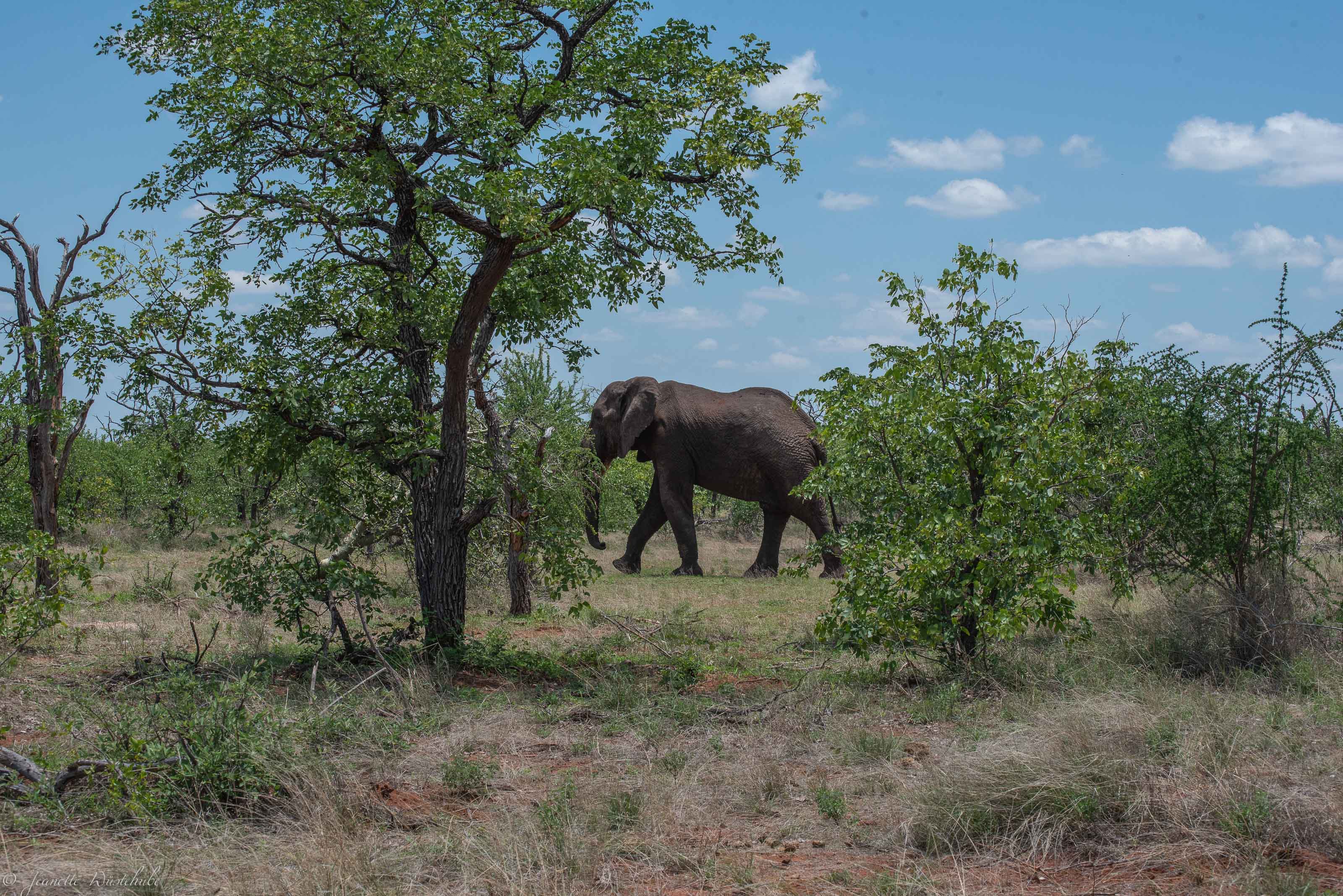 Vom Mapungubwe Nationalpark zum nördlichen Pafuri Gate des Krüger Nationalparks ist man etwa 2 Stunden unterwegs und die Vorräte kann man gut im Städtchen Musina aufstocken. Die großen Lebensmittelketten sind hier vertreten. Wir hatten im Krüger je zwei Nächte in Punda Maria und im Tsendze Rustic Camp, sowie jeweils eine Übernachtung im Tamboti Tented Camp und im Crocodile Bridge Restcamp gebucht. Der Norden des Parks ist deutlich ruhiger. Hier gibt es weniger Übernachtungsgäste, aber die Region ist auch nicht so tierreich wie der Süden. Da gerade die Sommerferien in Südafrika begonnen hatten und wir sowieso schon etwas Sorge hatten, dass die Zahl der Touristen uns möglicherweise erschlagen würde, waren wir ganz froh, im Norden zu starten. Auf dem Campingplatz galt wieder first come first serve und wir hatten Glück noch einen Platz zu finden mit Stromanschluss für unseren Kühlschrank. Fast jeder Platz war belegt und es waren kaum ausländische Touristen da. Auf der Infotafel stand, dass es 50 Plätze seien, daneben gibt es noch Bungalows und Tented Camps, so dass hier in der Hauptsaison gut mal über 200 Menschen übernachten können. In Punda Maria gibt es einen gut sortierten Shop, ein kleines Restaurant, einen Laundromat, eine Hide und einen Swimmingpool. Wir kauften eine neue Straßenkarte für den Park, in der auch Strecken von den verschiedenen Camps aus empfohlen wurden, die man jeweils morgens oder zum Nachmittag hin fahren soll und ein Verlängerungskabel für den Kühlschrank. Bei der Einfahrt hatten wir gewettet, welches Tier wir als erstes sehen würden. Der Verlierer musste alleine spülen und abtrocknen an dem Tag. Tom wettete auf Impala, ich auf Zebra. Die hübschen Antilopen waren das erste Tier, das wir im Krüger entdeckten, also hatte ich am Abend Spüldienst. Auch Elefanten, Zebras und Büffel liefen uns über den Weg und bevor wir nach dem Nachmittags Game Drive zum Camp zurückkehrten hatten wir noch das Glück kurz einen Leoparden zu sehen. Er war aber schnell wieder im Busch verschwunden. Trotzdem sind das immer glückliche Momente, ein so seltenes und scheues Tier vor die Augen zu bekommen.