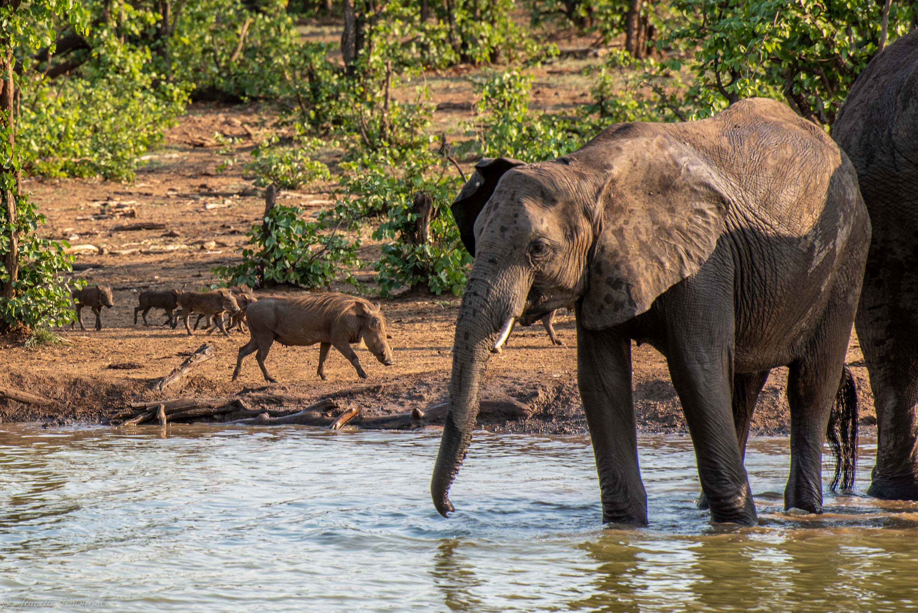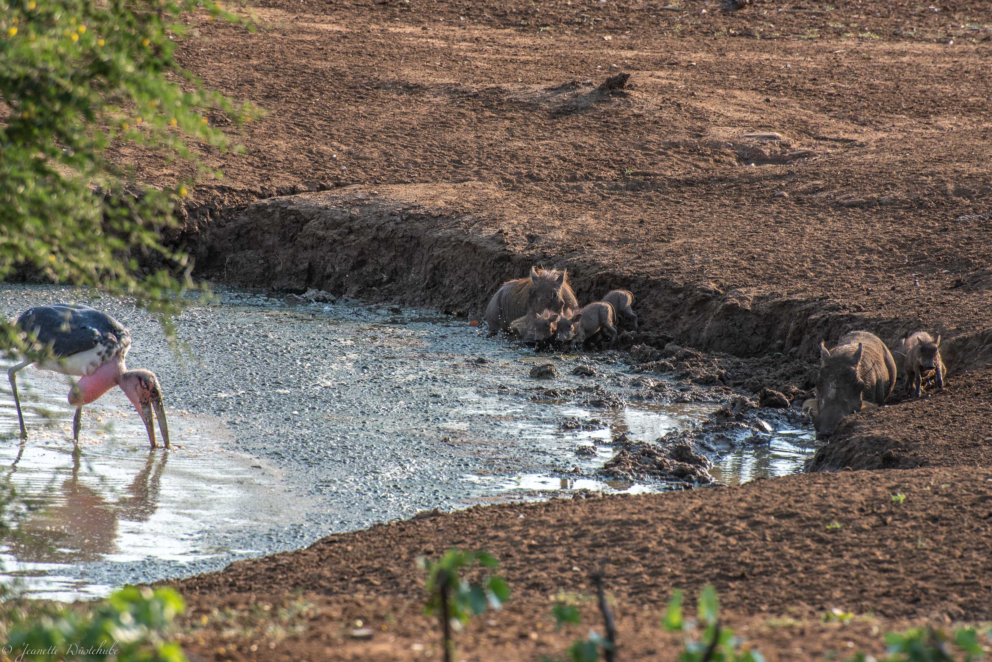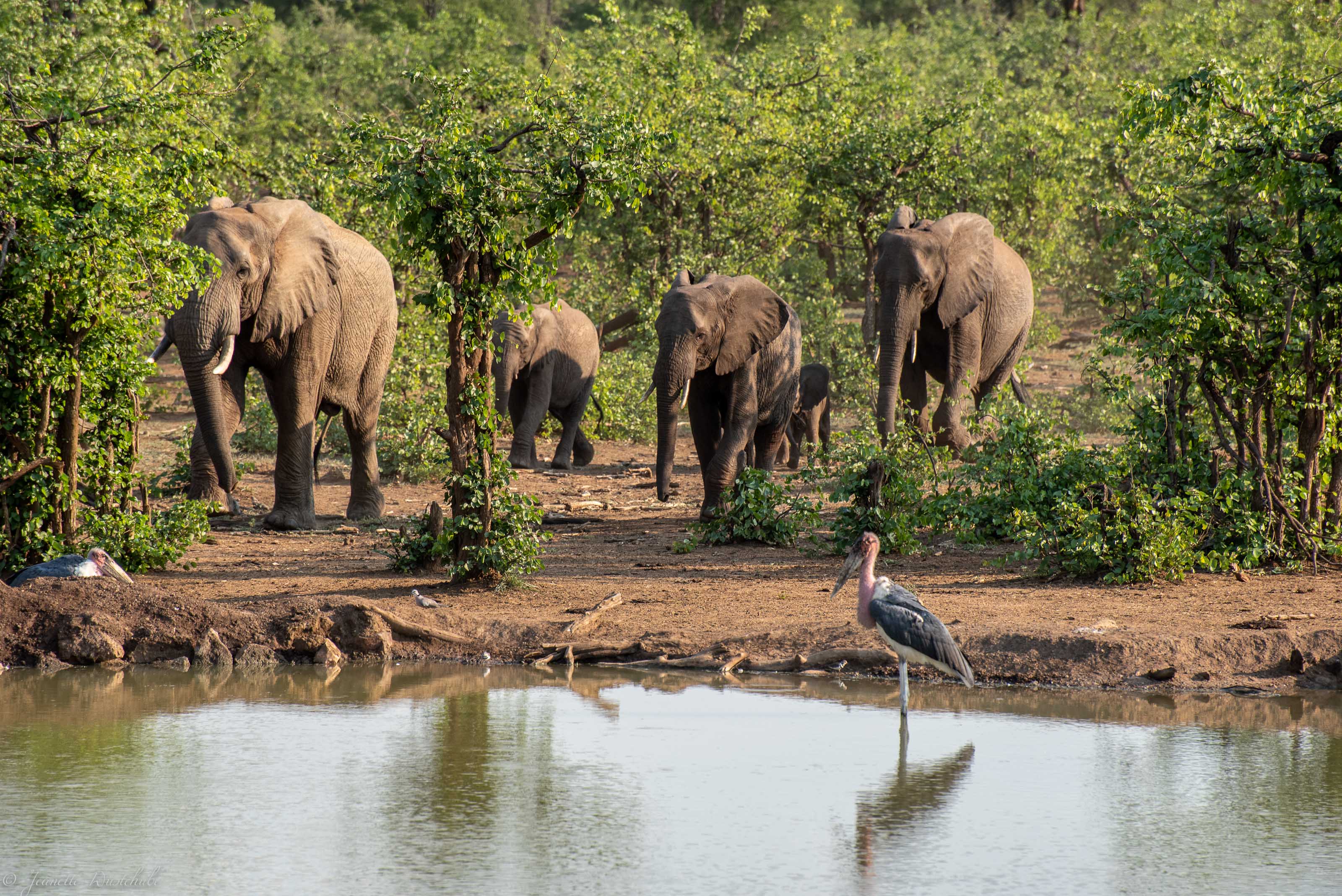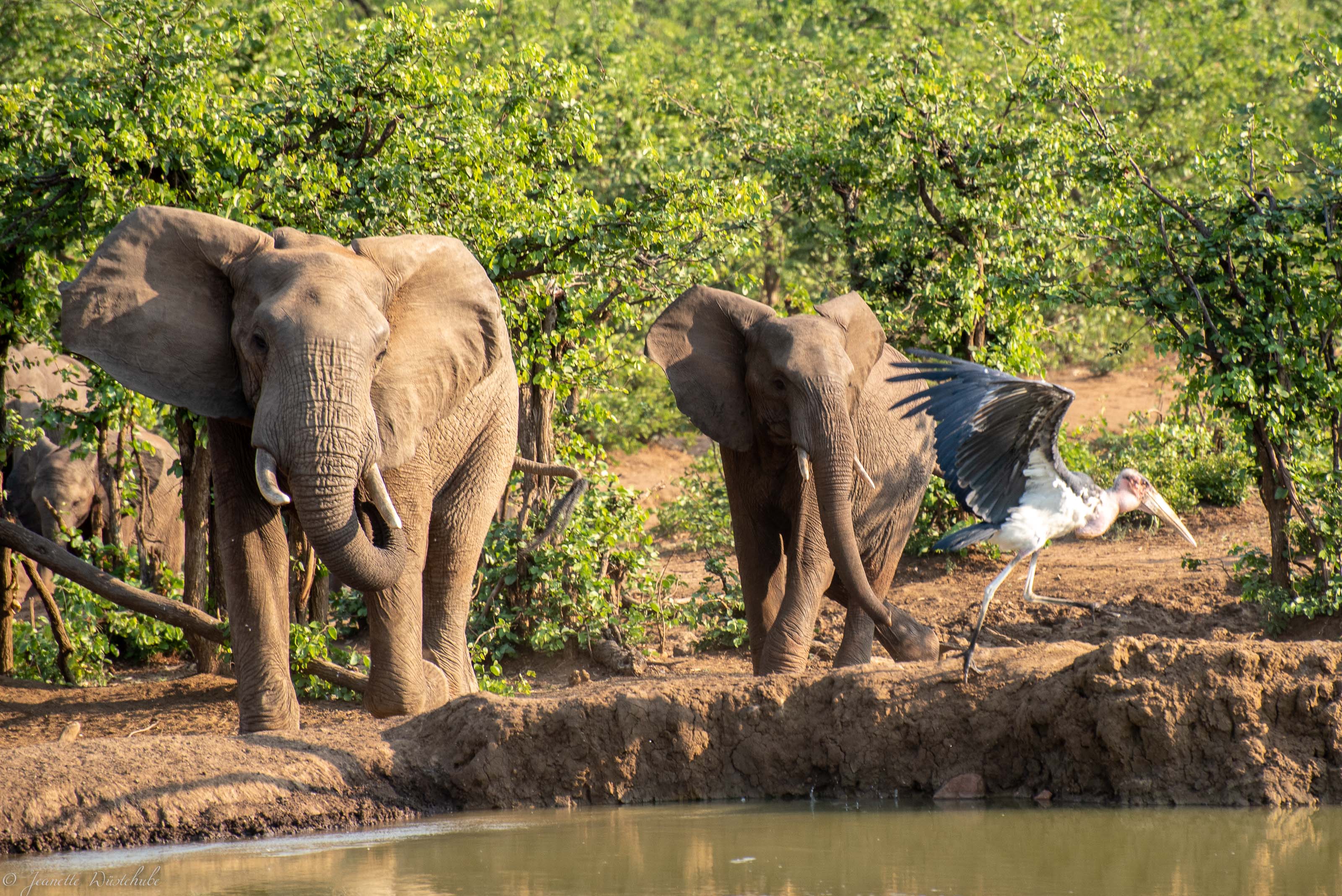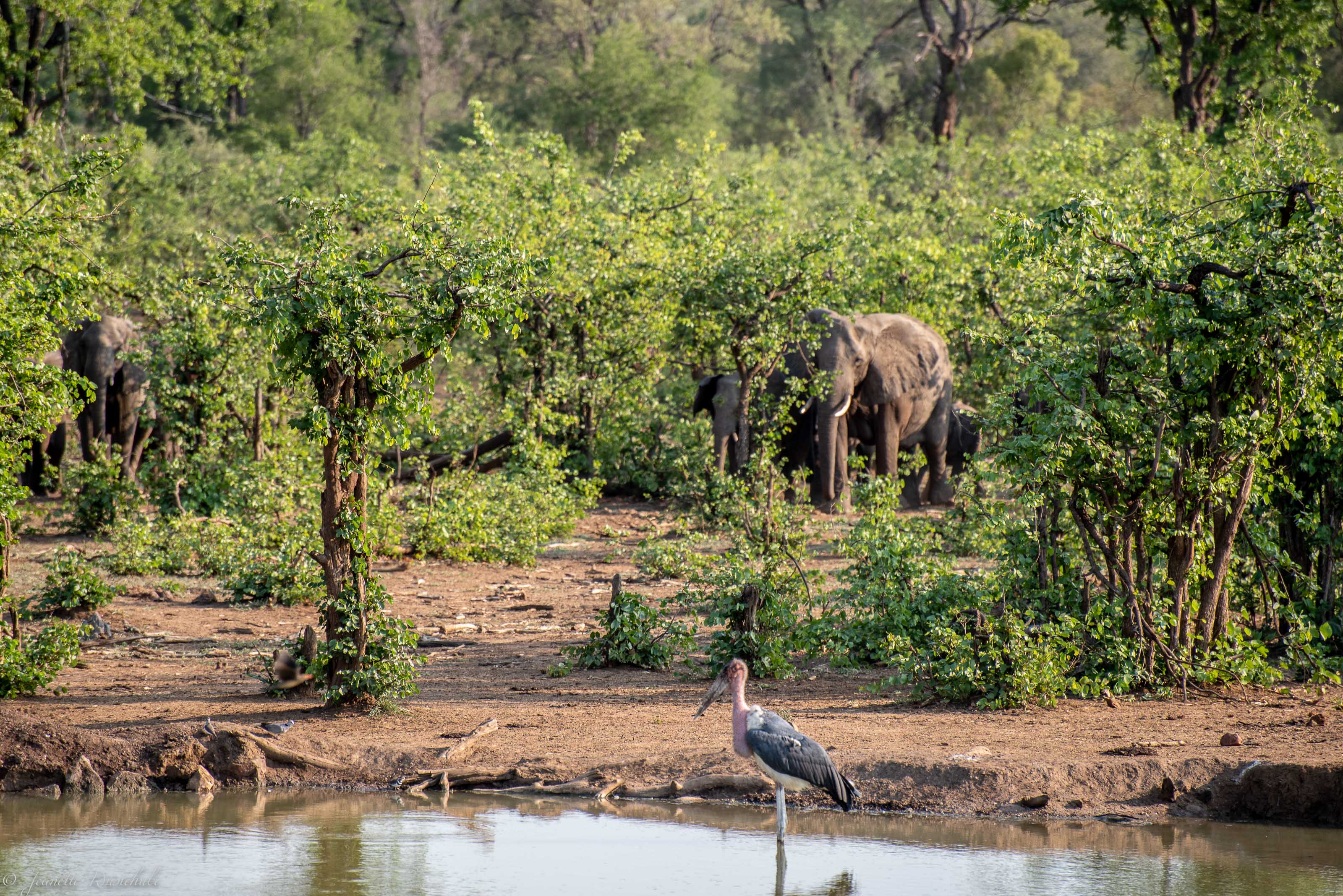 Am unserem zweiten Abend in Punda Maria setzten wir uns in die Hide. Marabus und einige Antilopen kamen, um zu trinken, später auch eine Warzenschwein-Familie und Elefanten mit Jungtieren, was meiner Meinung nach das goldigste ist, was die Tierwelt zu bieten hat. Die Babys sind so richtig verspielt. Einer der jüngeren Elefanten streckte beim Trinken sein Bein wie eine Ballerina ab. Das sah so witzig aus.