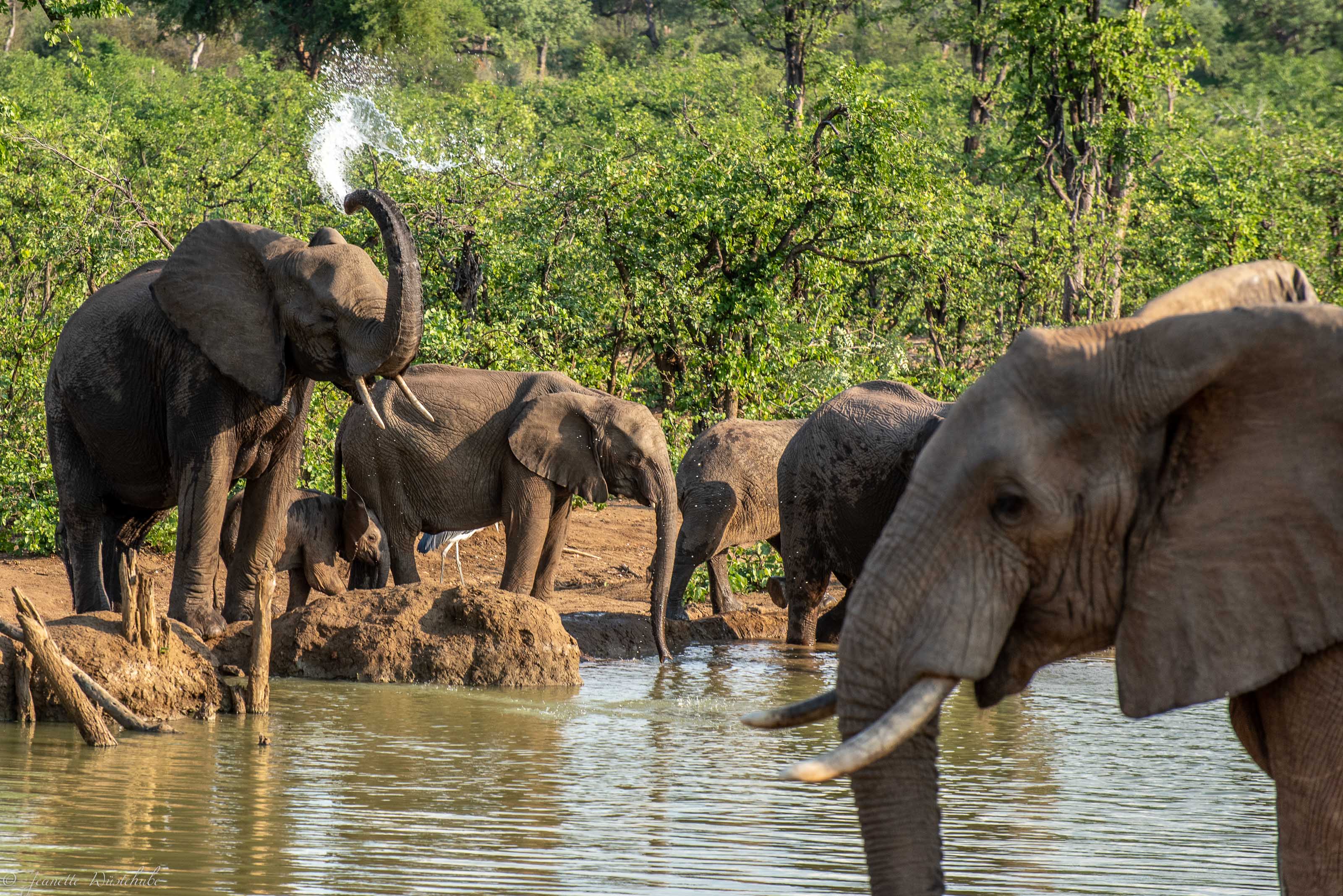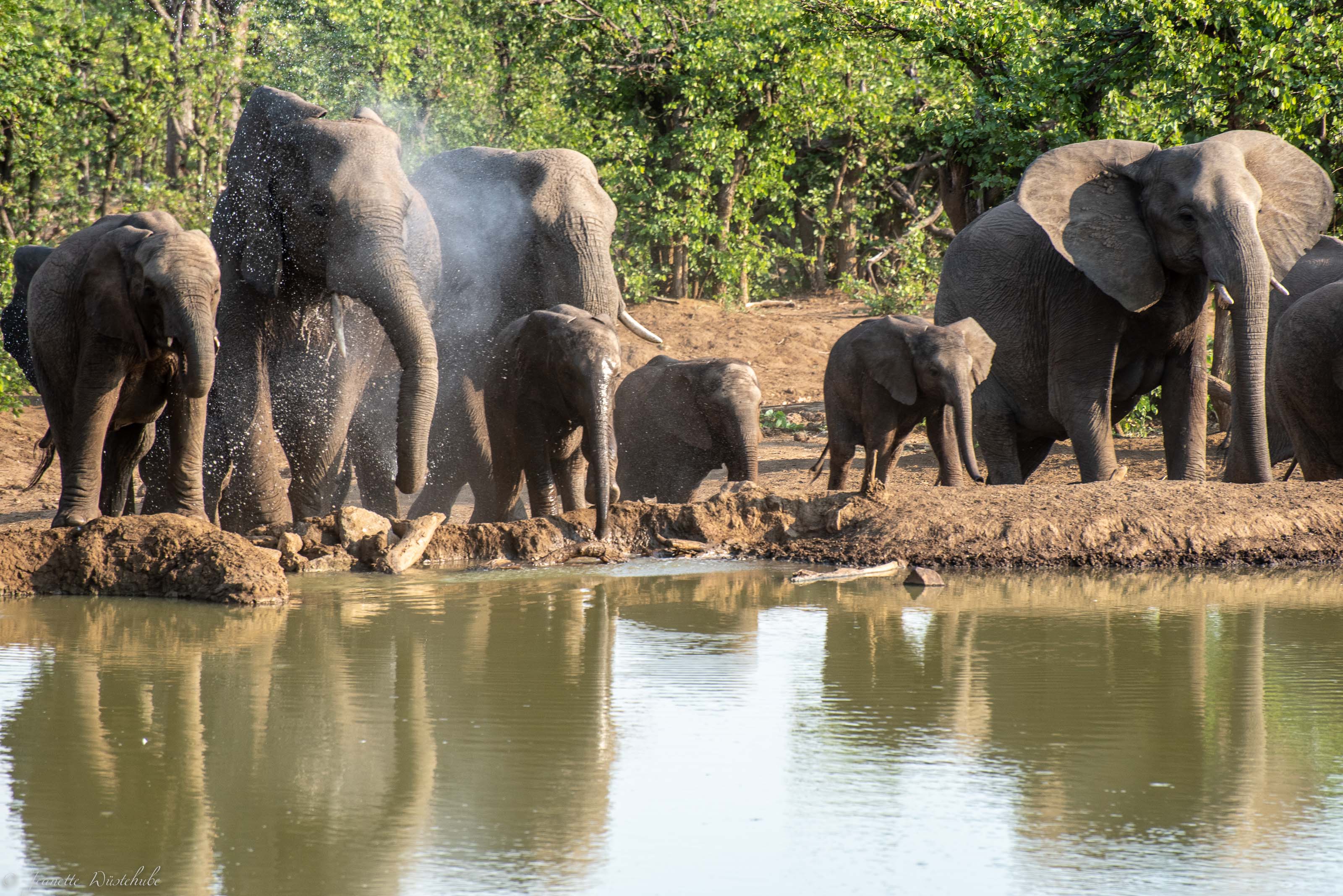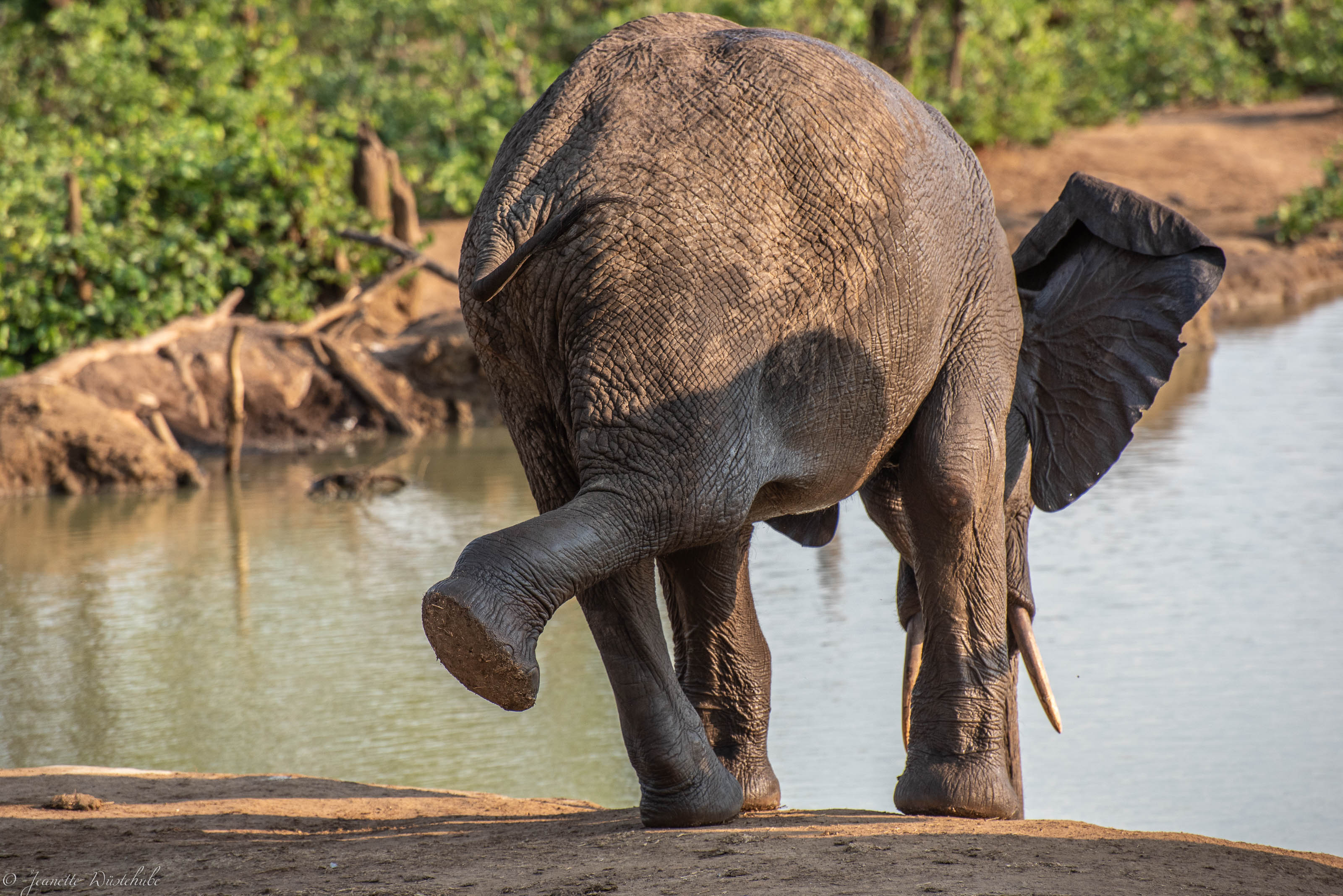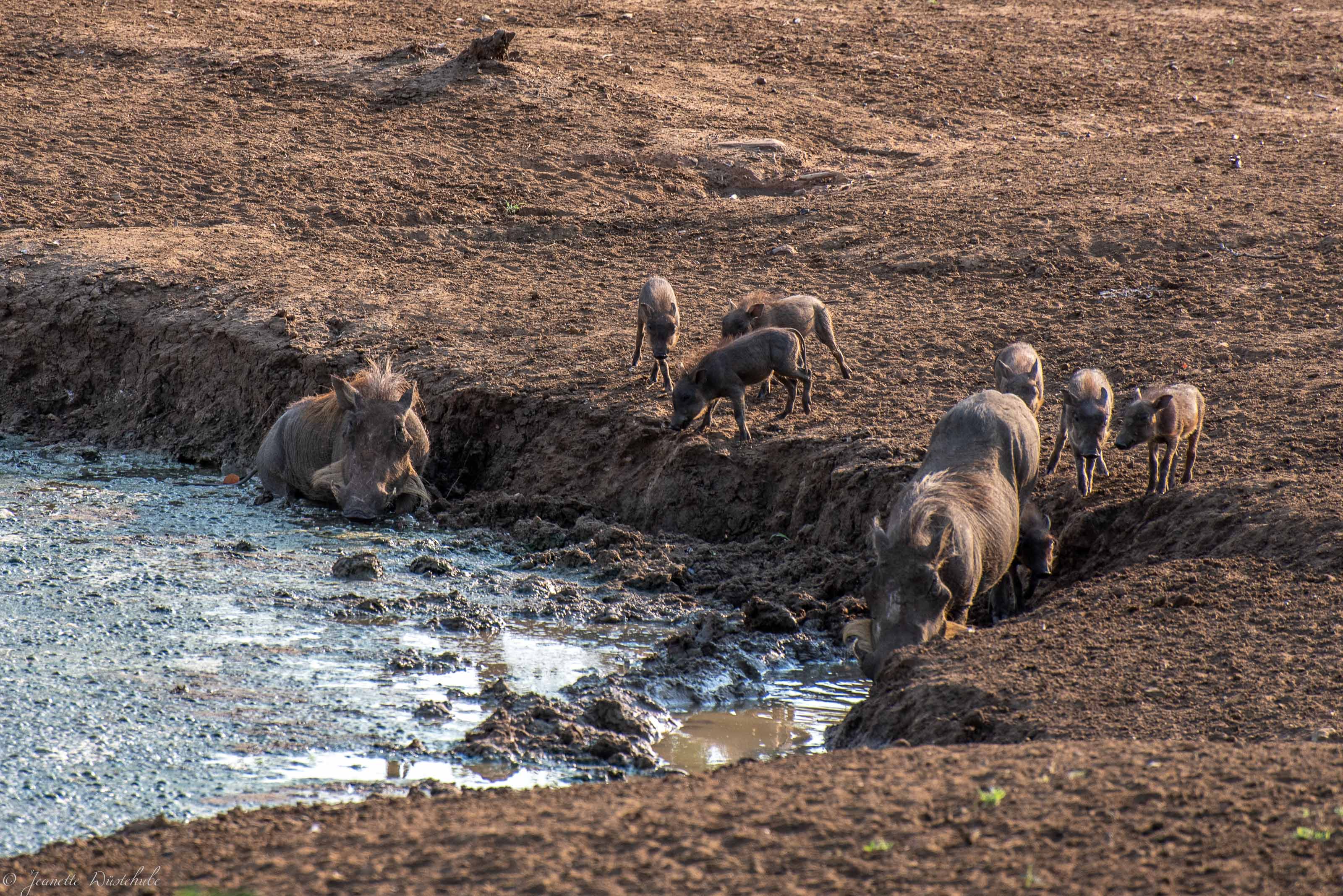 Am unserem zweiten Abend in Punda Maria setzten wir uns in die Hide. Marabus und einige Antilopen kamen, um zu trinken, später auch eine Warzenschwein-Familie und Elefanten mit Jungtieren, was meiner Meinung nach das goldigste ist, was die Tierwelt zu bieten hat. Die Babys sind so richtig verspielt. Einer der jüngeren Elefanten streckte beim Trinken sein Bein wie eine Ballerina ab. Das sah so witzig aus.