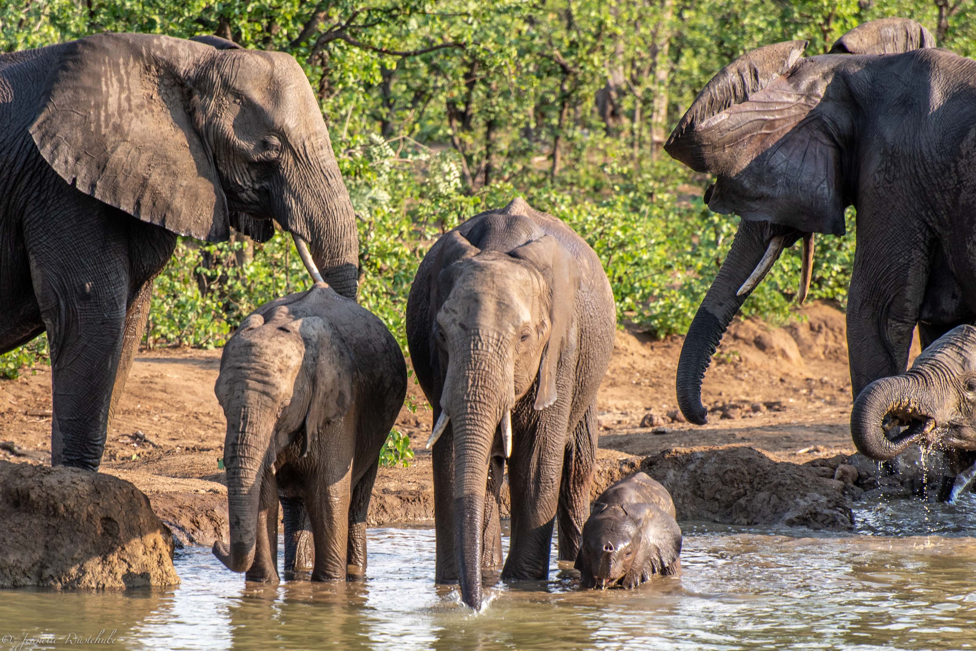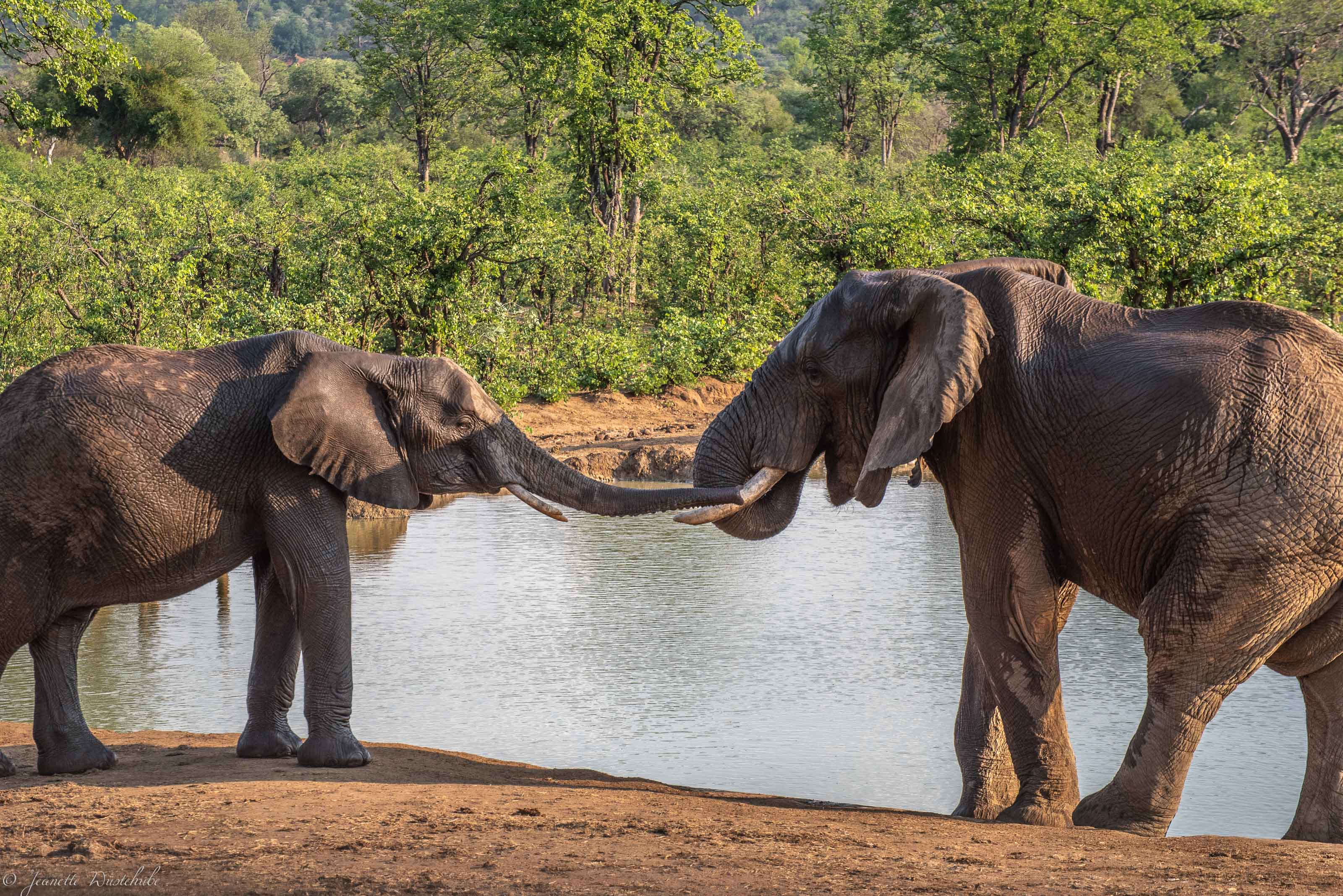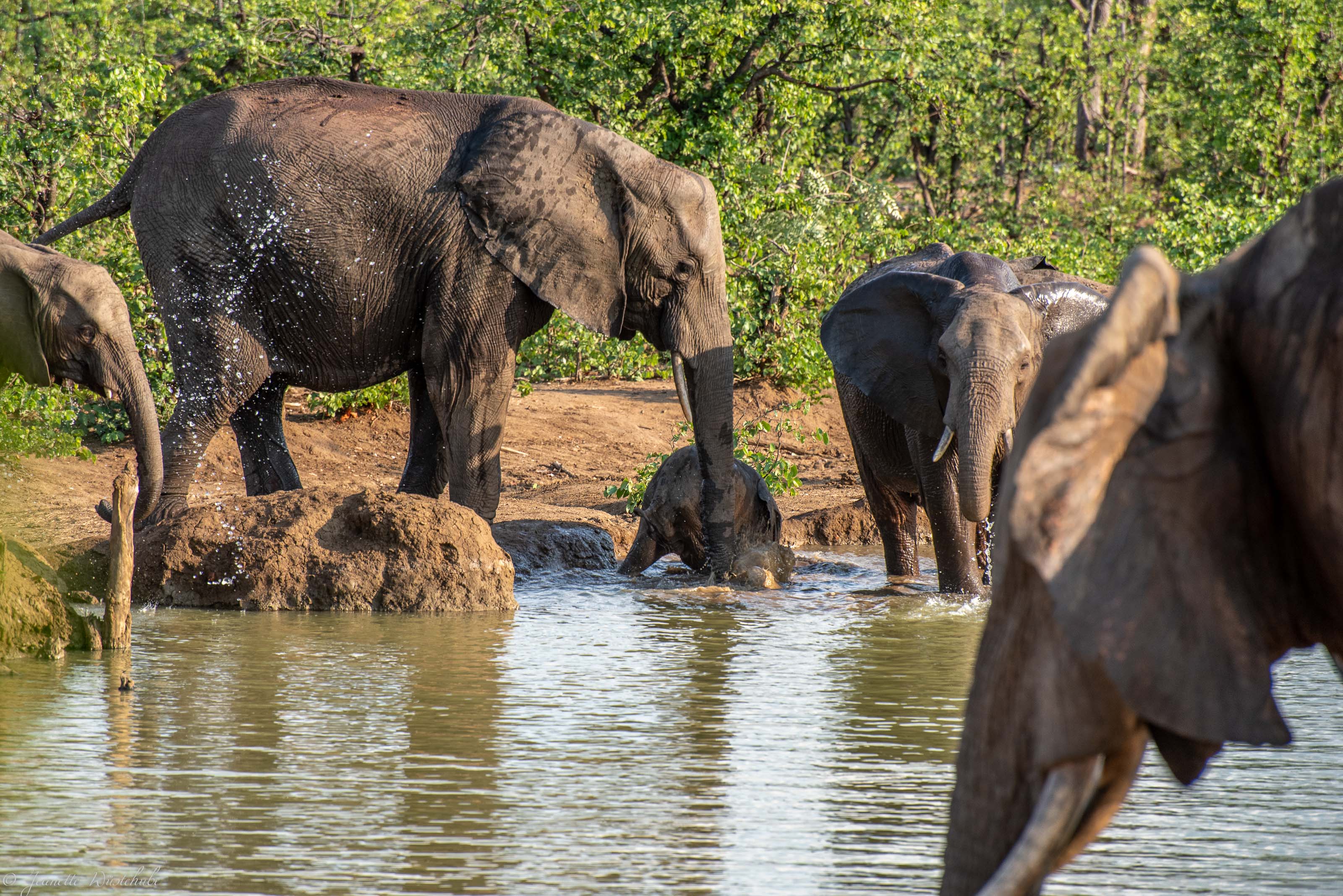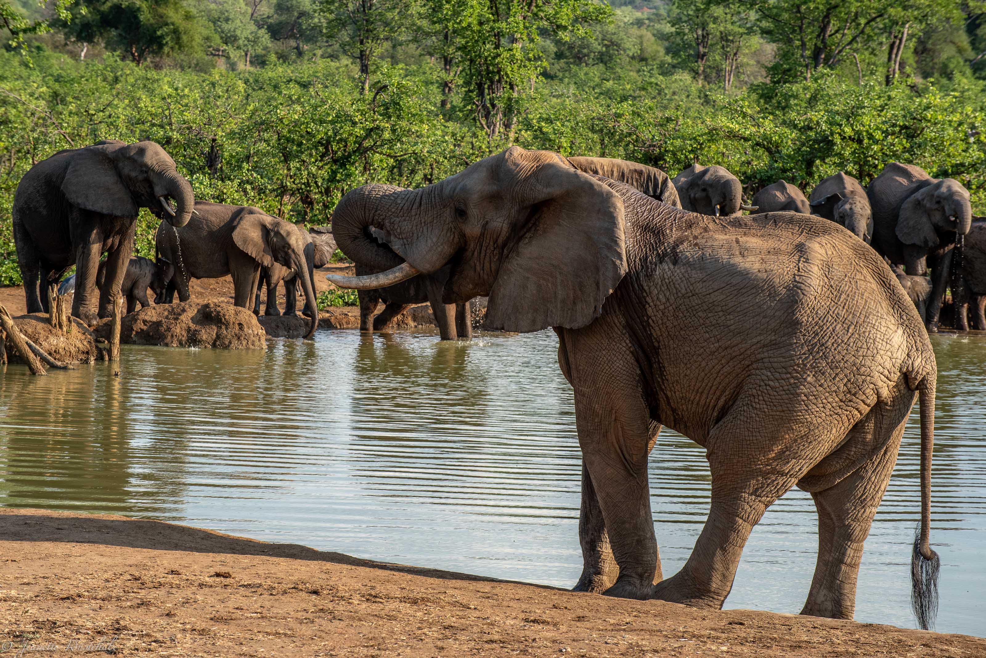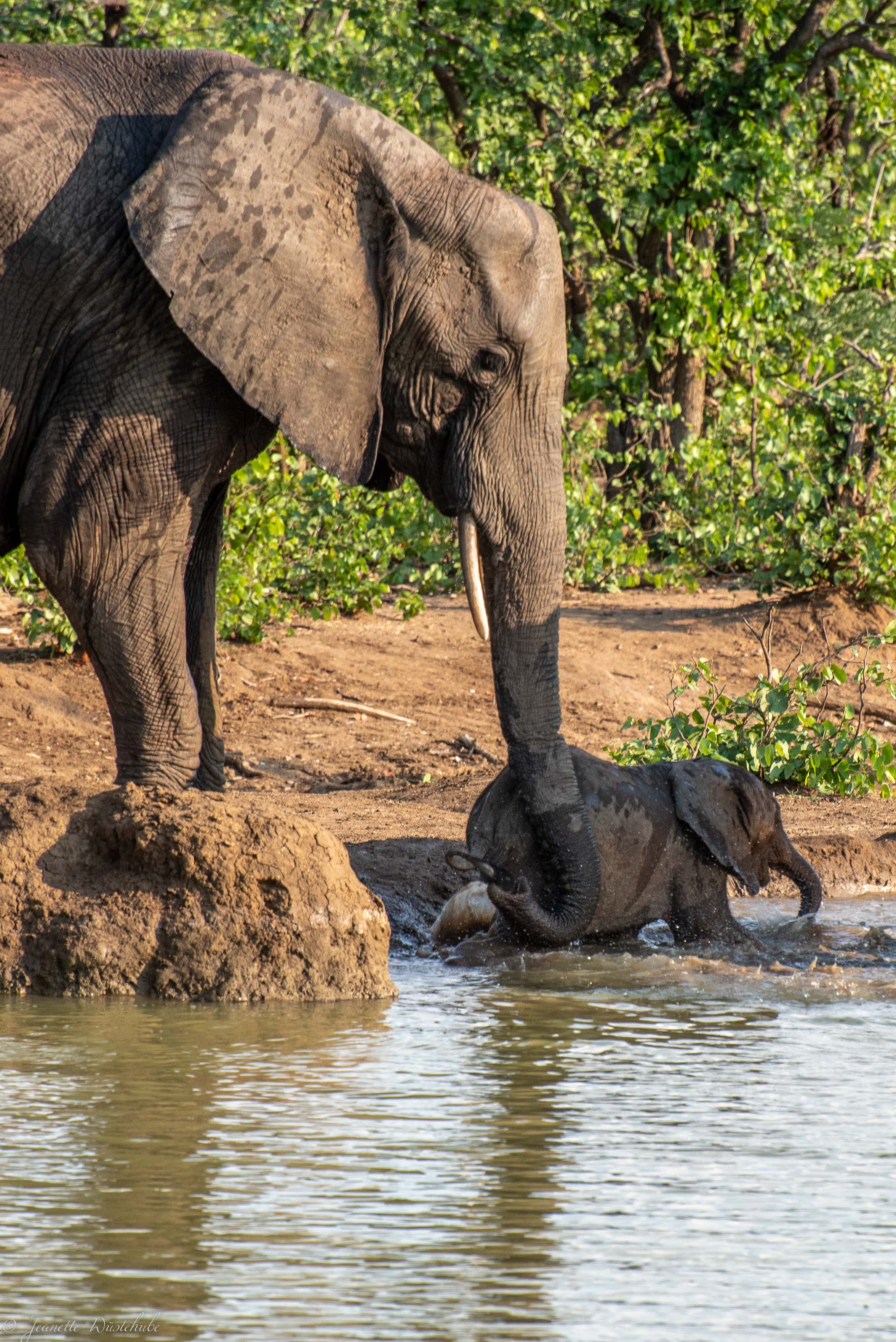 Am unserem zweiten Abend in Punda Maria setzten wir uns in die Hide. Marabus und einige Antilopen kamen, um zu trinken, später auch eine Warzenschwein-Familie und Elefanten mit Jungtieren, was meiner Meinung nach das goldigste ist, was die Tierwelt zu bieten hat. Die Babys sind so richtig verspielt. Einer der jüngeren Elefanten streckte beim Trinken sein Bein wie eine Ballerina ab. Das sah so witzig aus.