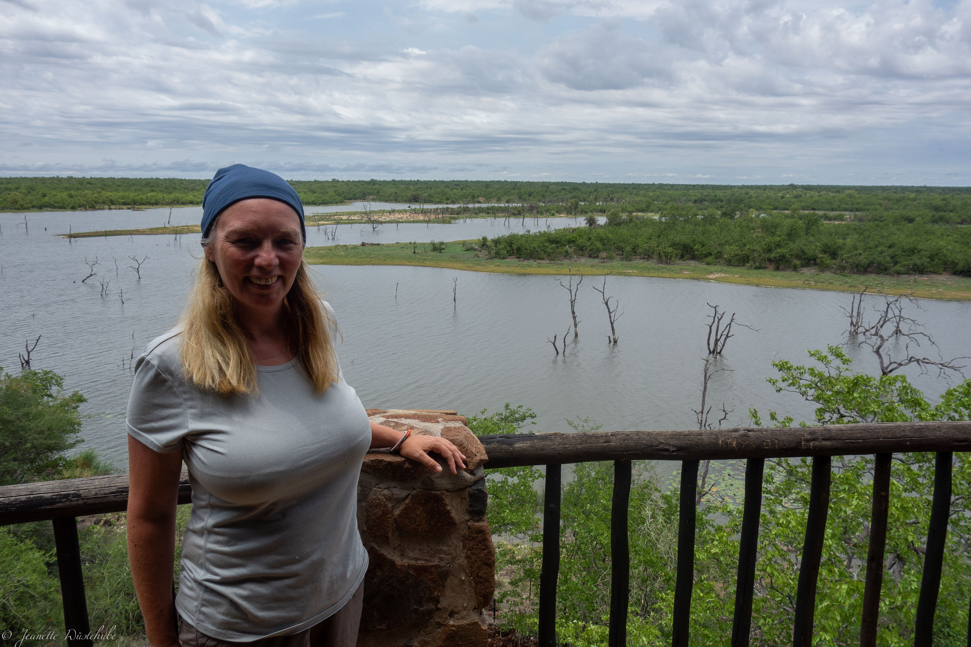 Mittags kamen wir dann zum gut besuchten Picknick-Platz, an der es neben Toiletten auch einen kleinen Shop gab, in dem man kalte Getränke kaufen konnte. Wir aßen unsere Nudelreste und liefen beide Wege, die bei der Picknick-Site starteten. Beim ersten hatte man einen schönen Blick in die felsige Landschaft, der zweite führte an 4 Aussichtspunkten vorbei, von denen man auf den Fluss sehen konnte und auf die Stelle, an der die drei Länder Botswana, Simbabwe und Südafrika zusammentreffen.