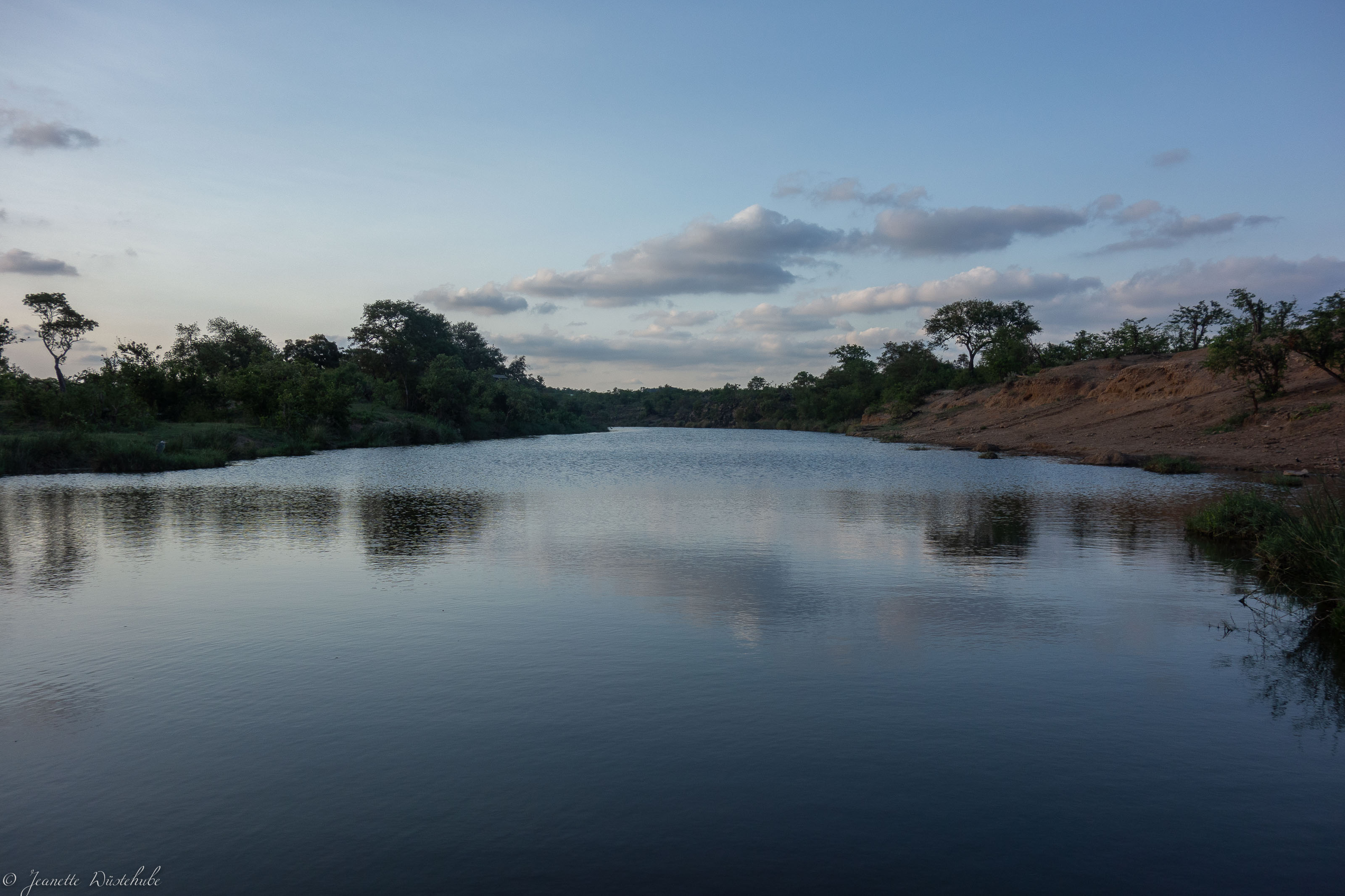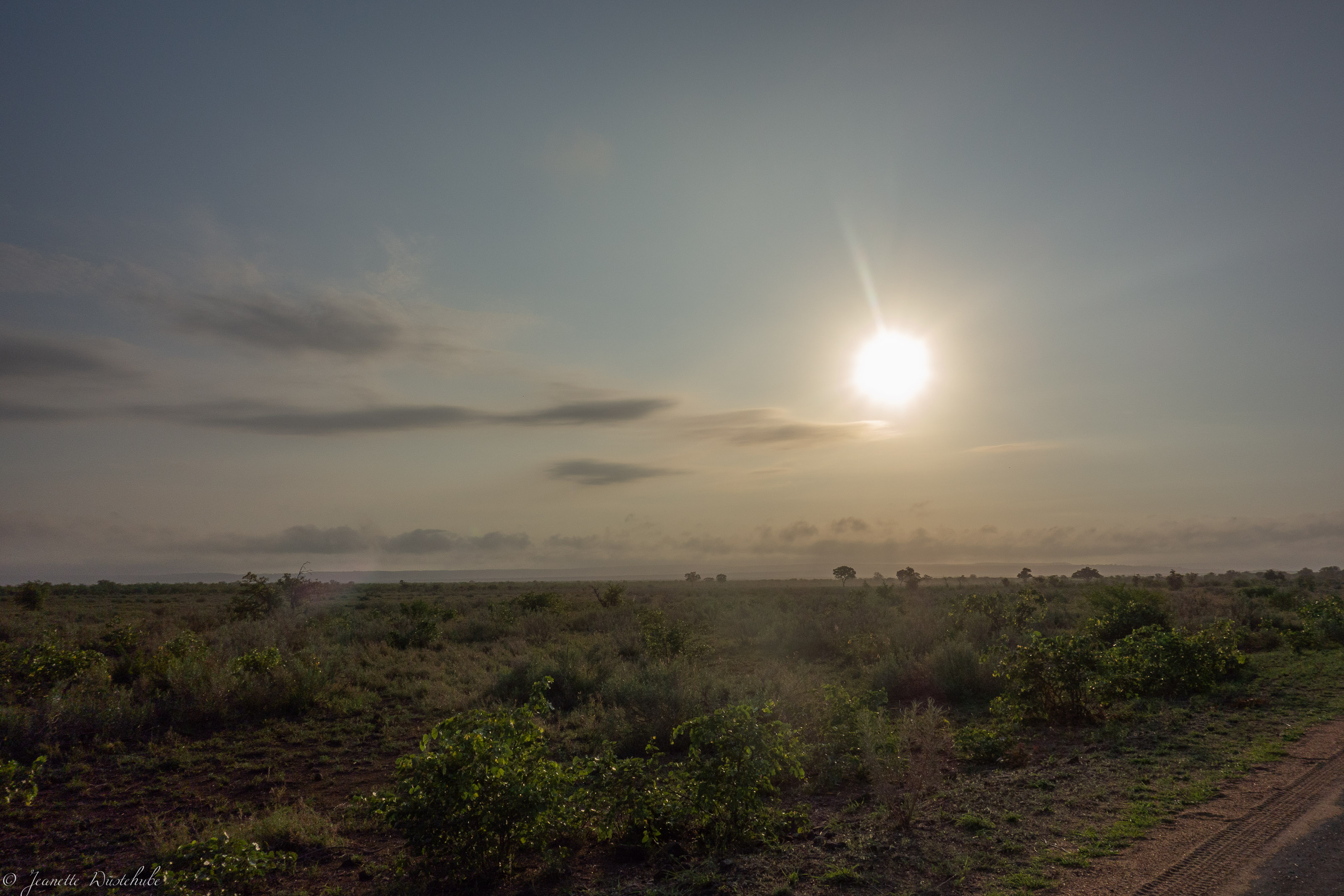 Es war so heiß, dass wir mehr herausschwitzten als wir trinken konnten und ich merkte, dass ich aufpassen musste, keine Blasenentzündung zu bekommen. Also tranken wir so viel Wasser wie möglich, versuchten uns im sehr warmen Pool Abkühlung zu verschaffen und beneideten unsere Campnachbarn, die sogar in ihrem Zelt eine Klimaanlage hatten. Ich schlief sehr schlecht und träumte viel. Vielleicht auch, weil wir in 4 Wochen wieder zurück nach Deutschland reisen und ich leichte Panik habe, wie ich damit zurecht kommen werde, jetzt wo wir quasi frei sind, nur noch in Badelatschen und kurzen Hosen herum laufen und die Tage selbst verplanen können.. ich glaube, das wird sehr schwer. Jedenfalls verarbeite ich nachts viel und das bekommen meine Kiefergelenke zu spüren, die angefangen haben weh zu tun. Vielleicht ist es auch ein Zahn (bitte nicht!), wir werden sehen… Für unsere Zeit im Krüger haben wir uns vorgenommen möglichst früh rauszufahren. Das hieß 4:30 Uhr, denn dann öffnete das Camp-Gate. Da man aufgrund der Hitze sowieso nicht lange im Zelt bleiben konnte, fiel es uns nicht allzu schwer aufzustehen. Wir kochten am Vorabend eine Kanne Tee, die in Toms Stanley Thermoskanne auch am nächsten Morgen noch schön heiß war und frühstückten auf einer der Picknicksites auf der Strecke.