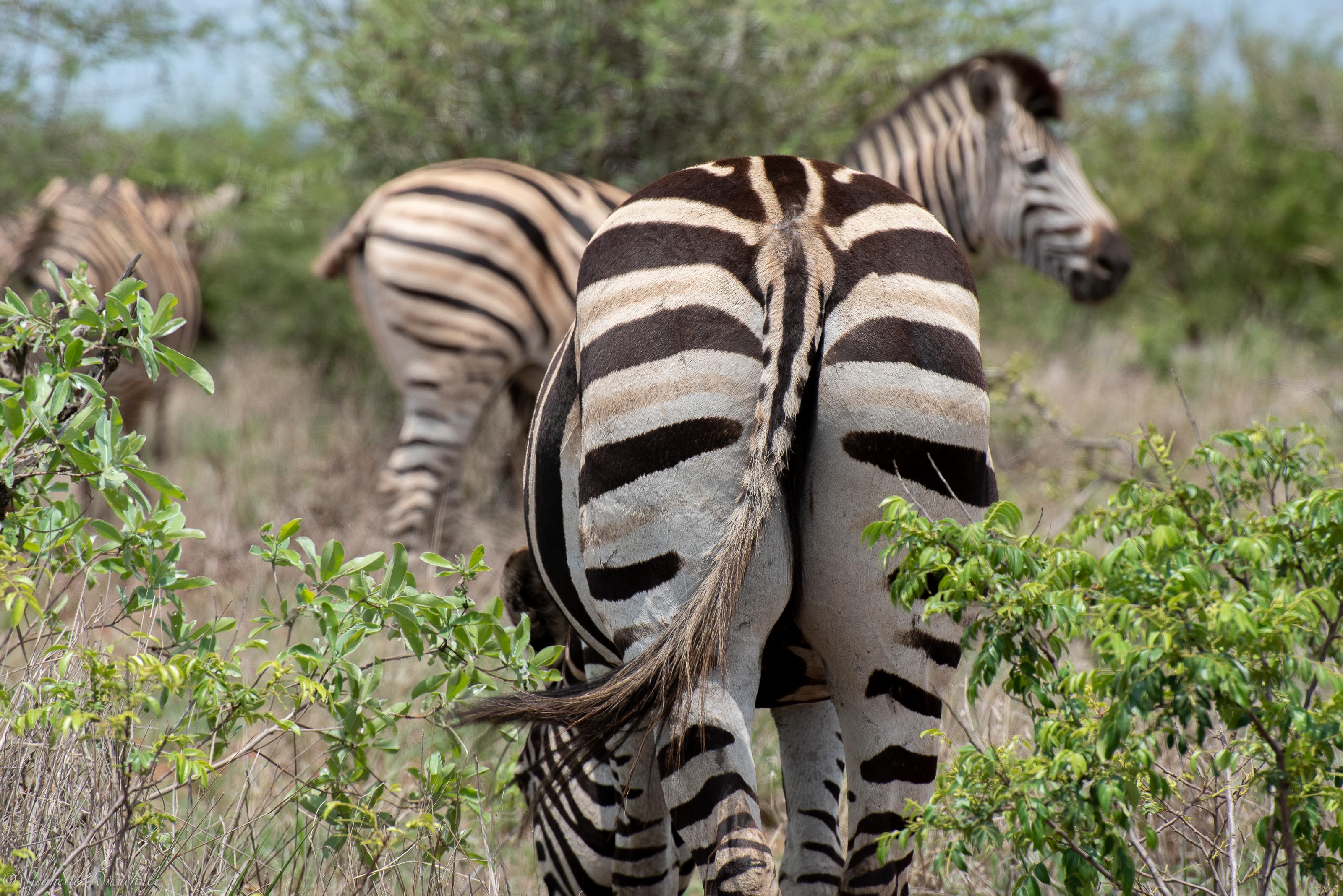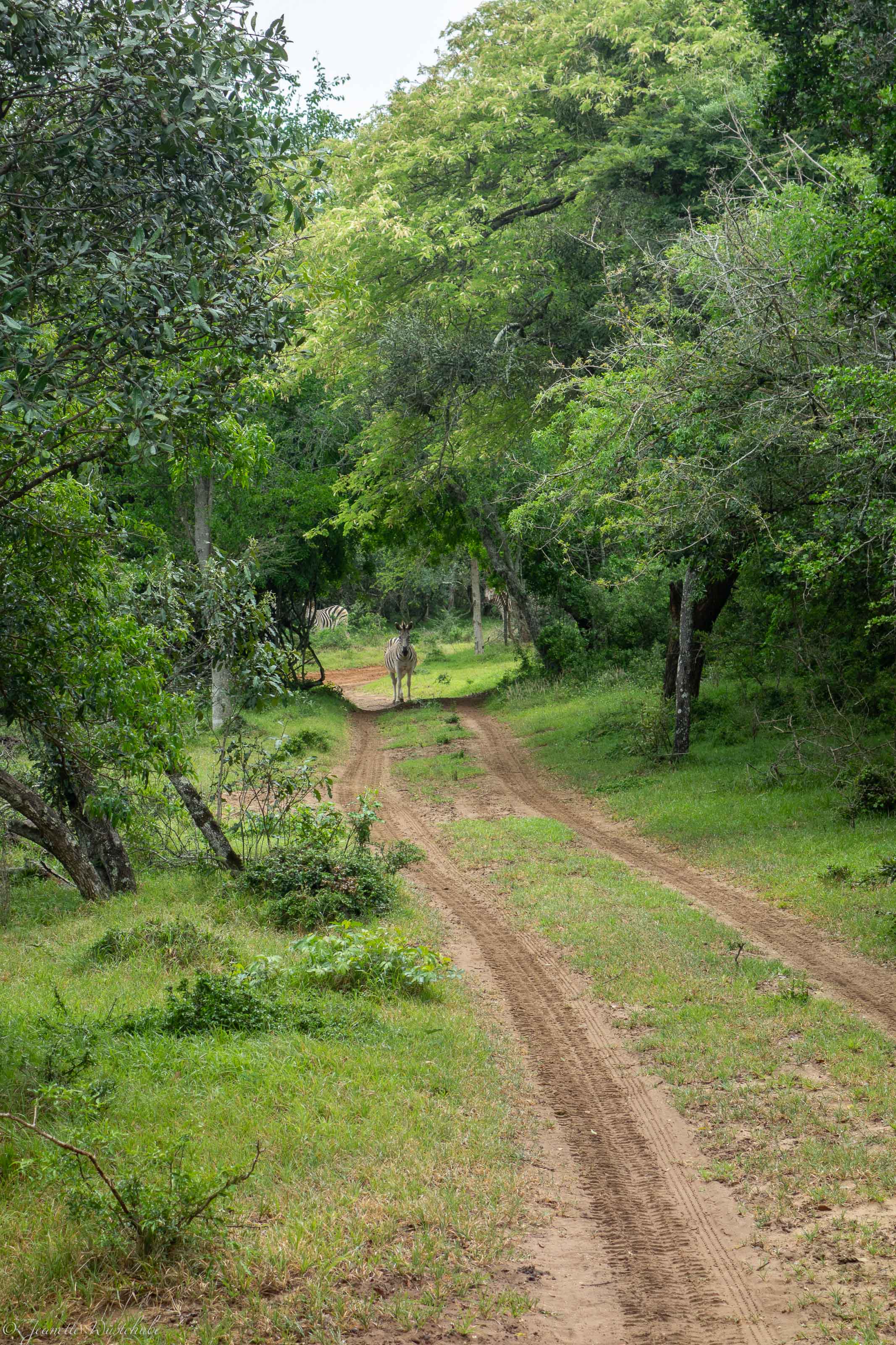 In der Nacht begann es zu regnen und der Regen setzte sich auf fast den kompletten kommenden Tag fort. Also war es gar nicht schlimm, dass wir uns nicht im Camp-Schwimmbad abkühlen konnten. Ich hatte genug mit der Bildbearbeitung zu tun und Tom verschlief den halben Tag im Dachzelt. Zwischendurch wärmten wir unser Chilli auf und liefen auch mal einige Meter. Immer wieder sahen wir Buschböcke, Zebras, Gnus und Impalas, aber keines der Big 4 (Löwen gibt es in Bonamanzi keine). Der Tag verlief also ziemlich ereignislos, aber extrem entspannend. Abends fanden wir mit unserer Leuchte noch zwei weitere Skorpione. Als ich auf Toilette ging, bevor wir schlafen gehen wollten, sah ich etwas am Rand des Abfalleimers mit Schwingdeckel sitzen. Was immer es war, sprang oder rutschte zurück in den Eimer, als ich hineinkam und machte dabei ein lautes Geräusch. Ein Käfer oder eine kleine Spinne war es wohl nicht… Ich hatte Schiss nachzusehen, was es war und traute mich kaum mehr auf Toilette aus Angst es könnte mich anfallen oder panisch aus dem Abfall springen. Am kommenden Morgen ging ich auf Toilette und sah beim Verlassen selbiger im Laufen nach oben in Richtung des Wellblechdachs, das die Konstruktion aus Dusch / WC-Abteil, Küchenräumchen und den dazwischenliegenden Gang überspannte. Dabei bemerkte ich eine Bewegung. Ich dachte erst, das wäre einer der Geckos gewesen, die sich immer dort aufhalten, wo es hell ist und sich die Fliegen und anderen Insekten aufgrund des Lichts tummeln, aber die Bewegung sah irgendwie anders aus. Ich ging noch mal einen Schritt zurück und sah eine Schlange, die sich am Balken entlangwand, vielleicht 70 cm von meinem Kopf entfernt. Etwa so dick wie mein Ringfinger, unten weiß und oben gräulich-braun und vielleicht 60 cm lang. Ich erschrak mich zu Tode und reagierte so, wie man wahrscheinlich nicht reagieren soll. Ich rannte panisch weg… ich rief Tom, der noch im Dachzelt war, ein entsetztes „Schlange!!!!!“ nach oben. Als er heruntergeklettert war, war das Tier, verschwunden und ich hatte leider nicht gesehen wohin. Tom räumte vorsichtig Bad und Küche leer, weil wir nicht wussten, wo sie sich versteckt hatte und wir auch nicht wussten, was es für eine Art Schlange war. Es gibt ja neben vielen ungefährlichen, so einige giftige und auch mehrere tödliche Schlangenarten in Südafrika… irgendwie unangenehm zu wissen, dass ich den halben Tag unter genau dem Schlangenbalken gesessen und gearbeitet hatte. Wer weiß, ob sie da schon da gewesen war. Puh… Aufregung pur, auch wenn nichts passiert war und Schlangen ja, so sagt man, normalerweise abhauen, wenn sie Geräusche spüren, also es gar nicht auf eine Konfrontation anlegen. Wir bauten unser Lager ab und fuhren weiter Richtung Kosi Bay.