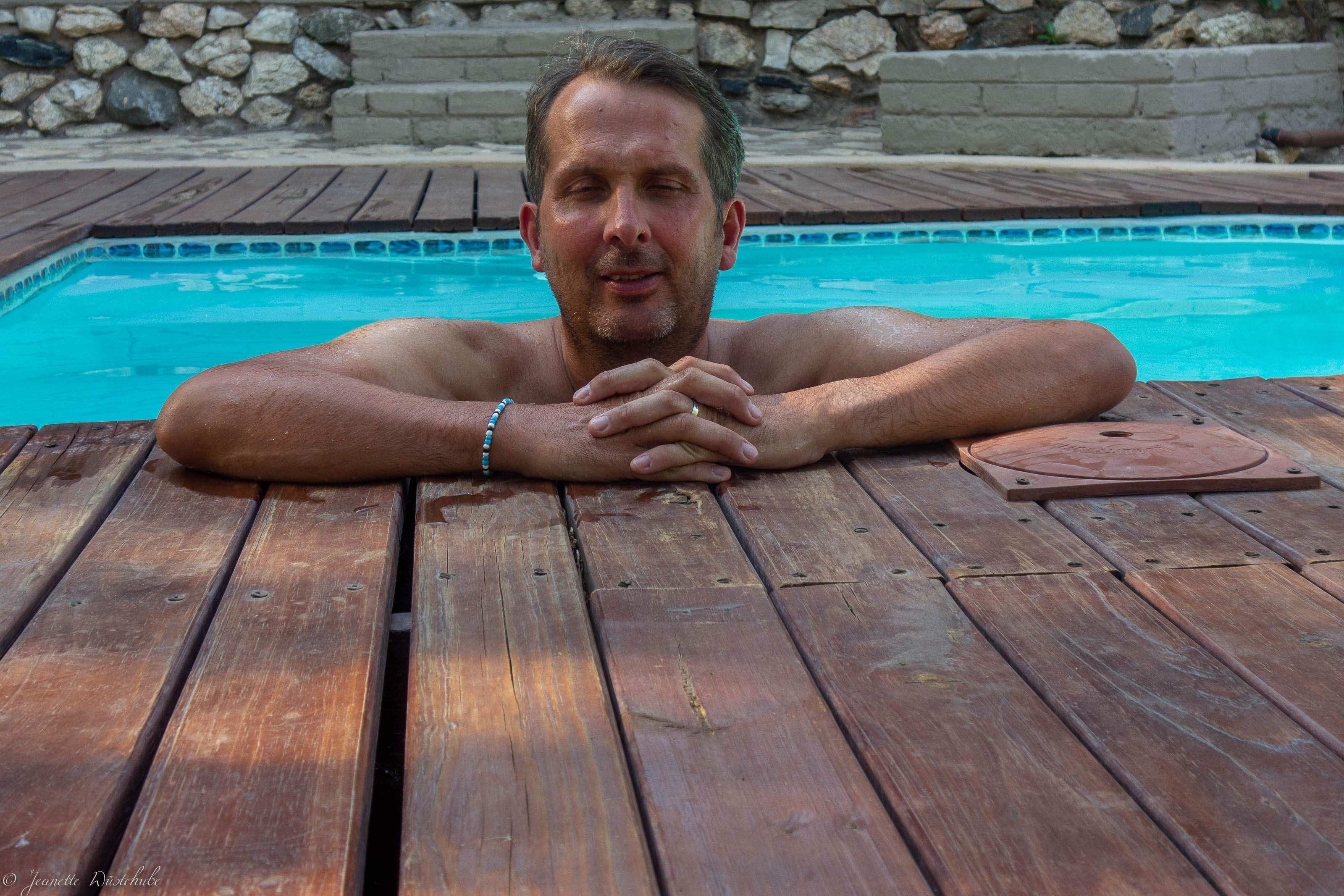 Wir bauten unsere Habseligkeiten auf und steckten anschließend die Füße ein bisschen in den Pool.