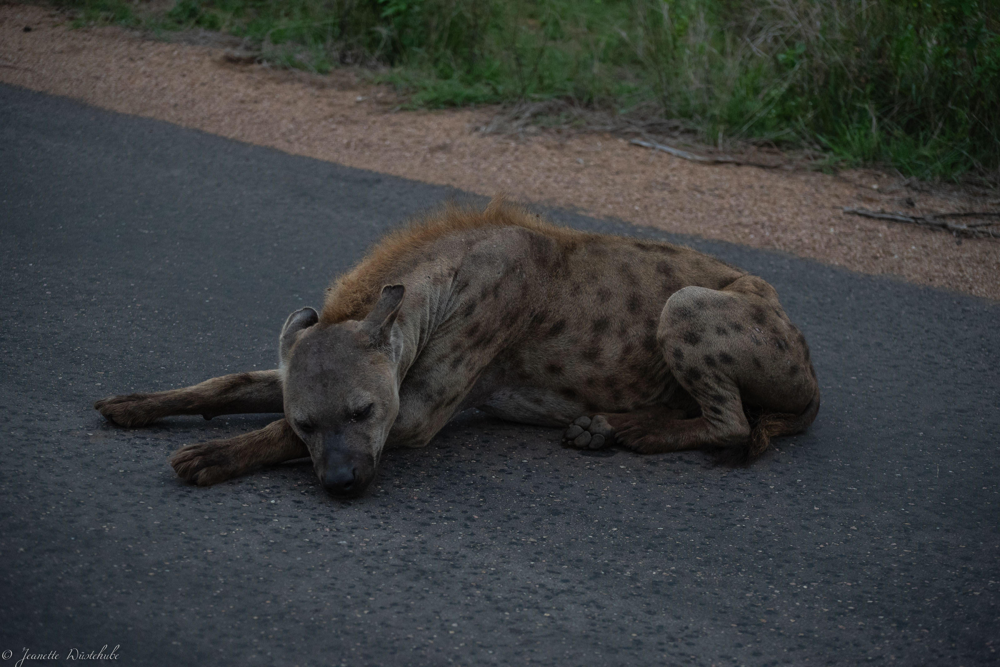 An unserem letzten Tag im Krüger Nationalpark hatten wir auch die längste Strecke vor uns, da wir bis zum südlichen Gate (Crocodile Bridge) fahren mussten. Aber diesmal mussten wir nichts zusammenpacken, da wir ja in einem festen Zelt übernachtet hatten und so reichte es, dass wir um kurz nach 4 aufstanden. Tom entdeckte ein kleines Rudel Löwen, und wir konnten länger alleine stehenbleiben um diese zu beobachten. Je weiter südlich wir kamen, desto mehr Menschen waren unterwegs. Schwierig wird es dann, wenn jemand einen Löwen oder Leoparden entdeckt. Dann entsteht schnell ein Stau und da die Straßen nicht sehr breit sind, hat man keine Chance mehr durchzukommen, weil natürlich keiner seine gute Sichtposition aufgeben will. Unter Umständen, so hatten wir es in Pilanesberg erlebt, kann man hier eine ganze Weile eingekeilt zwischen anderen Fahrzeugen stehen ohne überhaupt etwas von den Tieren zu sehen.