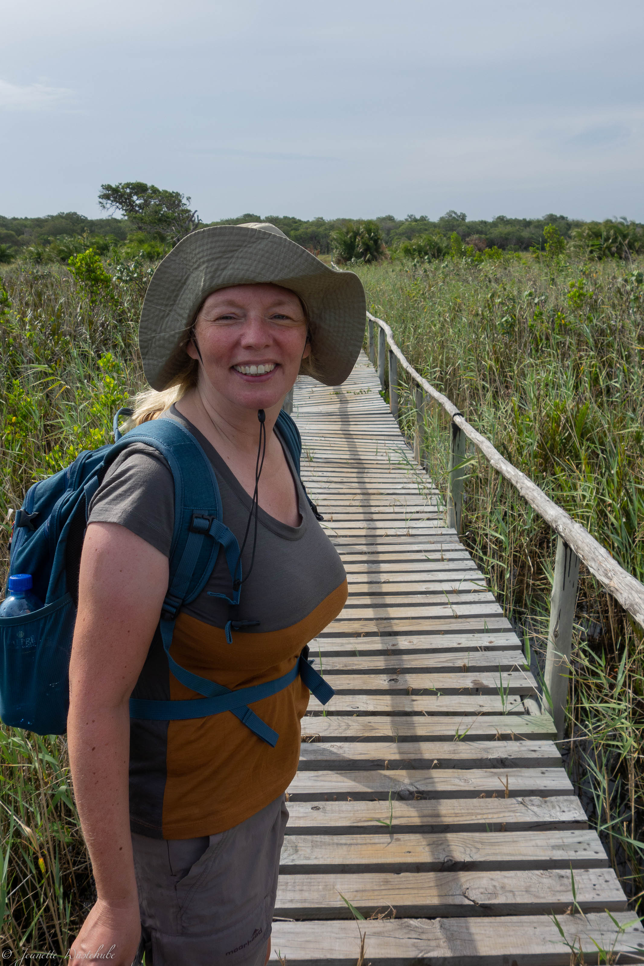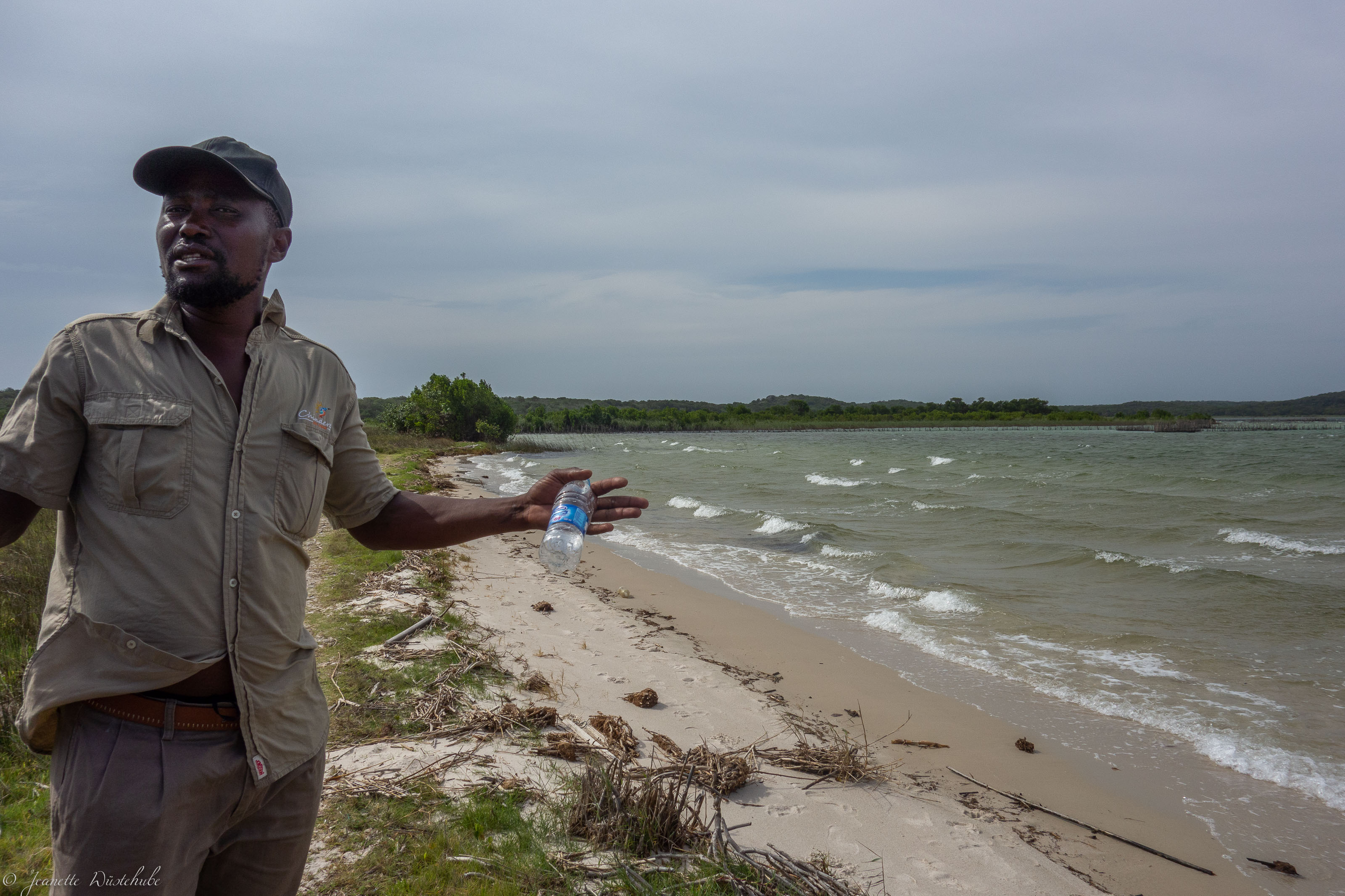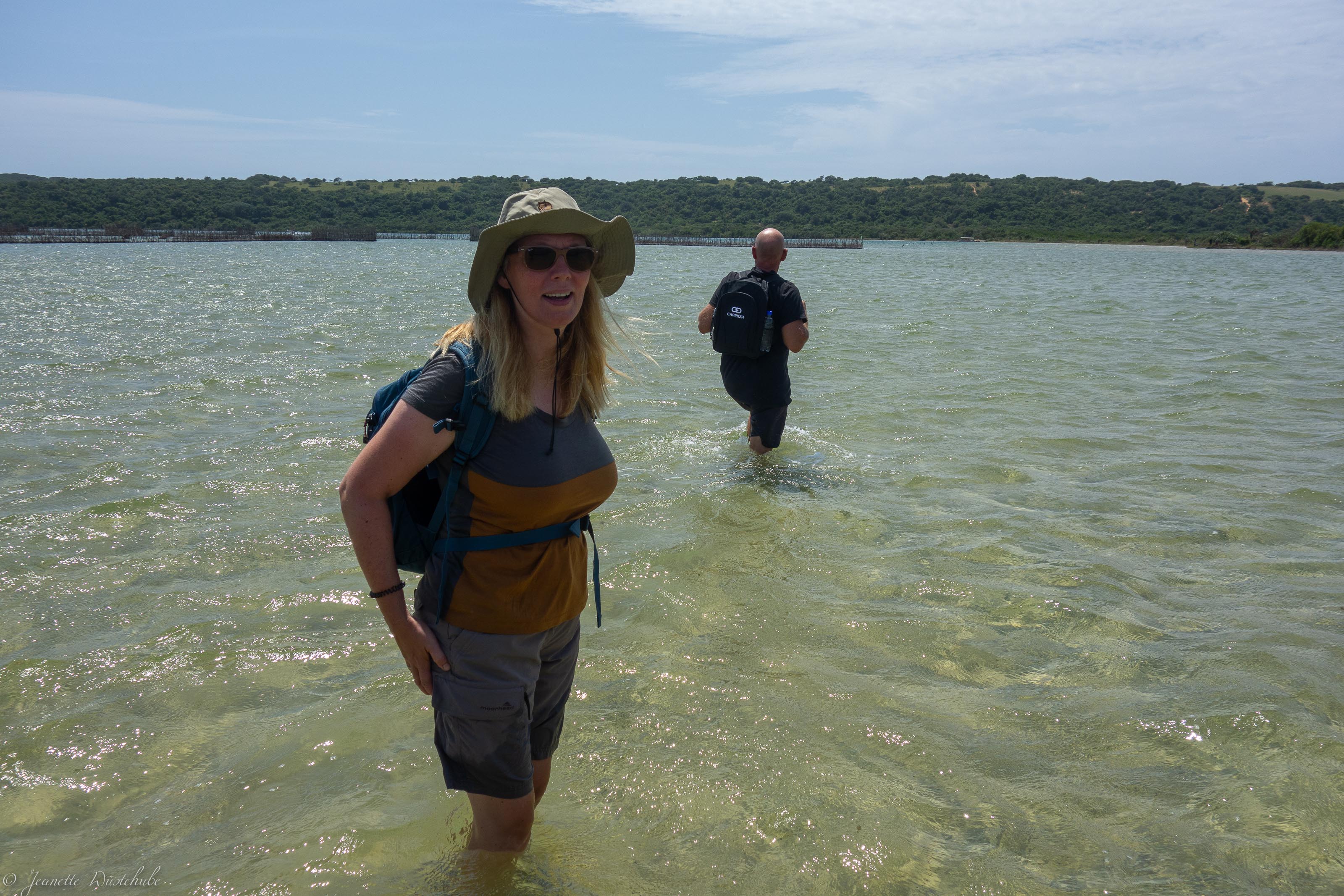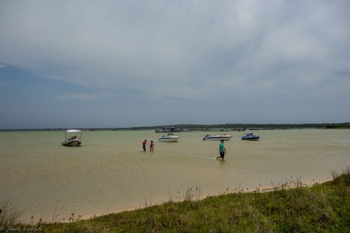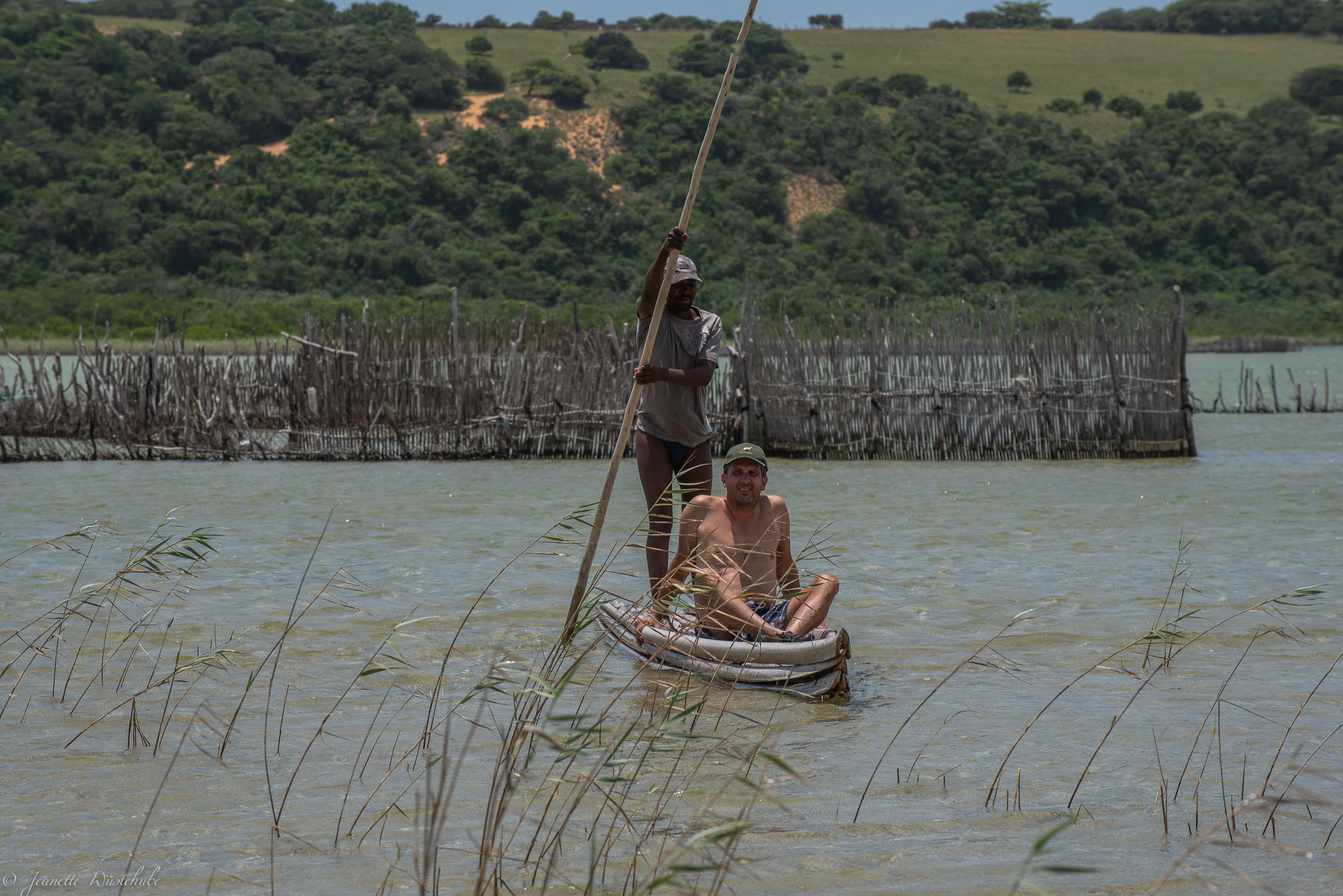 Das Stehen in dem wackligen Palmboot klappte gut, nur ließ sich das Brett/Boot nicht wirklich lenken. Für SUP wären die vier Seen allerdings wie gemacht. Normalerweise gibt es an den Seen wenige Besucher. Wir waren vor Jahren schon einmal hier und hatten mit unserem Guide im Kajak einen ganzen Tag lang keine Menschenseele gesehen. Jetzt waren, aufgrund der Sommerferien, viele Südafrikaner, zum Teil sogar mit Motorbooten, auf den Seen unterwegs. Eine Sache, die nicht nur Trevor ganz furchtbar fand. Schließlich handelt es sich bei der Region um ein UNESCO Weltnaturerbe und dazu noch um ein Naturschutzgebiet. Aber im Moment ist das Gebiet frei zugänglich und es gibt auch keine Nationalpark-Mitarbeiter oder Schilder, die dem Besucher erklären könnten, was erlaubt ist und was nicht. Also fahren eben in der Hochsaison private Motorboote auf den Seen herum. Allerdings hatte uns Rob schon gesagt, dass sie zu diesem Thema in Kürze das Gespräch mit dem Chief der Region suchen würden, um eine Lösung zu finden.