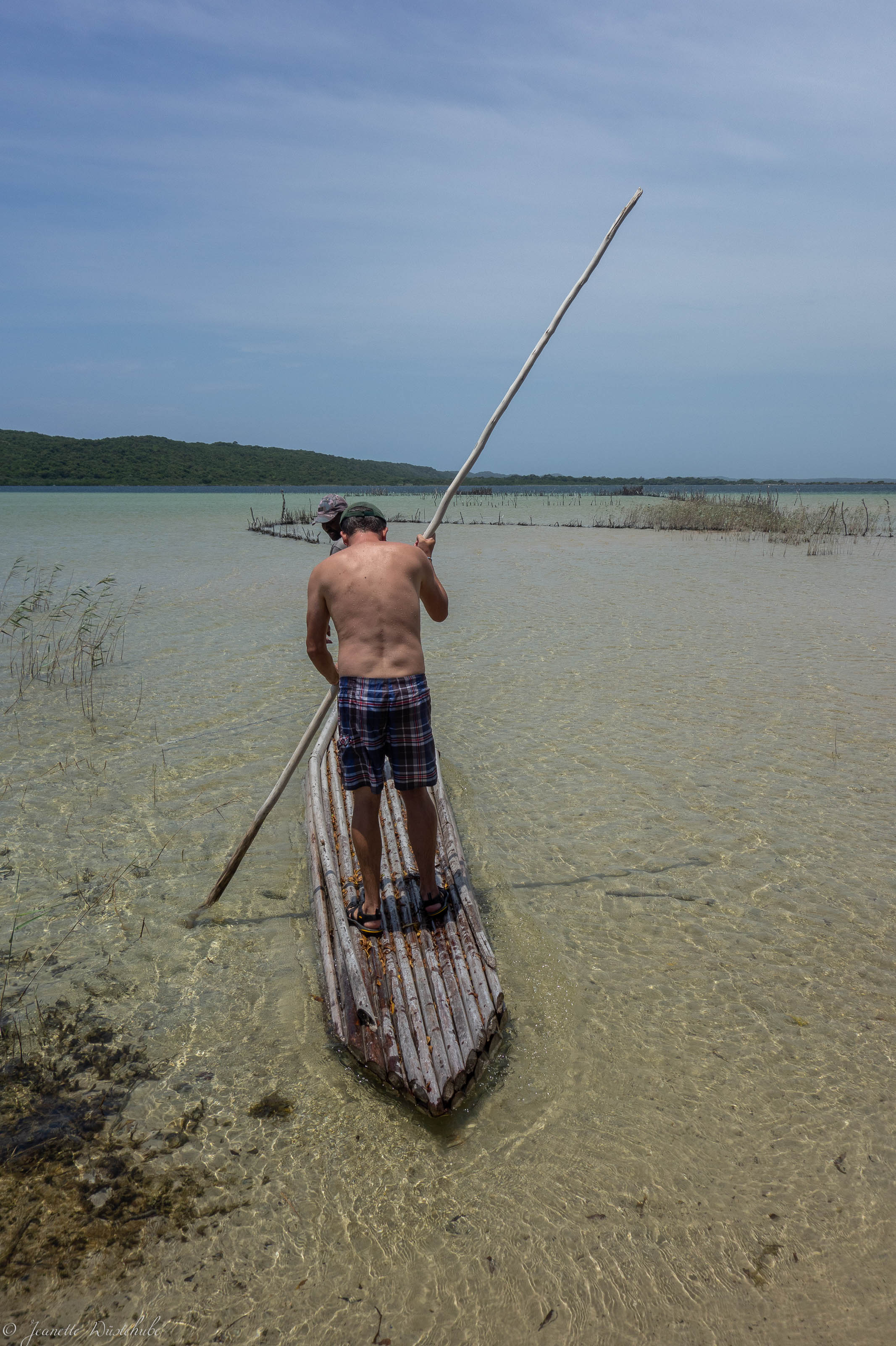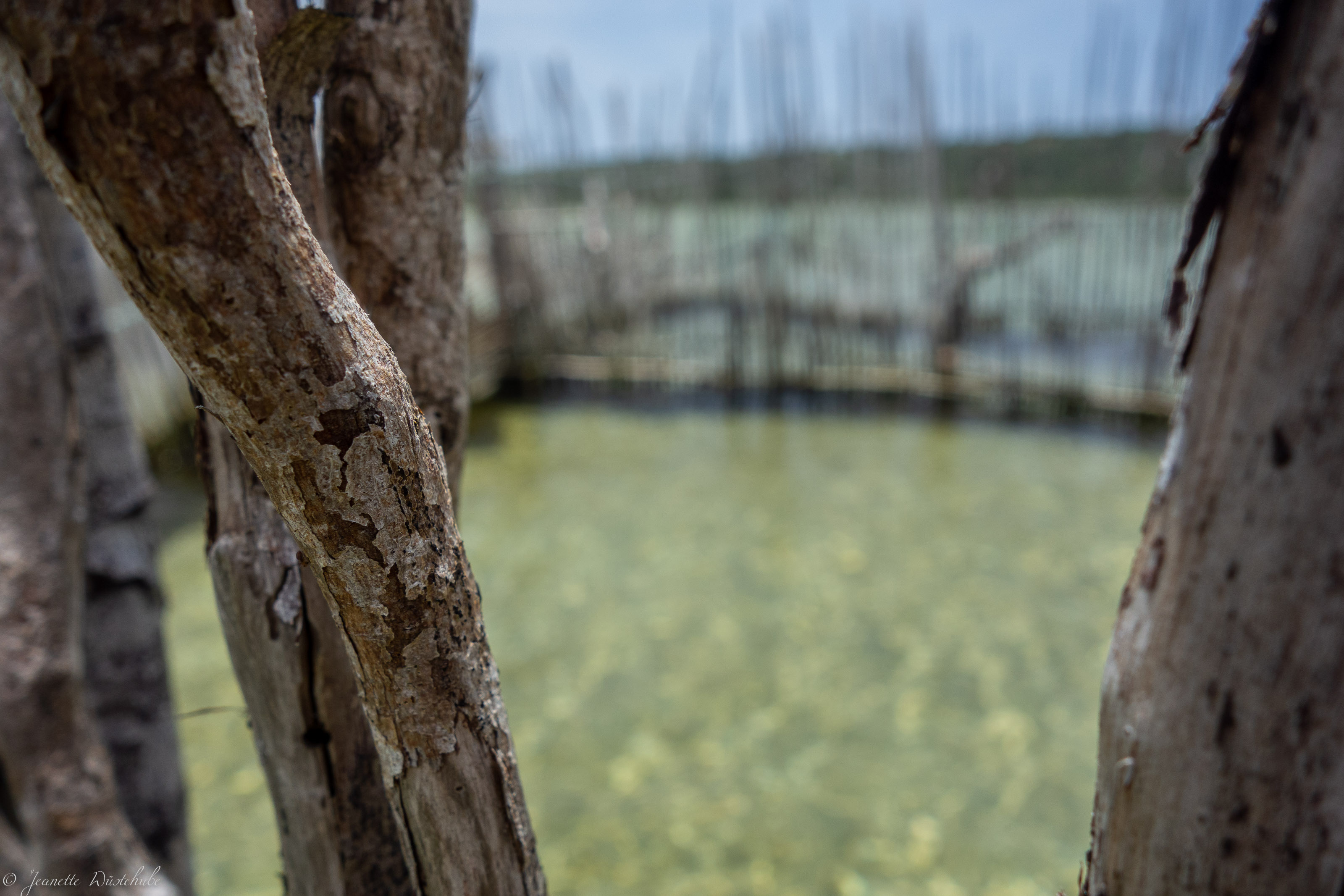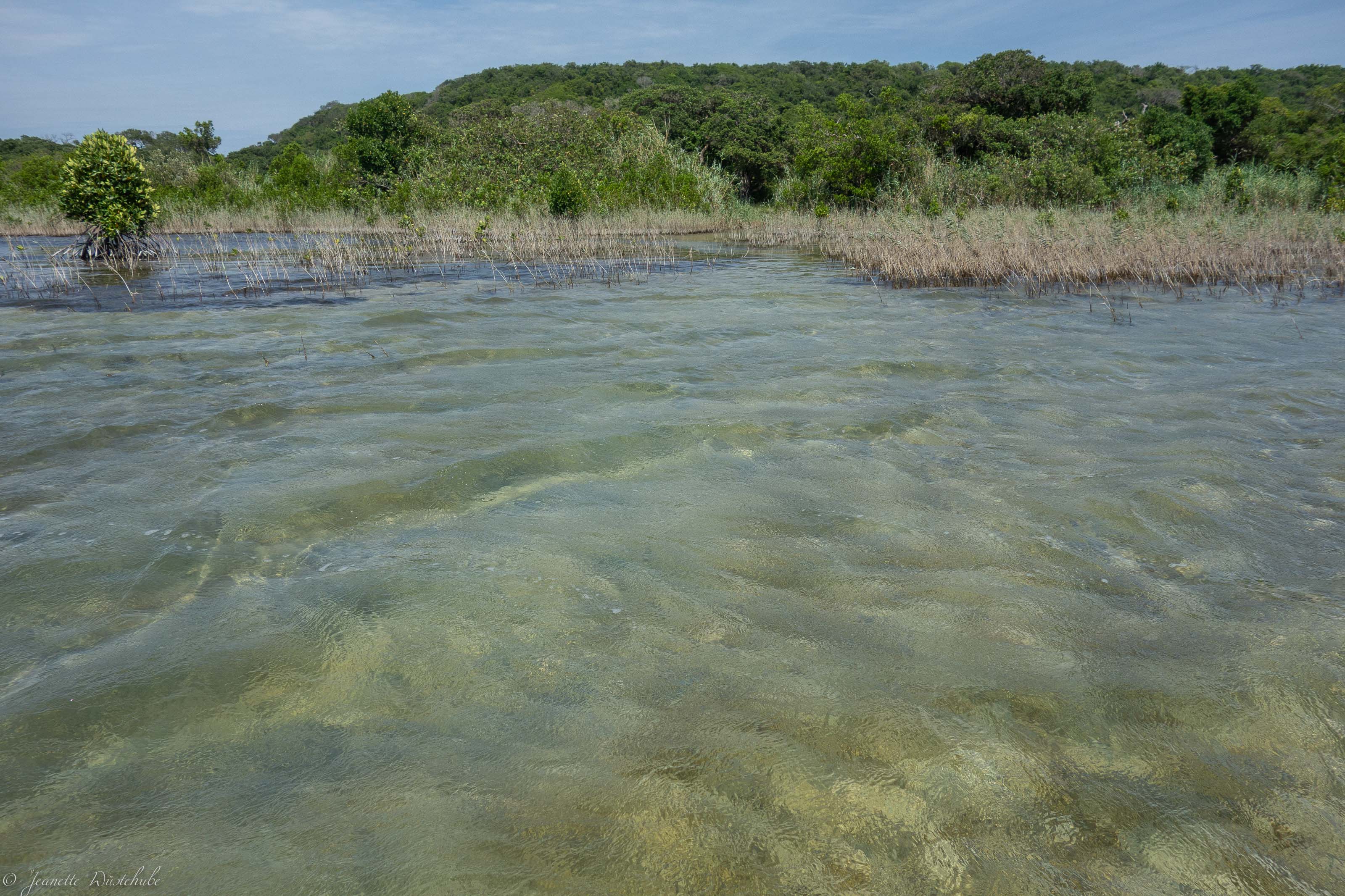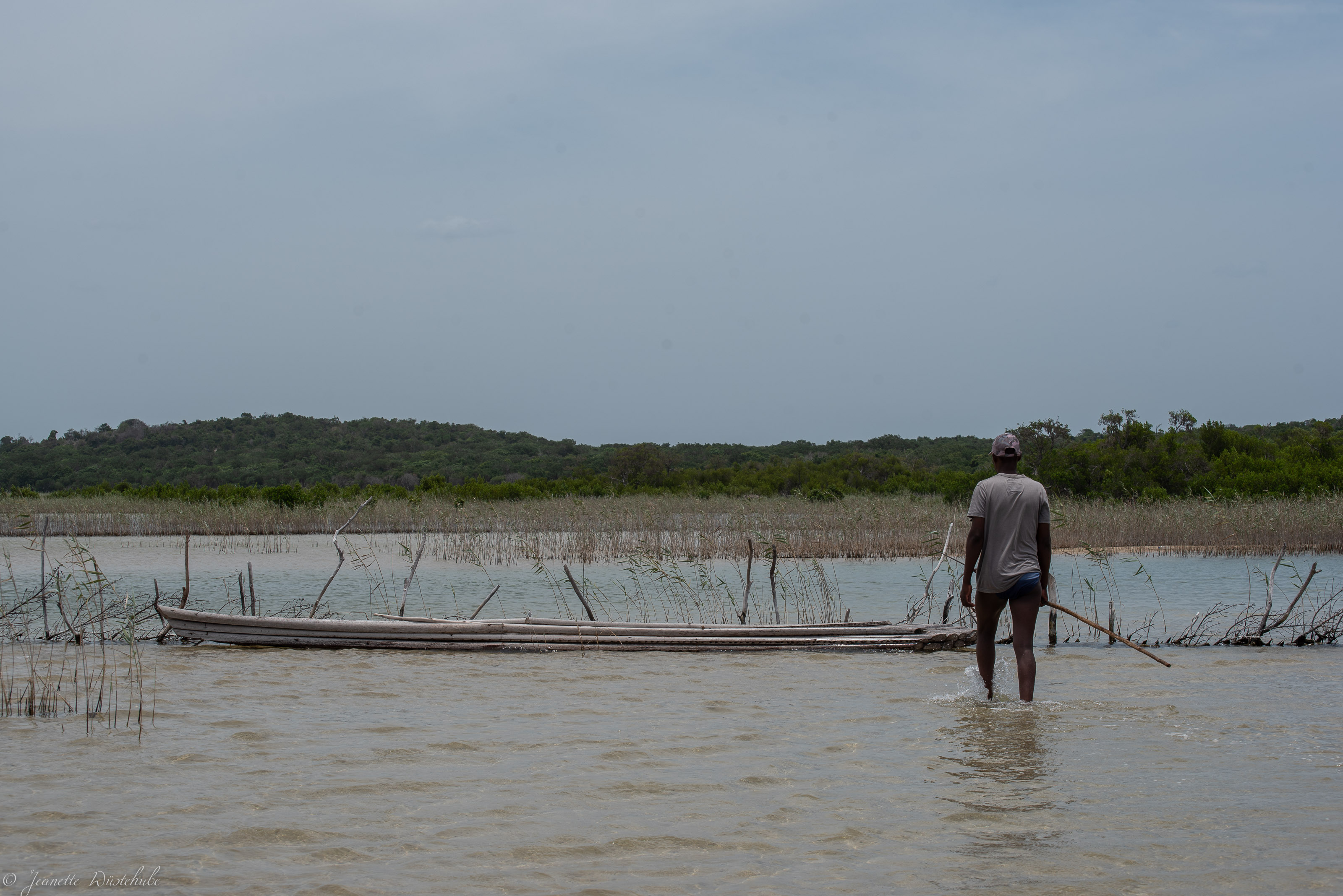 Das Stehen in dem wackligen Palmboot klappte gut, nur ließ sich das Brett/Boot nicht wirklich lenken. Für SUP wären die vier Seen allerdings wie gemacht. Normalerweise gibt es an den Seen wenige Besucher. Wir waren vor Jahren schon einmal hier und hatten mit unserem Guide im Kajak einen ganzen Tag lang keine Menschenseele gesehen. Jetzt waren, aufgrund der Sommerferien, viele Südafrikaner, zum Teil sogar mit Motorbooten, auf den Seen unterwegs. Eine Sache, die nicht nur Trevor ganz furchtbar fand. Schließlich handelt es sich bei der Region um ein UNESCO Weltnaturerbe und dazu noch um ein Naturschutzgebiet. Aber im Moment ist das Gebiet frei zugänglich und es gibt auch keine Nationalpark-Mitarbeiter oder Schilder, die dem Besucher erklären könnten, was erlaubt ist und was nicht. Also fahren eben in der Hochsaison private Motorboote auf den Seen herum. Allerdings hatte uns Rob schon gesagt, dass sie zu diesem Thema in Kürze das Gespräch mit dem Chief der Region suchen würden, um eine Lösung zu finden.