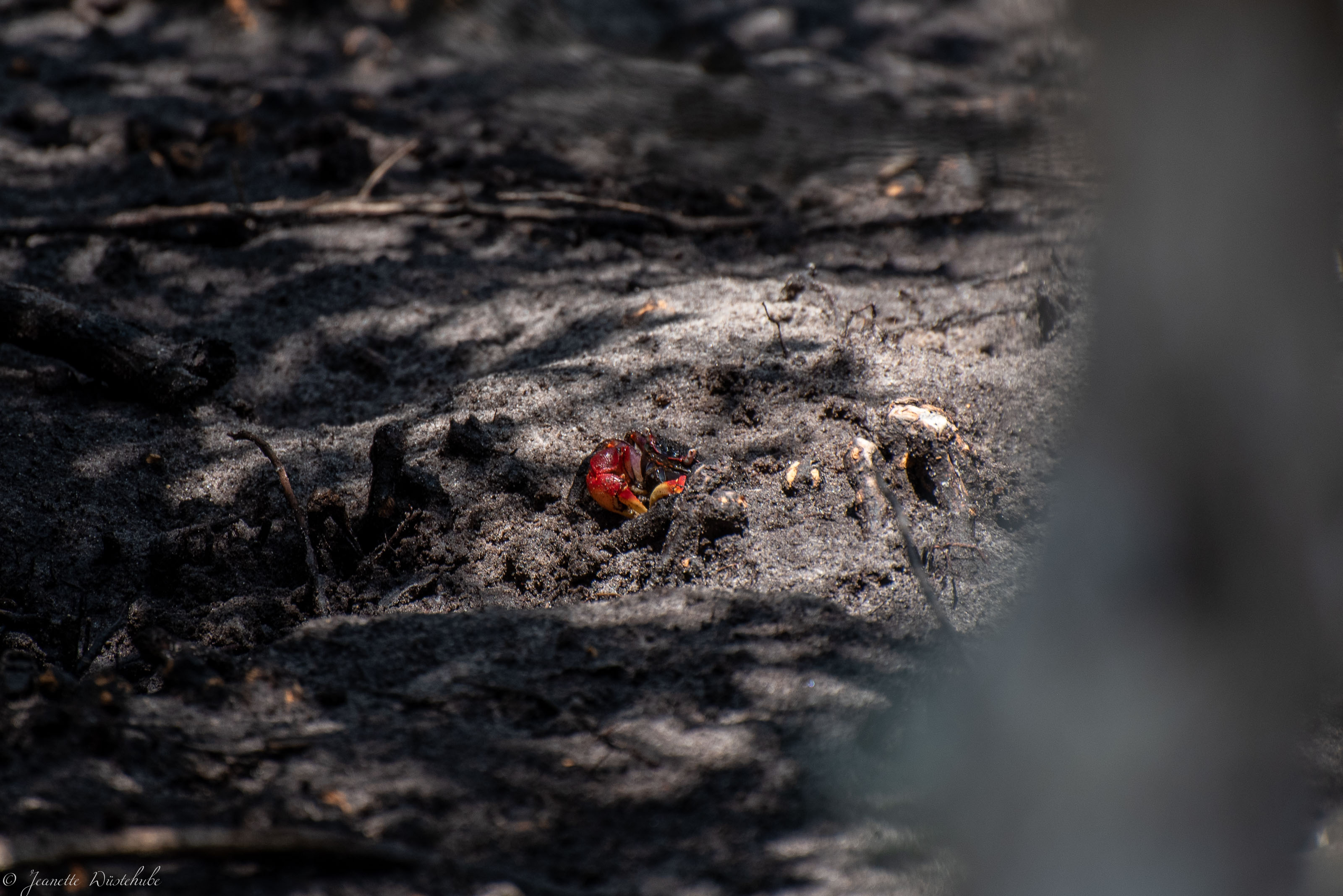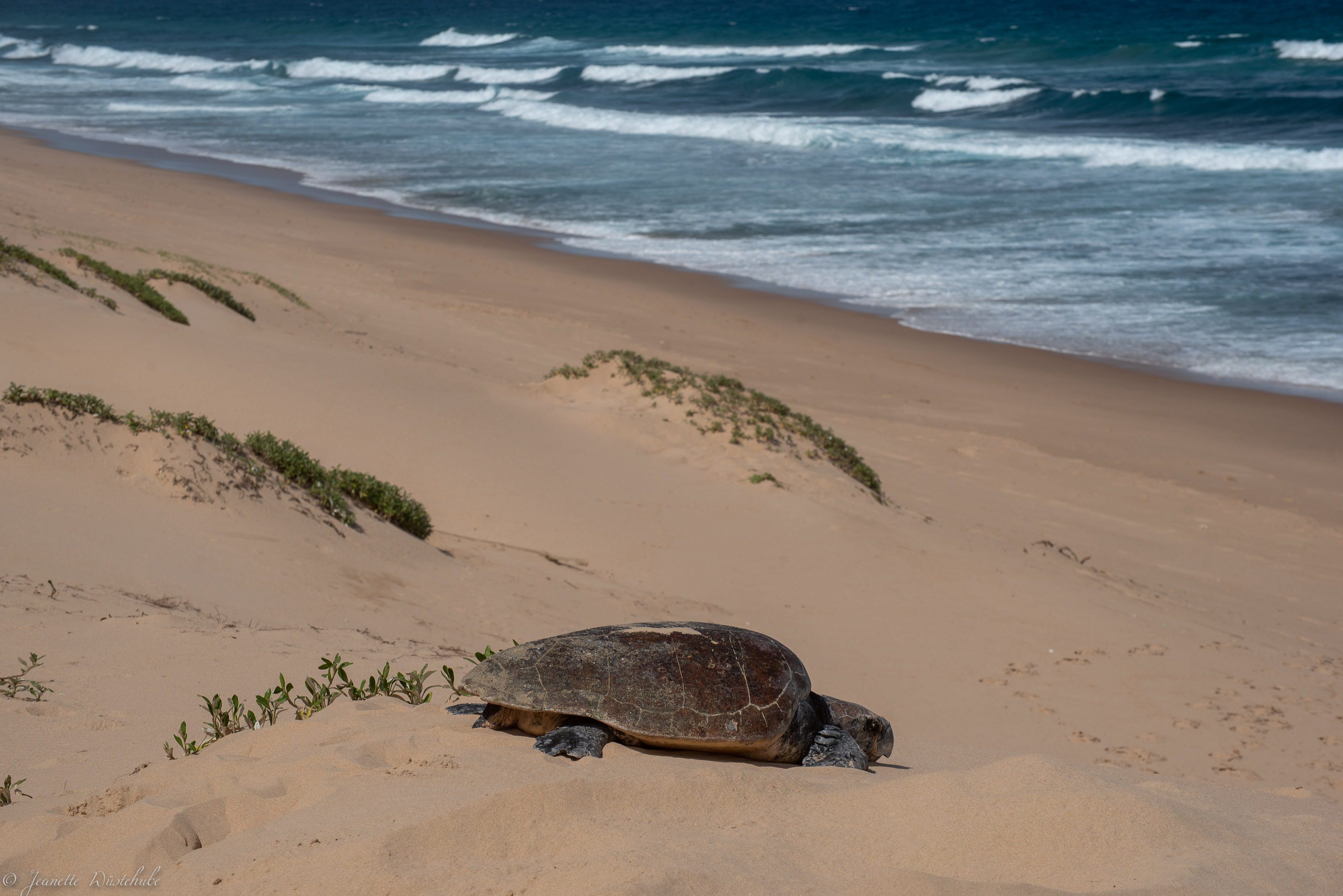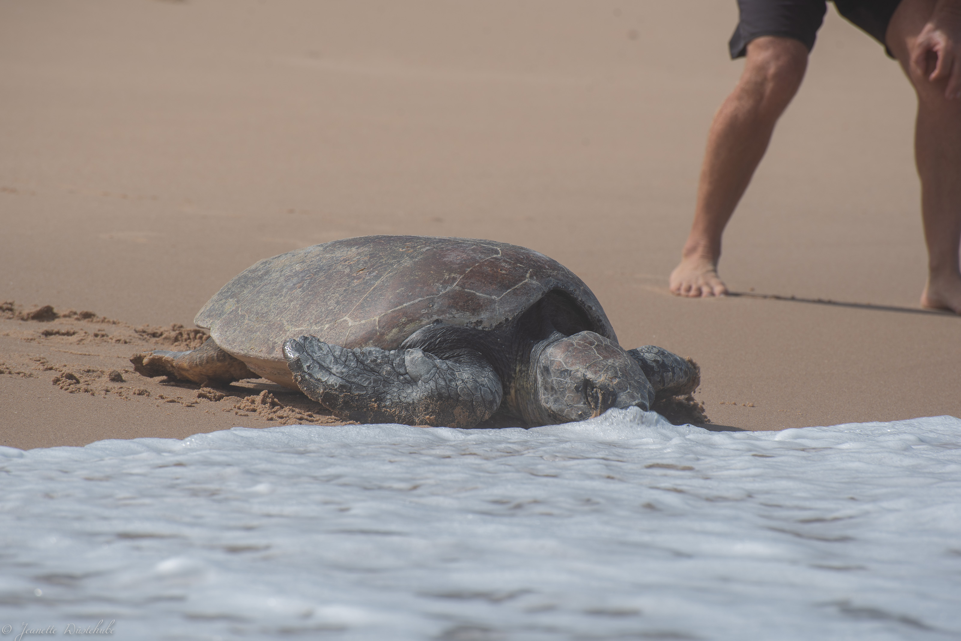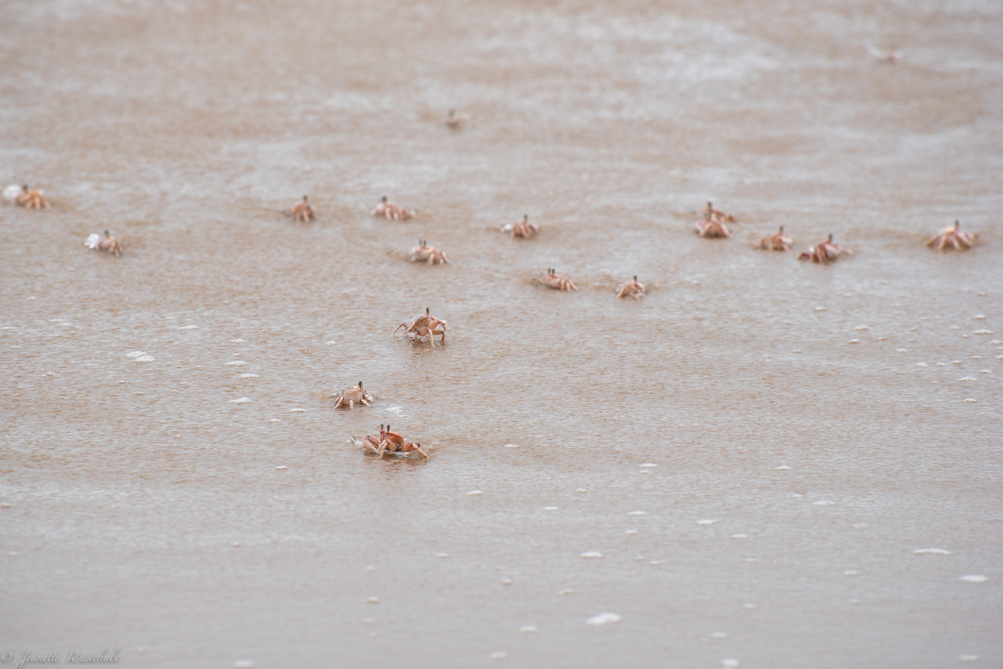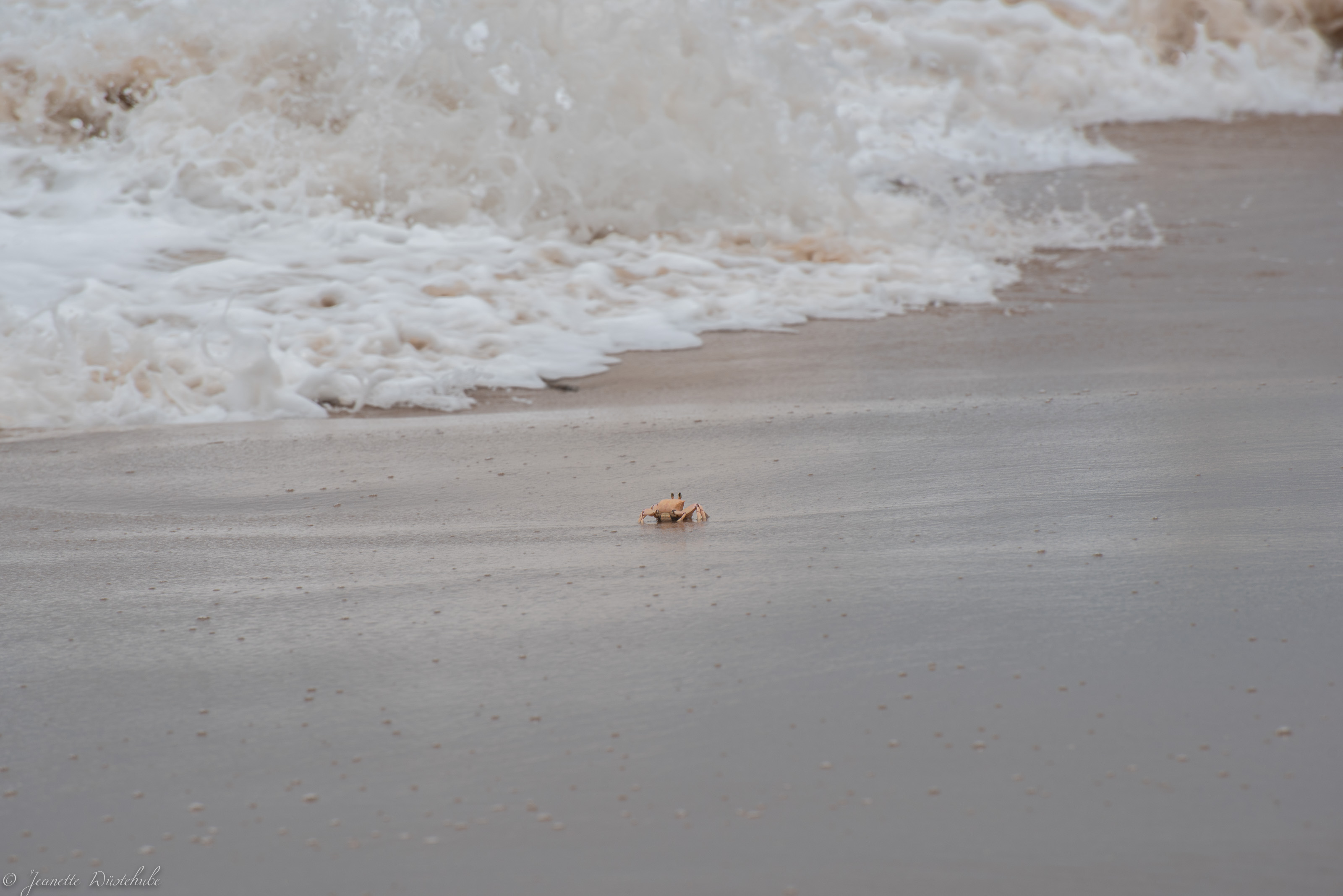 Er erklärte, dass er noch nie so viele Schildkrötenspuren gesehen hätte und war ganz begeistert. Wenn man bedenkt, dass vor einigen Jahren die Schildkrötenpopulation an den Stränden bei Kosi Bay fast ausgestorben war, ist das auch eine bemerkenswerte und positive Entwicklung. Nur eine von 1.000 geschlüpften Schildkröten überlebt so lange, um selbst an den Strand, an dem sie geschlüpft ist, zurückzukehren und eigene Eier zu legen. Die Tiere sind von der ersten Sekunde an auf sich gestellt. Kein Elternteil ist da, um sich zu Kümmern. Am Strand warteten bereits hunderte Krabben auf den frisch geschlüpften Nachwuchs. Während einige der Meeresschildkröten noch zur Eiablage kamen, waren einige Nester schon vor Wochen gelegt worden und die Babys waren kurz vor dem Schlüpfen. Also warteten Krabben, Vögel und Echsen schon gierig darauf.