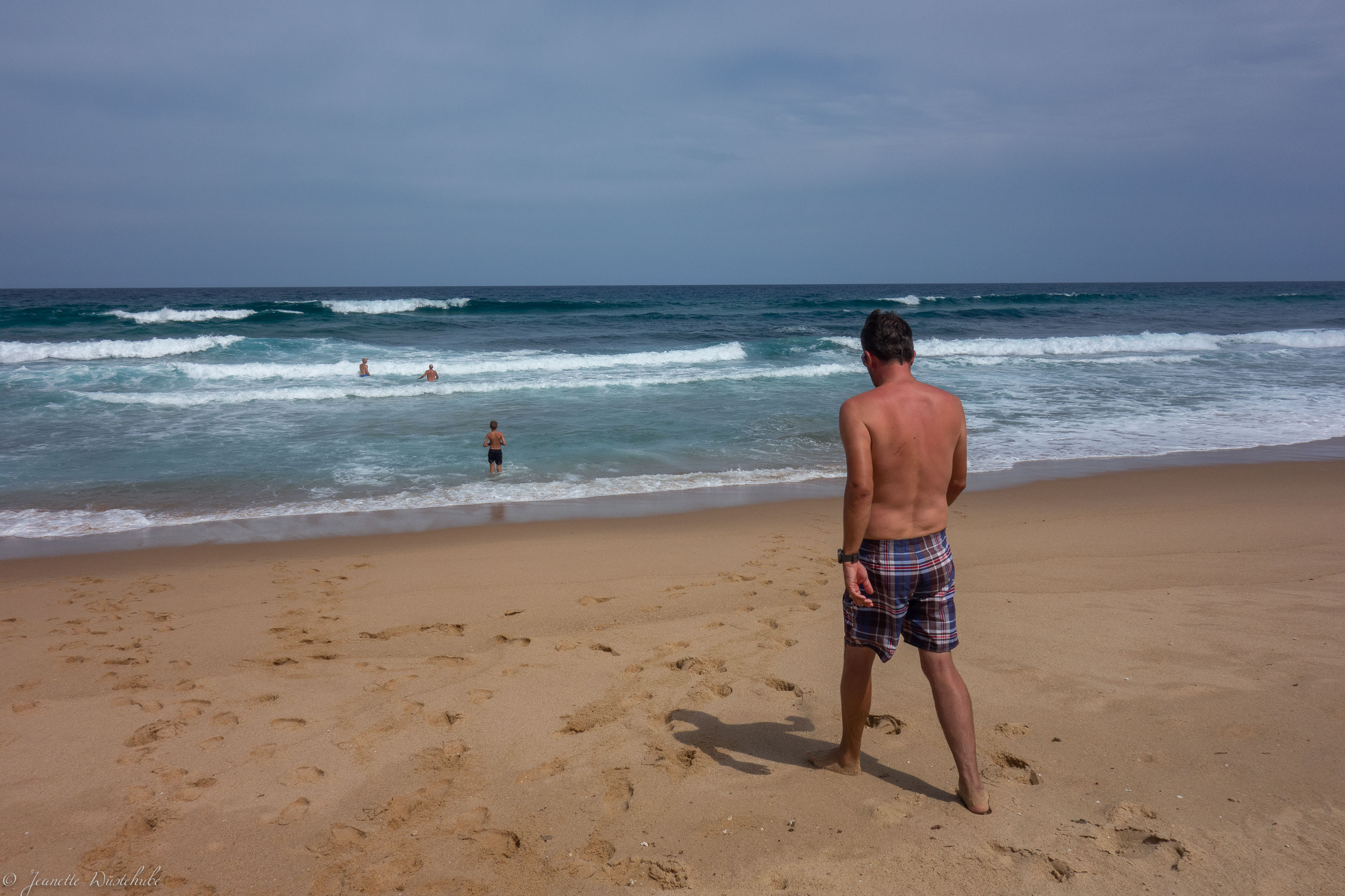 Als es wieder anfing zu Regnen gingen wir ins Hotel nebenan, das mit dem Campingplatz und dem Country Club gegenüber dem gleichen Betreiber gehörte. Hier wollten wir zu Mittag essen und das Internet nutzen. Wir aßen ein Sandwich und verbrachten einige Zeit im Foyer, aber das Wifi war schwach und die Datenmenge, die man laden konnte, limitiert, so dass ich nicht weiter am Blog arbeiten konnte. Als der Regen nachließ, besuchten wir noch einmal den Strand. Schade, dass wir kein besseres Wetter erwischt hatten. Ein kleiner Strandurlaub, bevor es in zwei Wochen zurück ins eiskalte und verschneite Deutschland geht, hätte uns noch gut gefallen. Aber es war trotzdem sehr schön in Ballito und tat der Stimmung keinen Abbruch.