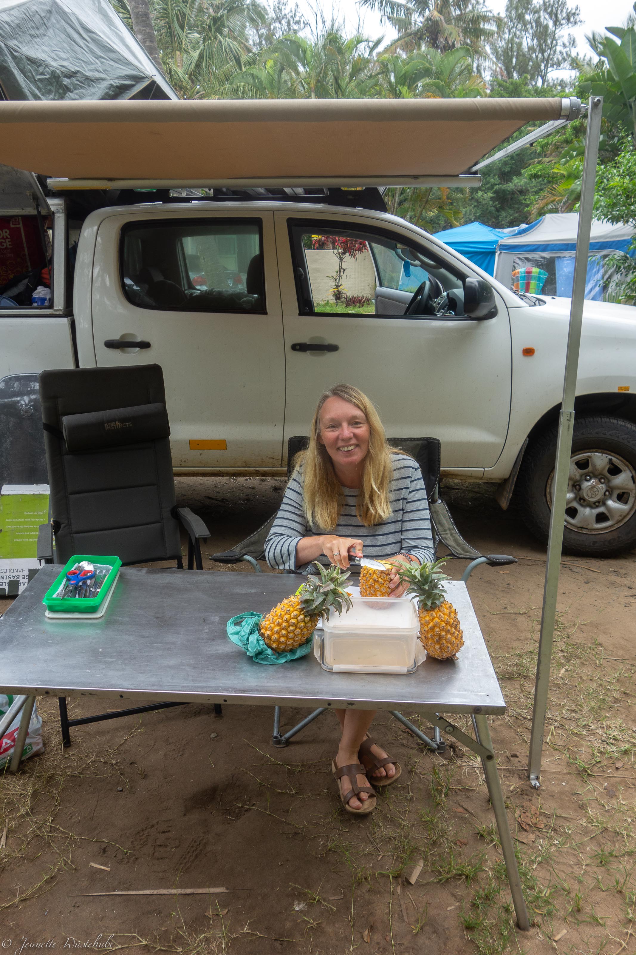 Wir wollten ein bisschen laufen und freuten uns auf den Rock Pool, über den wir schon auf der Website gelesen hatten. Unser Häuschen hatte zwei Stockwerke und wir suchten uns das Schlafzimmer unter dem Dach für die Nachtruhe aus. Dann machten wir eine Runde über das Gelände. Die Dame von der Rezeption schien auch die Eigentümerin zu sein. Sie hatte zwei Hunde, einen älteren Jack Russel und einen kleinen schwarzen, bei dem ich nicht erkennen konnte, welche Rasse dieser war. Wir hatten uns vorher informiert, dass wir Brot, Muffins, Brötchen und frische Milch von der Farm bestellen konnten, wenn wir wollten. Also orderten wir Milch und Muffins. Außerdem fehlte in unserer Info-Mappe die Karte der Region. Gleich am nächsten Morgen wollten wir zu den Rock Pools laufen. Die Dame von der Rezeption druckte die Karte neu für uns aus und erklärte uns kurz, wie wir laufen sollten. Wir grillten Hähnchenbrust, Chicken Wings und Süßkartoffel mit Mais, ein Essen, das unbedingt auch in der heimischen Speisekarte aufgenommen werden muss. Es hatte sich ziemlich bewölkt und nachts gewitterte es.