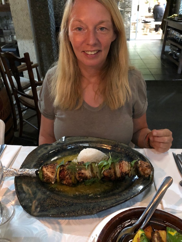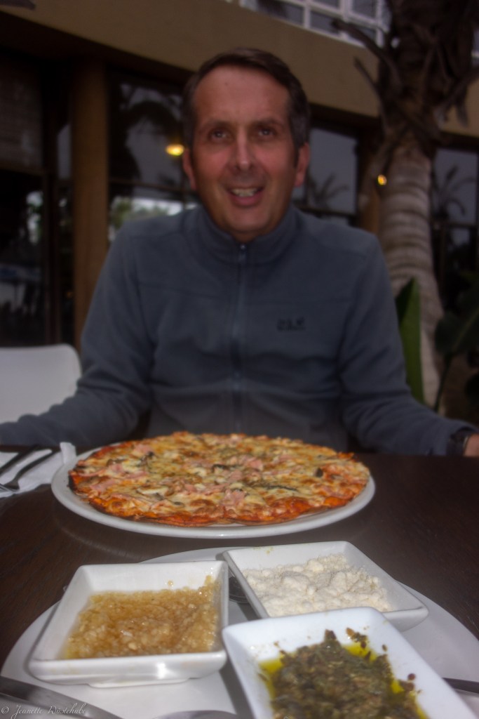 Den Vormittag über blieben wir noch in der Unterkunft und fuhren gegen Mittag dann in das Einkaufszentrum, in dem Tom den Friseur besuchen wollte. Ich traue mich ja irgendwie hier nicht zum Friseur zu gehen. Tom ist da mutiger. Das Ergebnis war bisher immer gut bei im Vergleich zu Stuttgarter Verhältnissen sehr günstigen Preisen. Während Tom es sich also beim Friseur gemütlich machte, besorgte ich ein paar Weihnachtskarten. Die Auswahl ist hier sehr begrenzt und es fällt mir schwer, nicht auch Geschenke kaufen und verpacken zu können wie eben sonst in dieser Jahreszeit. Und bei den Karten weiß ich noch nicht mal, ob wir sie noch rechtzeitig verschicken können. In der Post von Bela Bela war wohl eingebrochen worden und sie war deswegen geschlossen. Also konnten wir zumindest in Bela Bela keine Briefmarken kaufen. Nachdem Tom fertig war beim Friseur gingen wir bei Ocean Basket Fisch essen.