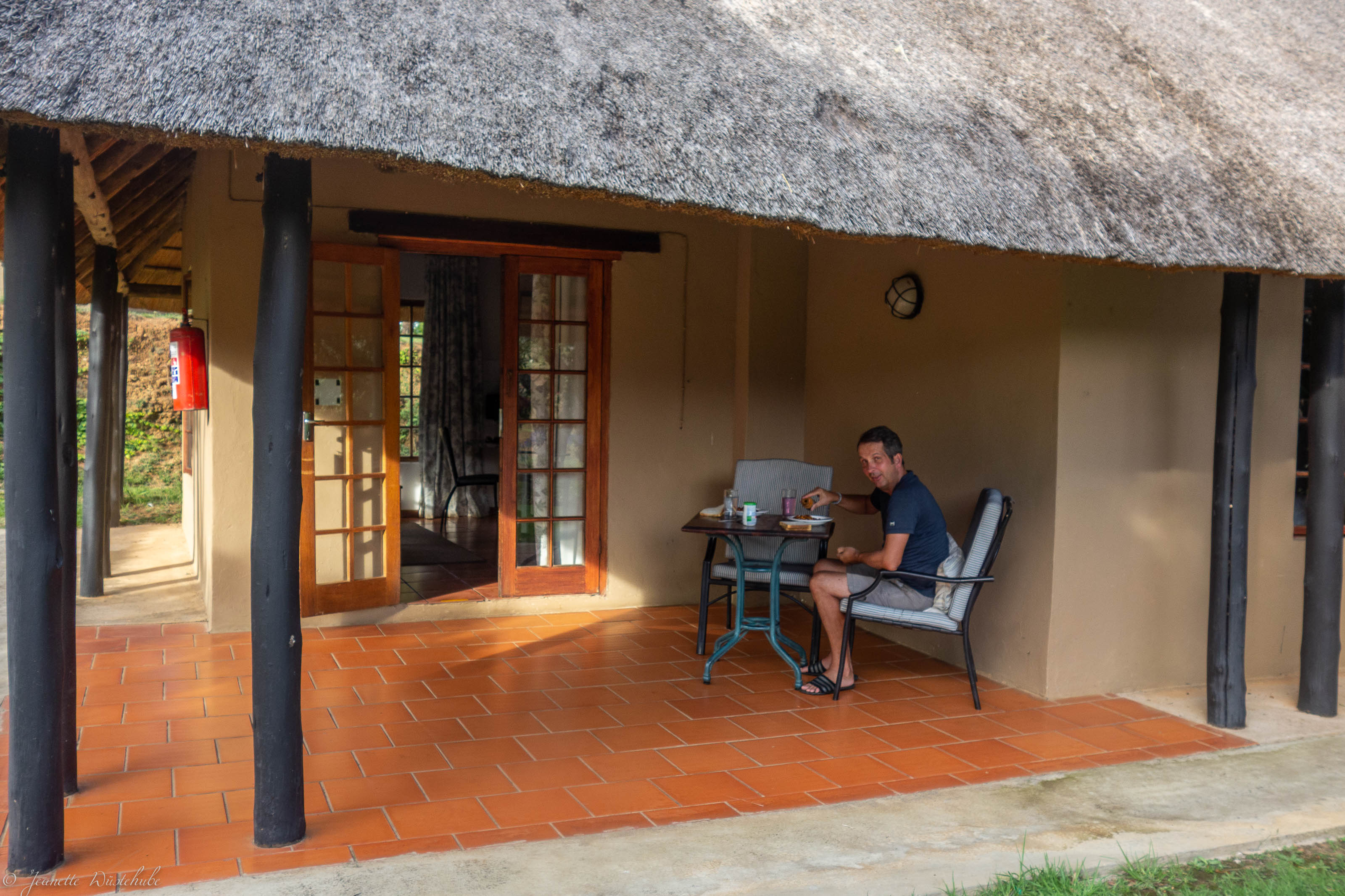 Die Umbuchung in ein festes Haus war im Nachhinein gesehen goldrichtig. Das Umbuchen selbst war kein Problem, weil das Hlalanati Drakensberg Ressort neben über 40 Plätzen für Camper auch über einige Häuser verfügt. Die Ferien in Südafrika waren auch vorbei, so dass ein Häuschen für 2 Personen auch verfügbar war. Wir zahlten den Aufpreis, bezogen unsere Unterkunft und fuhren Umbani an den vorgesehenen überdachten (!) Parkplatz, froh darüber, dass er so auch bei möglichem Hagel geschützt stehen würde.
