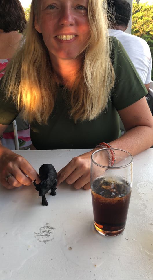 So „angetrunken“ waren wir leichte Opfer für einen Straßenverkäufer aus Simbabwe, mit dem wir uns angeregt unterhielten, bevor wir ihm einen selbst geschnitzten Büffel abkauften.