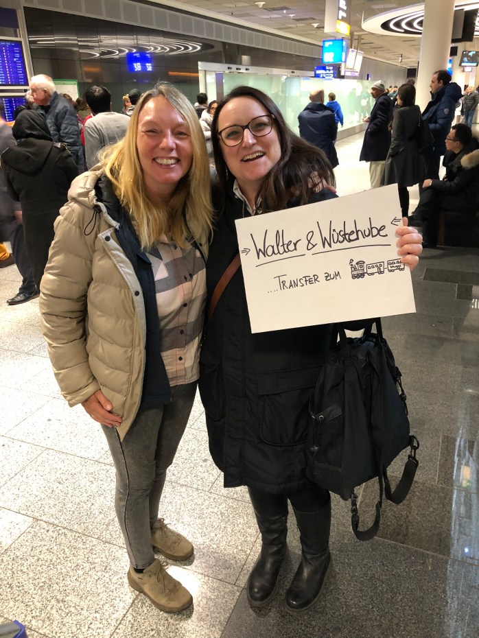 Morgens um 6:30 Uhr ging es dann weiter nach Frankurt, wo wir mittags ankommen sollten. Es hat alles geklappt, obwohl in Frankfurt am Flughafen das Sicherheitspersonal streikte, aber das betraf nur die von dort abgehenden Flüge, und am Flughafen empfing uns dann tatsächlich sogar unsere Freundin Claudia mit Willkommens-Schild, Brezeln, gutem deutschen Brot, Nutella und Bild Zeitung! Das war toll!